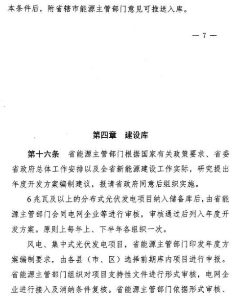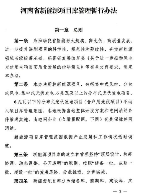 7月3日,河南發改委發布關于印發《河南省新能源項目庫管理暫行辦法》的通知,通知指出,包括集中式風電、分散式風電、集中式光伏發電、6兆瓦及以上的分布式光伏發電項目要納入項目庫管理范圍;6兆瓦以下的分布式光伏發電項目(含戶用光伏項目)不納入項目庫管理范圍,各地根據當地整體開發方案和電網消納條件推進實施,由電網企業(含增量配網)優先保障并網消納。 項目庫包括:儲備庫、前期庫、建設庫,實行省級統籌、省市縣分級管理。 納入建設庫的基本條件如下: 分布式光伏項目:納入儲備庫后,由省能源主管部門會同電網企業等進行審核,審核通過后列入年度開 發方案。原則上每年上、下半年各組織一次。 風電、集中式光伏發電項目:省能源主管部門印發年度方案編制要求,由各縣(市、區)選擇前期庫內項目進行申報。省能源主管部門組織對項目支持性文件進行形式審核,電網企業進行接入及消納條件復核。省能源主管部門依據形式審核、 接入及消納條件復核、可再生能源電力消納責任權重完成情況等因素,確定年度開發方案。原則上每年上、下半年各組織一次。 風電項目納入建設庫后,應于6個月內完成項目核準,自核準之日起24個月內建成投產;集中式光伏發電項目自納入建設庫后,應于24個月內建成投產。 原文件如下: 下一篇: 國能埇橋大營蘄縣40MW光伏項目開工