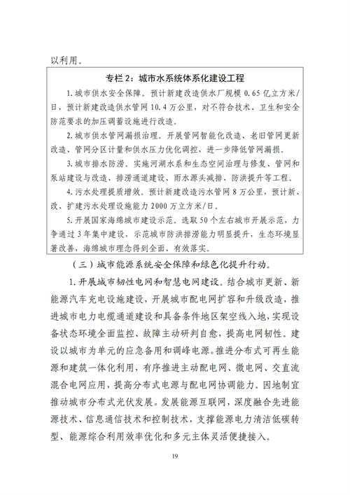 7月29日,住房和城鄉建設部、國(guo)家發展(zhan)改革(ge)委印(yin)發“十四五”全國(guo)城市基礎設施建設規劃(hua),規劃(hua)提(ti)出,推(tui)進分布(bu)式(shi)可再生能(neng)源和建(jian)筑一體化利用,有(you)序推(tui)進主(zhu)動配電(dian)網、微(wei)電(dian)網、交直流(liu) 混合電(dian)網應用,提高分(fen)布式電(dian)源與配電(dian)網協調(diao)能(neng)力。因地制宜推(tui)動城市分布式光(guang)伏發展(zhan)。發展(zhan)能源互聯網,深(shen)度融合(he)先進能源技(ji)(ji)術(shu)、信息通信技(ji)(ji)術(shu)和控(kong)制技(ji)(ji)術(shu),支撐能源電力(li)清(qing)潔低碳轉型、能源綜合(he)利用效率優化和多元主體靈(ling)活便捷接入。 加強清潔熱(re)源(yuan)(yuan)(yuan)和(he)配套供熱(re)管網建設和(he)改造,發(fa)展新(xin)能(neng)源(yuan)(yuan)(yuan)、可(ke)再(zai)(zai)生(sheng)能(neng)源(yuan)(yuan)(yuan)等低(di) 碳能(neng)源(yuan)(yuan)(yuan)。大力(li)(li)發(fa)展熱(re)電(dian)聯產,因地制宜推(tui)進工業(ye)余熱(re)、天然氣(qi)、 電(dian)力(li)(li)和(he)可(ke)再(zai)(zai)生(sheng)能(neng)源(yuan)(yuan)(yuan)供暖(nuan),實施小散(san)燃煤(mei)熱(re)源(yuan)(yuan)(yuan)替代(dai),推(tui)進燃煤(mei)熱(re) 源(yuan)(yuan)(yuan)清潔化改造,支撐城鎮供熱(re)低(di)碳轉(zhuan)型。 到2025年,城(cheng)(cheng)(cheng)市(shi)建設方(fang)(fang)(fang)式(shi)和生產生活方(fang)(fang)(fang)式(shi)綠(lv)色(se)(se)轉(zhuan)型(xing)成效(xiao)顯(xian)(xian)(xian)著(zhu),基(ji)礎(chu)(chu)設施(shi)(shi)體(ti)系(xi)(xi)化(hua)水(shui)平、運(yun)行效(xiao)率和防風(feng)險能(neng)力(li)顯(xian)(xian)(xian)著(zhu)提升(sheng),超(chao)大(da)特大(da)城(cheng)(cheng)(cheng)市(shi)“城(cheng)(cheng)(cheng)市(shi)病(bing)”得到有效(xiao)緩解,基(ji)礎(chu)(chu)設施(shi)(shi)運(yun)行更加高效(xiao),大(da)中(zhong)城(cheng)(cheng)(cheng)市(shi)基(ji)礎(chu)(chu)設施(shi)(shi)質量明(ming)顯(xian)(xian)(xian)提升(sheng),中(zhong)小(xiao)城(cheng)(cheng)(cheng)市(shi)基(ji)礎(chu)(chu)設施(shi)(shi)短(duan)板加快補齊。到2035年,全面建成系(xi)(xi)統完(wan)備、高效(xiao)實用、智能(neng)綠(lv)色(se)(se)、安全可靠的現代(dai)化(hua)城(cheng)(cheng)(cheng)市(shi)基(ji)礎(chu)(chu)設施(shi)(shi)體(ti)系(xi)(xi),建設方(fang)(fang)(fang)式(shi)基(ji)本實現綠(lv)色(se)(se)轉(zhuan)型(xing),設施(shi)(shi)整體(ti)質量、運(yun)行效(xiao)率和服務管(guan)理水(shui)平達到國際先進水(shui)平。 原文如下: