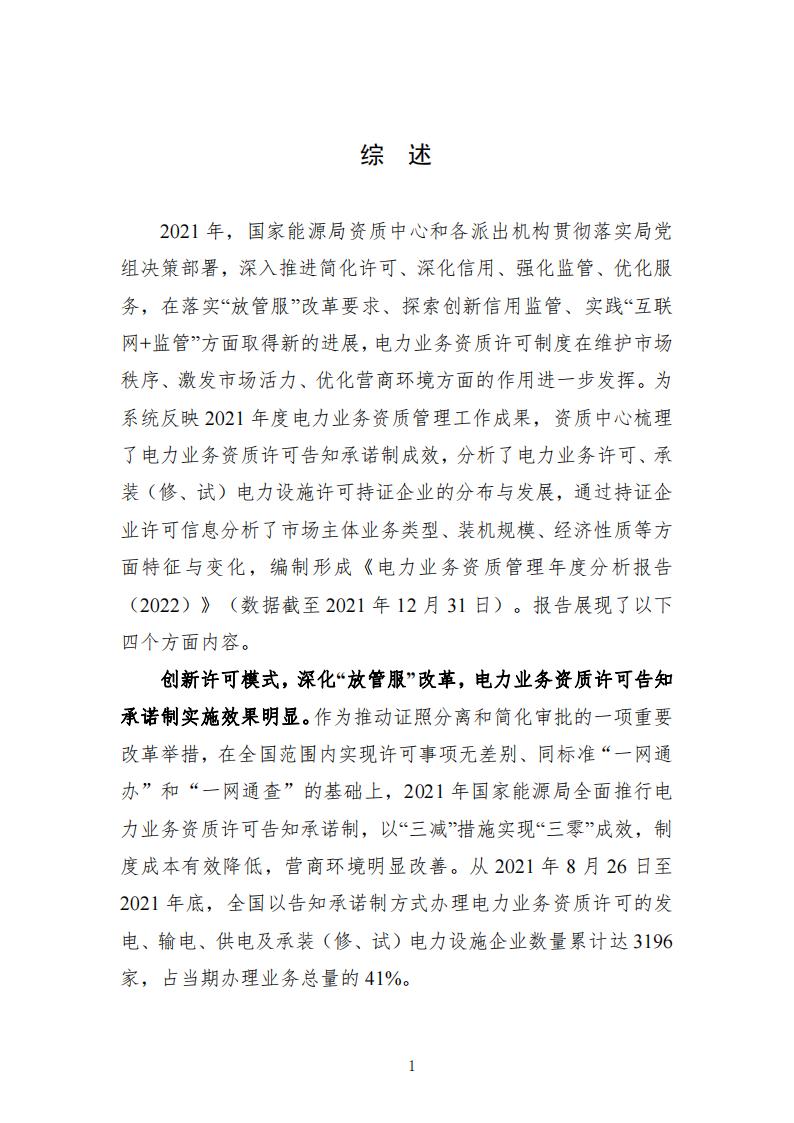 8月4日,國家能源局發(fa)布電力業務資質管理年度分析報(bao)(bao)告(gao)(gao)(2022)。報(bao)(bao)告(gao)(gao)提到,市場主體結構與規模變化各具(ju)特色(se),新(xin)能源(yuan)成(cheng)為發電裝機增長的主力,承裝(修(xiu)、試)電力設施企業(ye)綜合能力穩步提(ti)升(sheng)。 持(chi)證發電企業(ye)總(zong)裝(zhuang)機(ji)容(rong)量為2067237MW,其中1000MW以上的(de)企業(ye)占持(chi)證發電企業(ye)總(zong)數的(de)4%,裝(zhuang)機(ji)容(rong)量占總(zong)裝(zhuang)機(ji)容(rong)量的(de)49%,與2020年相當。持(chi)證可再生能(neng)源企業(ye)裝(zhuang)機(ji)占比(bi)快速提高,新增持(chi)證風電、太陽能(neng)裝(zhuang)(zhuang)機(ji)容量(liang)74803MW,已超過火(huo)電新(xin)(xin)增裝(zhuang)(zhuang)機(ji)容量(liang)(57023MW),占持(chi)(chi)證企業(ye)全年新(xin)(xin)增總裝(zhuang)(zhuang)機(ji)容量(liang)的近50%,許可管理有效促(cu)進發(fa)電行業(ye)持(chi)(chi)續轉型升(sheng)級。 從承裝(zhuang)(修(xiu)、試(shi))電力設(she)施(shi)企業(ye)許可(ke)(ke)等(deng)級分布看(kan),四級企業(ye)占(zhan)比最大,達60%。承裝(zhuang)、承修(xiu)、承試(shi)3個許可(ke)(ke)類別間的業(ye)務(wu)關聯(lian)性較強(qiang),同時持有3個類別許可(ke)(ke)的企業(ye)占(zhan)比達到86%,占(zhan)比進一步提(ti)高。 截至2021年底,共有超(chao)期(qi)服役(yi)(yi)機(ji)組31806MW,火電(dian)15627MW、水電(dian)15631MW、核電(dian)350MW、新能源198MW。其(qi)中火電(dian)、水電(dian)占(zhan)比較大,占(zhan)超(chao)期(qi)服役(yi)(yi)機(ji)組總容(rong)量的49.13%和49.14%,新能源機(ji)組超(chao)期(qi)服役(yi)(yi)容(rong)量較小,僅占(zhan)0.6%。 2021年國家能源(yuan)局(ju)各派(pai)出機(ji)(ji)(ji)構共注(zhu)銷177臺(tai)達到設計壽(shou)命機(ji)(ji)(ji)組(zu)(zu)(zu)(zu)的許(xu)可,涉及容量1601.72MW(其(qi)(qi)(qi)中火電(dian)(dian)機(ji)(ji)(ji)組(zu)(zu)(zu)(zu)37臺(tai)1414.5MW,水電(dian)(dian)機(ji)(ji)(ji)組(zu)(zu)(zu)(zu)135臺(tai)154.22MW,其(qi)(qi)(qi)它(ta)類型(xing)機(ji)(ji)(ji)組(zu)(zu)(zu)(zu)5臺(tai)33MW);經安全評估,許(xu)可150臺(tai)機(ji)(ji)(ji)組(zu)(zu)(zu)(zu)延續運(yun)行,涉及容量8191.3MW(其(qi)(qi)(qi)中火電(dian)(dian)機(ji)(ji)(ji)組(zu)(zu)(zu)(zu)38臺(tai)7312MW,水電(dian)(dian)機(ji)(ji)(ji)組(zu)(zu)(zu)(zu)46臺(tai)478.7MW,風電(dian)(dian)機(ji)(ji)(ji)組(zu)(zu)(zu)(zu)29臺(tai)39.6MW,核電(dian)(dian)機(ji)(ji)(ji)組(zu)(zu)(zu)(zu)1臺(tai)350MW,其(qi)(qi)(qi)它(ta)類型(xing)機(ji)(ji)(ji)組(zu)(zu)(zu)(zu)36臺(tai)11MW)。 原文如下: 上一篇: 戶用光伏怎么才靠譜兒?