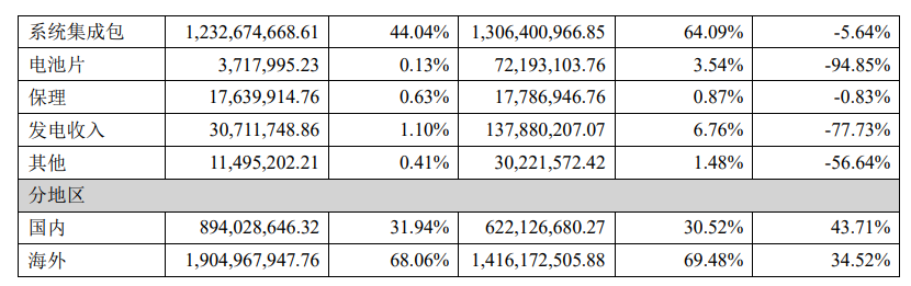 8月30日,協鑫集成公布2022年半年度報告,營收27.99億元,較去年同期增長37.32%,歸屬于上市公司股東的凈利潤0.38億元,較去年同期增長115.16%。 從營收構成來看,組件產品占總營收的53.69%,系統集成包占總營收的44.04%。從地區業務分布來看,海外市場占總營收的68.06%。 財報顯示,協鑫集成能源工程通過與央企、國企的戰略合作,繼續落實以產業投資、項目開發帶動EPC業務的發展戰略,重點加強分布式及市場項目開發。2022年上半年,項目開工234MW,項目并網49MW, EPC中標212MW,中標金額9.2億元,其中青島九聯分布式項目已開工建設,新疆準東項目、甘肅白銀等項目正穩步推進中。