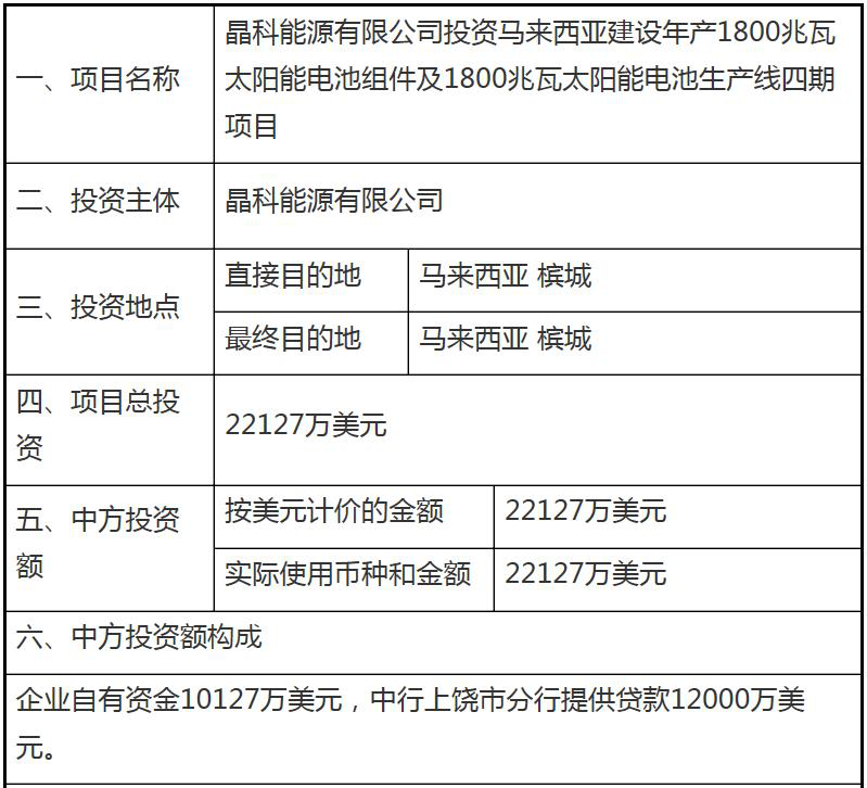 晶科馬來西亞投建1.8GW電池+1.8GW組件項目備案獲批2020-11-07 11:44瀏覽數:3次