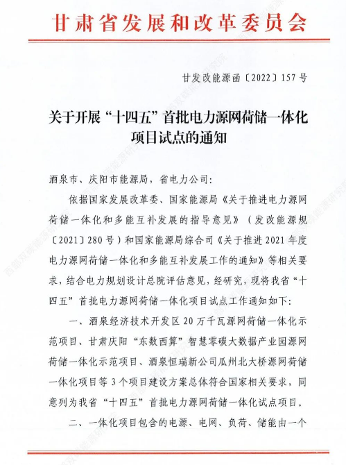 甘肅公布“十四五”首批電力源網荷儲一體化試點項目表2022-09-16 14:41瀏覽數:234次