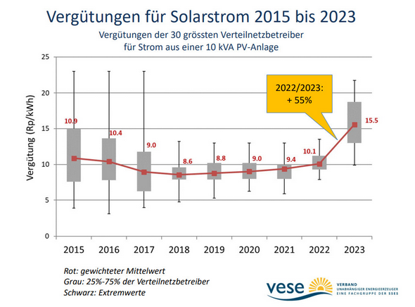 研究表明,在未來一年,瑞士光伏系統剩余電力的上網電價將從0.101瑞士法郎/kWh(0.10美元/kWh)提高到0.155瑞士法郎/kWh,這主要是因為電價得以上漲。 在瑞士,將光伏系統剩余的電力注入電網的光伏系統運營商將在2023年獲得更多資金。而電網運營商將平均增加55%的收入,這意味著平均電費可能會從0.101瑞士法郎(0.10美元)/kWh上升到0.155瑞士法郎/kWh。 瑞士獨立能源生產商協會(VESE)表示,目前仍不能保證瑞士光伏系統運營商獲得支付不斷上漲電力成本的報酬。因此該協會呼吁采用新的收入模式。 瑞士獨立能源生產商協會(VESE)發布的數據基于30家規模最大電網運營商提供的信息,他們將確定光伏系統剩余的電力每年饋入電網獲得的報酬。 瑞士獨立能源生產商協會(VESE)表示,需要接受光伏發電最終升級為國內可再生能源發電的可靠的生態支柱這一事實。該協會指出,“電網運營商終于達到并超過了0.10瑞士法郎/kWh的門檻,這是瑞士獨立能源生產商協會(VESE)長期以來一直呼吁突破的價格。” 瑞士獨立能源生產商協會(VESE)指出,這并非完全出于自愿。這主要是因為根據當前的法規,具有負荷曲線測量功能的生產商可以很容易地切換。因此,他們也可以在期貨市場上出售光伏系統的多余的電力,目前的價格在0.2~0.3瑞士法郎/kWh之間。 因此,電網運營商被迫通過大幅增加收入來抵消這種遷移。鑒于高昂的市場價格,他們可能會錯過獨立生產商提供的相對便宜的電力。 雖然光伏系統的運營商現在正從更高的電價中受益,但該協會還注意到收入大幅上漲造成的不良影響。電力消費者的價格也會上漲,因為電網運營商會將更高的費用轉嫁給消費者。 瑞士獨立能源生產商協會(VESE)支持一種能夠確保光伏系統長期融資的機制,但不會以電力客戶支付更多費用為代價。這種以生產成本為導向的“固定模式”輔以相關的、純粹以市場為導向的“彈性模式”,這種模式在瑞士的協會和行政部門中很受歡迎。“彈性模式”允許電網運營商參與到自由市場中,但也有一些優點和缺點。
