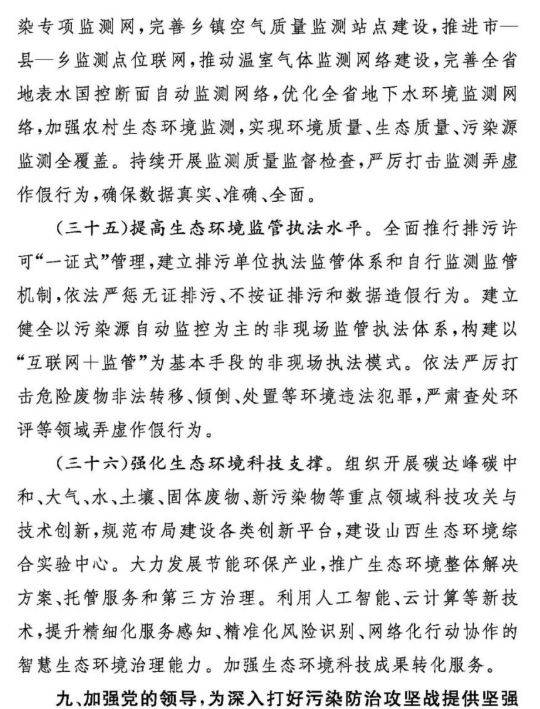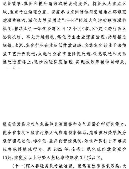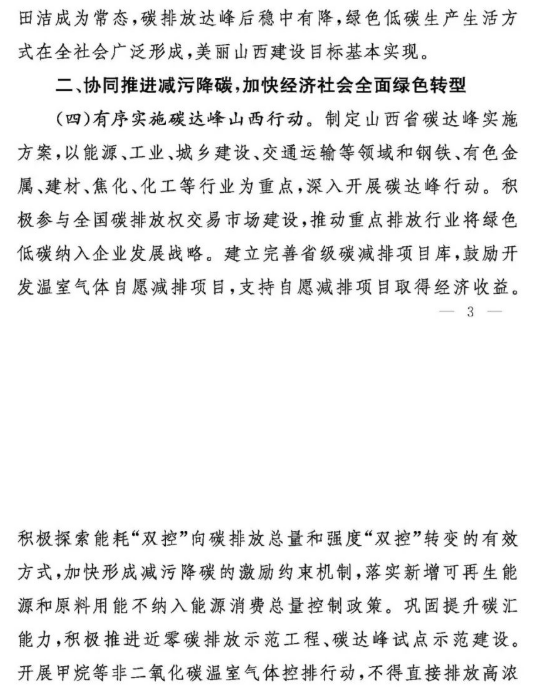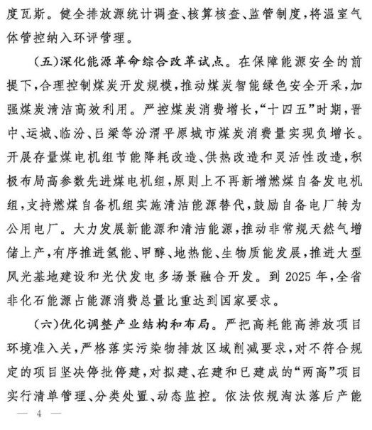 11月8日,山西政(zheng)府網發布《關于(yu)深(shen)入打(da)好污(wu)染(ran)防(fang)治攻(gong)堅戰(zhan)的實施意見》。 意見提出,在保(bao)障能(neng)源(yuan)(yuan)安全的(de)前提下,合理控制煤炭開發(fa)(fa)規模,推動煤炭智能(neng)綠色安全開采(cai),加強煤炭清潔高效利(li)用(yong)。大力發(fa)(fa)展新能(neng)源(yuan)(yuan)和清潔能(neng)源(yuan)(yuan),推動非(fei)常規天然氣增(zeng)儲上產,有序(xu)推進(jin)氫能(neng)、甲醇(chun)、地熱能(neng)、生物質能(neng)發(fa)(fa)展,推進(jin)大(da)型風光(guang)基地建設和光伏發(fa)(fa)電多場景(jing)融合開發(fa)(fa)。到(dao)2025年,全(quan)省非化石能(neng)源占能(neng)源消費總量(liang)比重達到(dao)國家要求。