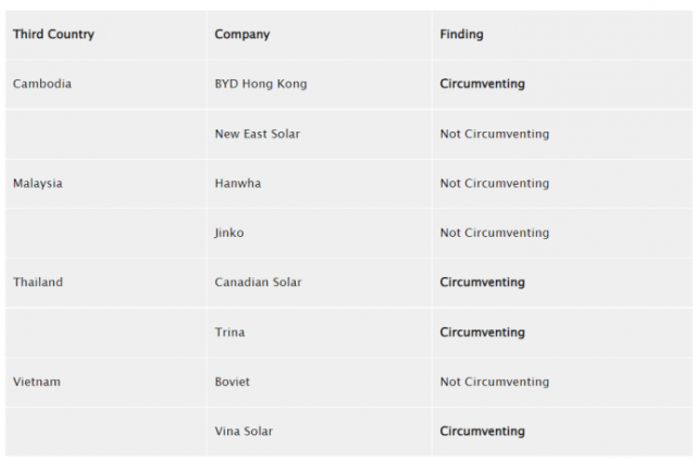 當地時間(jian)12月(yue)2日,美國(guo)商務部(bu)宣布(bu)了對(dui)來自我(wo)國(guo)太(tai)陽(yang)能(neng)電池和組件的規避調(diao)查的初(chu)步裁定。 該調查于今年 3 月開始,引發(fa)了太陽(yang)能零部件進(jin)口的不確定(ding)性,導致美國各地的太陽(yang)能項目(mu)被取消。 美國商務部(bu)應總部(bu)位于(yu)加利(li)福尼(ni)亞州的組件(jian)制(zhi)造商 Auxin Solar Inc.的請求開(kai)始調查(cha)。該公司(si)表(biao)示(shi),該投訴(su)信指(zhi)控八家電池和(he)組件(jian)制(zhi)造商在中國制(zhi)造組件(jian),然(ran)后將這些(xie)產品發送到柬埔寨、馬來西亞、泰國和(he)/或越南稍進行加工,然(ran)后再出口(kou)到美國,以試圖規(gui)避針對中國電池和(he)組件(jian)征收的反傾銷(xiao)稅 (AD) 和(he)反補貼稅 (CVD) 。 在對四個國(guo)(guo)家(jia)(jia)的八(ba)家(jia)(jia)公司進行調查后,美商務部初步(bu)裁定,被調查的八(ba)家(jia)(jia)公司中有四家(jia)(jia)試圖通過在東南亞國(guo)(guo)家(jia)(jia)進行微加工(gong)后再(zai)運往美國(guo)(guo),以規避關稅。 初(chu)步調查(cha)結果(guo)如下(xia): 初裁決(jue)定,比亞迪(di)香(xiang)港(柬埔寨)、阿(a)特斯(si)(泰國)、天合(he)光(guang)能(泰國)、Vina Solar(越南(nan))存(cun)在規避行為。華爾(er)街日報稱,這四(si)家公司加(jia)起來占美(mei)國太陽(yang)能電池進口總量的一半以(yi)上。 而受調查(cha)的其他四家(jia)企業(ye),New East Solar(柬(jian)埔(pu)寨)、韓華(馬(ma)來西亞(ya))、晶科(馬(ma)來西亞(ya))、Boviet(越南(nan))未發現(xian)規(gui)避行為。 此(ci)外,馬來(lai)西(xi)亞、泰國和(he)越南的(de)一些公司沒有回應美商務部在本次調查中提出的(de)信息要(yao)求,并(bing)且根據長期慣例,將被認定為規避(bi)行為。 由(you)于商務部(bu)初步發現這四個東南亞國家(jia)均存在(zai)規避行為,因(yin)此(ci)商務部(bu)正在(zai)做出針對(dui)四個國家(jia)“全國范圍”的反規(gui)(gui)避調查,即(ji)將該國(guo)(guo)家(jia)(jia)確定為中國(guo)(guo)規(gui)(gui)避太陽能電池和組(zu)件(jian)關稅的國(guo)(guo)家(jia)(jia)。但這并不構成針對這些國(guo)(guo)家(jia)(jia)進(jin)口的禁令。 這(zhe)些(xie)國家的(de)公(gong)司需要證明他(ta)們(men)沒有規(gui)避AD/CVD關稅,對于沒有規(gui)避AD/CVD關稅的(de)被調查企業,只要其生(sheng)產流程和供應鏈不發生(sheng)變化(hua),美商(shang)務部就不會采取任何(he)行動。 這些調(diao)查(cha)結果僅是初步裁定。下(xia)一步,美(mei)商(shang)務(wu)(wu)部(bu)將(jiang)在(zai)未來幾個月進行(xing)現場(chang)審(shen)計,以驗證調(diao)查(cha)信息的真實(shi)性。此(ci)外,各方(fang)將(jiang)有機會對商(shang)務(wu)(wu)部(bu)的調(diao)查(cha)結果發表(biao)評論,商(shang)務(wu)(wu)部(bu)將(jiang)對其(qi)充分考慮,并將(jiang)于 2023 年 5 月 1 日做出最終裁定。 2022年6月6日發布的總統命令規定,在2024年6月之前,不會(hui)對從(cong)這(zhe)四(si)個國家進口的任(ren)何太陽能組件(jian)和電池征收關稅。這(zhe)為(wei)美國太陽能進口商提供了(le)足夠的時間來調整供應鏈。