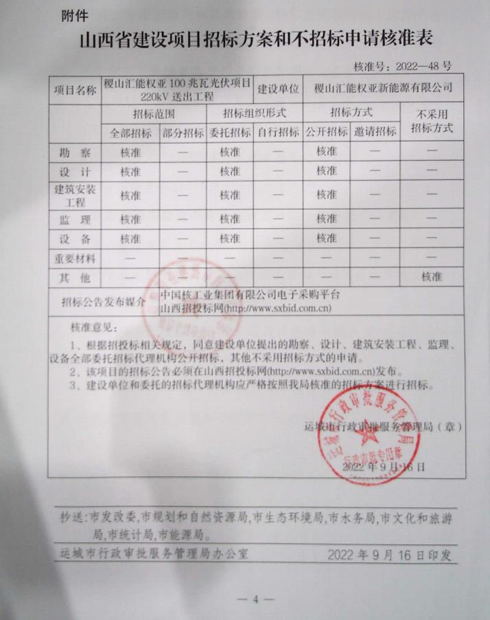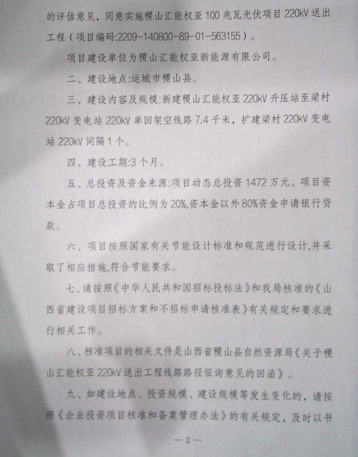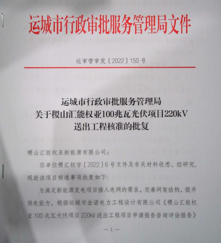 山西運城市稷山匯能權亞100MW光伏項目220kV送出工程獲核準2022-12-08 14:15來源:gessey瀏覽數:240次