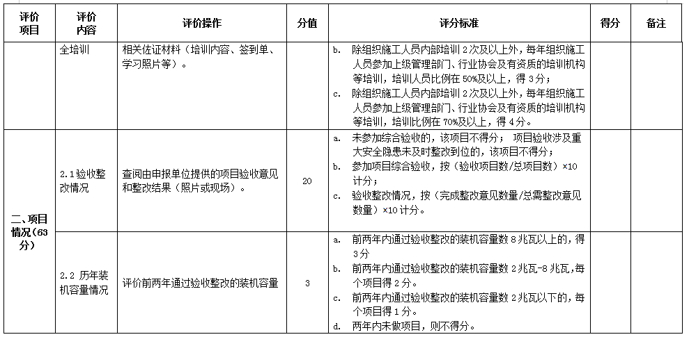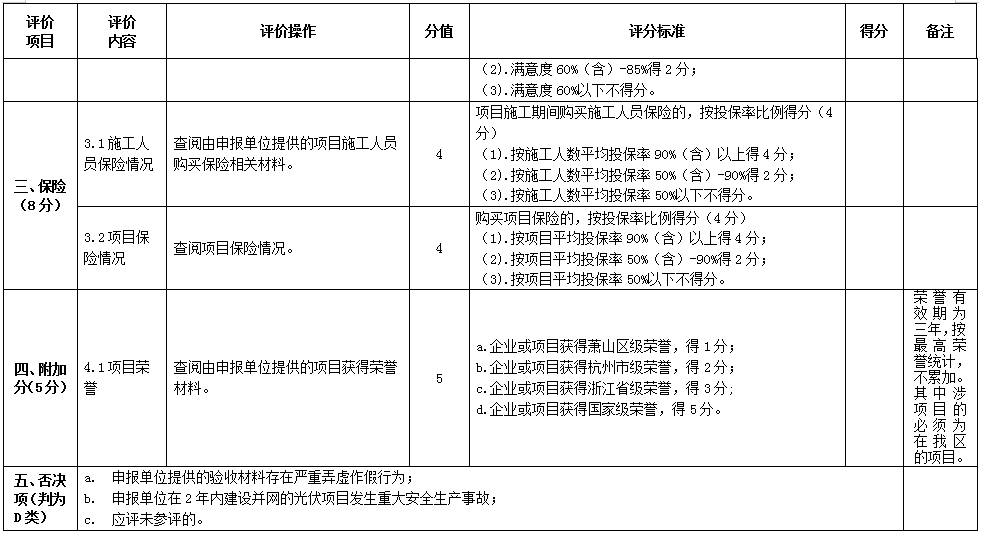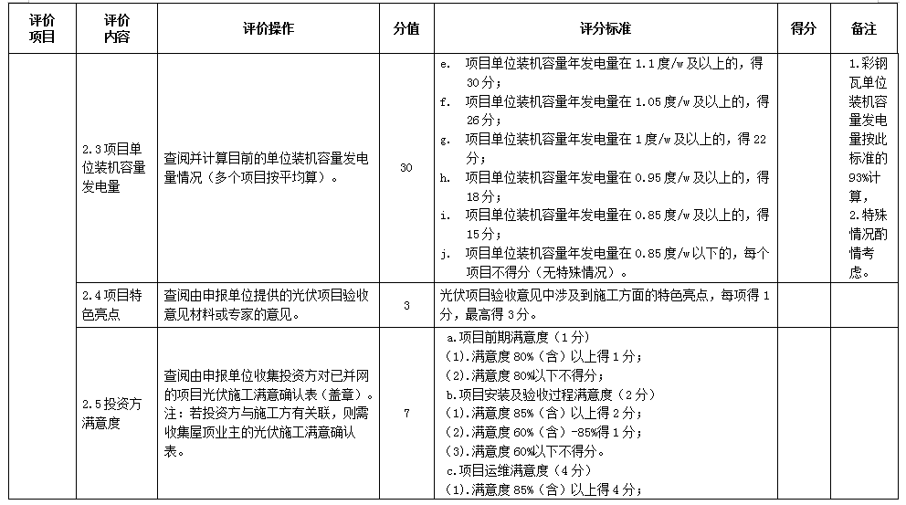 12月7日,杭州市蕭山區(qu)發展和改革(ge)局發布(bu)關于公開征(zheng)(zheng)求《蕭山區(qu)光(guang)伏(fu)施工(gong)(gong)企業分類評價(jia)辦(ban)法(征(zheng)(zheng)求意見稿))意見的公告(征(zheng)(zheng)求意見稿)》,評價(jia)對象為在2021年1月1日起在蕭山區(qu)開展光(guang)伏(fu)施工(gong)(gong)的安裝類企業。 評(ping)價采用(yong)指(zhi)標(biao)權重法,總分(fen)(fen)為105分(fen)(fen)(其中附(fu)加分(fen)(fen)5分(fen)(fen)),經計算(suan)后列出(chu)各申報(bao)單位的(de)分(fen)(fen)值(zhi)和排序。 評(ping)價指(zhi)標從合法(fa)(fa)、安全、經濟和(he)創新(xin)四個維度(du)出(chu)發(fa),側重(zhong)于后評(ping)價和(he)客(ke)觀(guan)性。具體包括安全守法(fa)(fa)情(qing)況(kuang)、企業規模績效和(he)資質、已建(jian)設項(xiang)目(mu)(mu)的(de)驗收整改情(qing)況(kuang)、單位裝機容量發(fa)電量、投資方(fang)滿意(yi)度(du)、建(jian)設項(xiang)目(mu)(mu)的(de)特色亮(liang)點、項(xiang)目(mu)(mu)榮譽(yu),項(xiang)目(mu)(mu)保險情(qing)況(kuang)指(zhi)標。 評(ping)價結(jie)果將申報企(qi)(qi)業分為(wei)四類(lei),其中A類(lei)為(wei):總分90分以(yi)上,且排名在(zai)(zai)前(qian)(qian)30%以(yi)內的(de);B類(lei)為(wei):總分80分以(yi)上,且排名在(zai)(zai)前(qian)(qian)70%以(yi)內的(de);D類(lei)為(wei):排名在(zai)(zai)總申報單(dan)位(wei)總數的(de)后10%,且總得分在(zai)(zai)65分及以(yi)下;除(chu)A、B、D類(lei)外(wai),其余(yu)為(wei)C類(lei)企(qi)(qi)業。 詳情如下: 區發展和改革局關于公開征求《蕭山區光伏施工企業分類評價辦法(征求意見稿))意見的公告(征求意見稿)》 根據規范(fan)性(xing)文件制定程序,現公布《蕭山區光伏施工企業(ye)分類評價(jia)辦法(fa)(征求(qiu)意見(jian)稿)》,公開征求(qiu)社會各界的意見(jian),歡(huan)迎各界人(ren)士提出意見(jian)和建議(yi)。公示時(shi)間:2022年(nian)12月(yue)7日(ri)(ri)至2022年(nian)12月(yue)16日(ri)(ri), 如有意見(jian)建議(yi)請在公示期內反(fan)饋我局。 聯系人(ren):黃先生 電話:82898913傳真:82898622,電子郵(you)箱:262887792@qq.com。 附(fu)件:蕭山區光伏施工企業(ye)分類評(ping)價辦法(fa)(征求意(yi)見稿) 杭州市蕭山區發展和改(gai)革局 2022年12月7日 蕭山區光伏施工企業分類評價辦法 (征求意見稿) 為促(cu)進(jin)全區分(fen)布式(shi)(shi)光(guang)伏工作安(an)全、有序、高質量發(fa)展,推進(jin)優質光(guang)伏施工企(qi)業快速(su)健康發(fa)展,充分(fen)發(fa)揮優質分(fen)布式(shi)(shi)光(guang)伏項(xiang)目的引(yin)領帶動(dong)作用(yong),根據(ju)我區實際(ji),特(te)制定(ding)此辦法。 一、評價對象 評價對象為在2021年1月(yue)1日起(qi)在蕭(xiao)山區(qu)開(kai)展光(guang)伏施工的安裝(zhuang)類企業。 二、評價指標及標準 1、評(ping)價采(cai)用指標權重法(fa),總分(fen)為105分(fen)(其中附加分(fen)5分(fen)),經計算后(hou)列出各申(shen)報(bao)單位(wei)的(de)分(fen)值和(he)排(pai)序。 2、評(ping)價(jia)指(zhi)標(biao)從合法(fa)、安(an)全、經濟和(he)(he)(he)創新四(si)個維度(du)出發,側重于后評(ping)價(jia)和(he)(he)(he)客觀(guan)性。具(ju)體(ti)包括安(an)全守法(fa)情(qing)(qing)(qing)況(kuang)、企業規(gui)模績效(xiao)和(he)(he)(he)資(zi)質、已(yi)建設項(xiang)(xiang)目(mu)的驗收整改情(qing)(qing)(qing)況(kuang)、單位裝機容量(liang)(liang)發電量(liang)(liang)、投資(zi)方滿意度(du)、建設項(xiang)(xiang)目(mu)的特色亮點、項(xiang)(xiang)目(mu)榮譽,項(xiang)(xiang)目(mu)保險情(qing)(qing)(qing)況(kuang)指(zhi)標(biao)。具(ju)體(ti)指(zhi)標(biao)說(shuo)明和(he)(he)(he)計算方法(fa)見附件。 3、評價結(jie)果將申(shen)報企業(ye)分(fen)(fen)為四類(lei),其中A類(lei)為:總(zong)(zong)分(fen)(fen)90分(fen)(fen)以(yi)上,且排名(ming)在(zai)前30%以(yi)內的(de);B類(lei)為:總(zong)(zong)分(fen)(fen)80分(fen)(fen)以(yi)上,且排名(ming)在(zai)前70%以(yi)內的(de);D類(lei)為:排名(ming)在(zai)總(zong)(zong)申(shen)報單(dan)位總(zong)(zong)數的(de)后10%,且總(zong)(zong)得分(fen)(fen)在(zai)65分(fen)(fen)及以(yi)下;除A、B、D類(lei)外,其余為C類(lei)企業(ye)。 4、有(you)下列情形之一者,一律評價為D類: (1)申報單位提供的驗收材料存(cun)在嚴重弄(nong)虛作假行(xing)為; (2)申(shen)報單位在2年內建設并網的光伏項(xiang)目發生(sheng)重大安全生(sheng)產(chan)事(shi)故; (3)應評(ping)(ping)未參評(ping)(ping)的。 三、評價流程 每年度對光(guang)伏施工(gong)企業開展(zhan)一次評價(jia),具體評價(jia)流(liu)程如下: 1、區發改局下發年度分類評價(jia)通(tong)知(zhi),并附企業自評表(biao)格(ge)及說明、所需支(zhi)撐材料。 2、各申報單位在收(shou)到通知后15日(ri)內,編制自(zi)評報告,并報送給區發改(gai)局(ju)。 3、區發(fa)改局對各企(qi)業上報的自評報告進行核實,并形成初步評分(fen)和分(fen)類(lei)結果(guo)。 4、區(qu)發改(gai)局將(jiang)初步評分和分類(lei)結(jie)果下發給各申報(bao)單位(wei)進行(xing)(xing)核對。各申報(bao)單位(wei)如(ru)有意見(jian),可在15日(ri)內進行(xing)(xing)申訴。 5、區發改局進行最終審核(he),并(bing)確定(ding)各企業的分類等級。 四、結果應用 1、評(ping)價結果將向(xiang)全社會進行公開發布(bu)。 2、評價結(jie)果為D類的企業所(suo)投(tou)資或(huo)安(an)裝的項目取消一年內(nei)區級光伏發電補(bu)助(zhu)政策。 五、附則 1、本辦法(fa)由區發改局(ju)負責(ze)解釋; 2、本辦法(fa)自2022年 月 日(ri)起