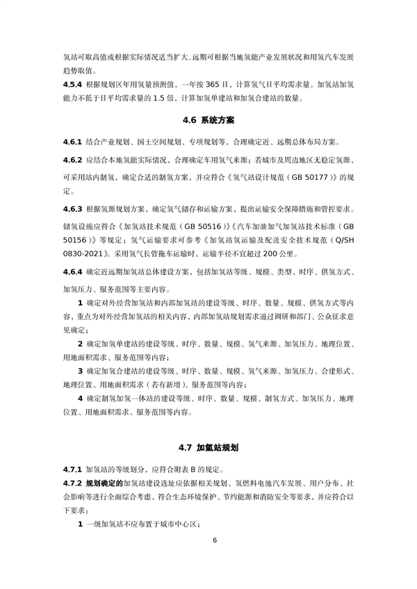 2050年500~800座!浙江加氫站建設專項規劃技術導則與編制手冊征求意見!12月12日,浙(zhe)江省住建(jian)廳發布關于公開征求《浙(zhe)江省汽車加(jia)氫站建設(she)專(zhuan)項規劃技術(shu)導(dao)則》(征求(qiu)意見稿(gao))及(ji)《浙(zhe)江省汽車加氫站建設(she)專(zhuan)項規劃編制技術(shu)手冊(指南)》(征求(qiu)意見稿(gao))意見的通知。 《浙江省汽車加(jia)(jia)氫(qing)(qing)(qing)(qing)站(zhan)建(jian)(jian)設專項規劃技術導則(征求意見(jian)稿)》,關于加(jia)(jia)氫(qing)(qing)(qing)(qing)站(zhan)的需求預(yu)測,文件提(ti)出近(jin)期可(ke)按(an)加(jia)(jia)氫(qing)(qing)(qing)(qing)單建(jian)(jian)站(zhan)1000~2000千克(ke)/天(tian)、加(jia)(jia)氫(qing)(qing)(qing)(qing)合(he)建(jian)(jian)站(zhan)500~1000千克(ke)/天(tian)來確定站(zhan)均加(jia)(jia)氫(qing)(qing)(qing)(qing)能力;確定近(jin)遠期加(jia)(jia)氫(qing)(qing)(qing)(qing)站(zhan)總體建(jian)(jian)設方案,包括(kuo)加(jia)(jia)氫(qing)(qing)(qing)(qing)站(zhan)等級(ji)、規模、類型、時序、供氫(qing)(qing)(qing)(qing)方式、加(jia)(jia)氫(qing)(qing)(qing)(qing)壓力、服務范圍等主要內容。附(fu)件加(jia)(jia)氫(qing)(qing)(qing)(qing)站(zhan)等級(ji)劃分給出了(le)儲氫(qing)(qing)(qing)(qing)容器容量、液(ye)氫儲罐容積參考范圍。 《浙江(jiang)省汽車(che)加氫(qing)站建(jian)(jian)(jian)設專項規(gui)劃(hua)編制技術(shu)手冊(指(zhi)南)(征求(qiu)意見稿)》,浙江(jiang)省加氫(qing)站的建(jian)(jian)(jian)設劃(hua)分為(wei)三(san)個階(jie)(jie)(jie)段(duan)(duan)(duan),第一階(jie)(jie)(jie)段(duan)(duan)(duan)(2022~2025年)為(wei)初步發展階(jie)(jie)(jie)段(duan)(duan)(duan),加氫(qing)站建(jian)(jian)(jian)設按照省內政策文件(jian)規(gui)劃(hua),預測2025年建(jian)(jian)(jian)設50~70座左(zuo)右(you)加氫(qing)站;第二(er)階(jie)(jie)(jie)段(duan)(duan)(duan)(2026~2035年)為(wei)快速發展階(jie)(jie)(jie)段(duan)(duan)(duan),預測2030年建(jian)(jian)(jian)設加氫(qing)站90~120座,2035年建(jian)(jian)(jian)設加氫(qing)站150~250座;第三(san)階(jie)(jie)(jie)段(duan)(duan)(duan)為(wei)多元網絡(luo)化(hua)發展階(jie)(jie)(jie)段(duan)(duan)(duan)(2036~2050年),預測全(quan)省在2050年加氫(qing)站數量為(wei)500~800座左(zuo)右(you)。 規劃近期(qi),加氫(qing)(qing)站(zhan)與供(gong)應商(shang)之間距離建議不超過(guo)200km,否則成本將大(da)大(da)增加;因(yin)此應結合(he)本地氫(qing)(qing)能產(chan)業實際情況,合(he)理(li)確定(ding)車用氫(qing)(qing)氣來源;若城市及周邊地區無(wu)穩(wen)定(ding)氫(qing)(qing)源,可制定(ding)制氫(qing)(qing)加氫(qing)(qing)一體站(zhan)的(de)規劃。 關于公開(kai)征求《浙江省汽(qi)車加氫站建設專項規劃(hua)技術導則》 (征求意(yi)見稿)及 《浙江省汽車加氫站建設專項規劃編制技(ji)術手冊(指南)》 (征求意(yi)見稿)意(yi)見的通知(zhi) 為(wei)加(jia)快(kuai)推進(jin)我省(sheng)汽(qi)車(che)加(jia)氫(qing)站(zhan)規劃(hua)建(jian)設,浙(zhe)江省(sheng)住房和城鄉(xiang)建(jian)設廳(ting)組織起草了《浙(zhe)江省(sheng)汽(qi)車(che)加(jia)氫(qing)站(zhan)建(jian)設專項規劃(hua)技術導則(征(zheng)求意(yi)見稿)》及《浙(zhe)江省(sheng)汽(qi)車(che)加(jia)氫(qing)站(zhan)建(jian)設專項規劃(hua)編制技術手(shou)冊(ce)(指南)(征(zheng)求意(yi)見稿)》,現(xian)公開征(zheng)求社會各(ge)界意(yi)見。如有修改(gai)意(yi)見的,請于2022年(nian)12月(yue)19日(ri)前(qian)以電(dian)子郵件方(fang)式反饋(kui)至省(sheng)建(jian)設廳(ting)。 聯(lian)系(xi)人:周鵬,聯(lian)系(xi)電話(hua):0571-80150940。 電子郵箱:1217614227@qq.com 附件(jian): 1.浙江(jiang)省(sheng)汽車(che)加氫站(zhan)建設專項規劃技術導則(征求意見稿).pdf 2浙(zhe)江省汽車加氫站建設專項(xiang)規劃編制(zhi)技術手冊(指南)(征(zheng)求意見稿).pdf 浙江(jiang)省(sheng)建(jian)設住房和城鄉建(jian)設廳 2022年(nian)12月12日