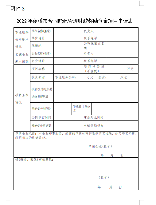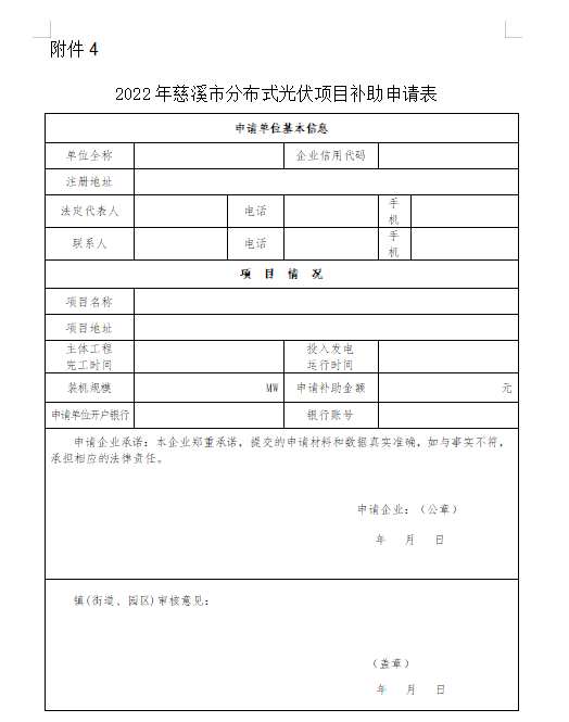 1月5日,浙江慈溪人民政府(fu)發布(bu)關于做好2022年節(jie)能降(jiang)耗(hao)獎勵(li)補助申報工作的通知,對組織(zhi)申報2022年度(du)節(jie)能改(gai)造(zao)項(xiang)目(mu)獎勵(li)補助和分布式光伏補助。 分(fen)布式光(guang)伏(fu)補助(zhu)(zhu)申報范圍:通過(guo)相(xiang)關部門驗收并于(yu)2022年投入(ru)發電運行、裝機容量0.1MW以上(shang)的(de)分(fen)布式光(guang)伏(fu)項目(mu)的(de)投資方,給予不(bu)高于(yu)0.1元/瓦的(de)一次(ci)性(xing)補助(zhu)(zhu),單個項目(mu)最高不(bu)超過(guo)10萬元。 申(shen)報資料 1.2022年慈溪市分布式光伏項目補助申請(qing)表(附件4); 2.企(qi)業法人營(ying)業執照副本復印件(jian)(蓋章(zhang)); 3.市(shi)供(gong)電公司出(chu)具的(de)并網(wang)驗收意見書(shu)復印件(蓋章); 4.項目備案登(deng)記(ji)表復印件(蓋章)。 原文如下: 關于做好2022年節能降耗獎勵補助申報工作的通知 各鎮人民政府、街(jie)道辦事處(chu),市(shi)住建局(ju)、市(shi)交通運輸局(ju)、市(shi)機(ji)關事務管理局(ju)、市(shi)商務局(ju)、市(shi)文化和廣電旅(lv)游體育局(ju),各產業平臺: 根據《慈(ci)溪(xi)(xi)市人(ren)民(min)政府辦公(gong)室關(guan)于印發(fa)2022年(nian)慈(ci)溪(xi)(xi)市推進產業高質量(liang)發(fa)展(zhan)政策意見的通(tong)知》(慈(ci)政辦發(fa)〔2022〕38號(hao))和(he)(he)市發(fa)改(gai)局、市財政局聯(lian)合印發(fa)《關(guan)于印發(fa)2022年(nian)慈(ci)溪(xi)(xi)市節能(neng)(neng)降耗獎勵補(bu)助實(shi)施細則的通(tong)知》(慈(ci)發(fa)改(gai)〔2022〕41號(hao))文(wen)件精神,決定組織申(shen)(shen)報2022年(nian)度節能(neng)(neng)改(gai)造(zao)項(xiang)目獎勵補(bu)助和(he)(he)分布式光(guang)伏補(bu)助。現(xian)將有關(guan)申(shen)(shen)報事(shi)項(xiang)通(tong)知如下: 一、節能改造項目獎勵補助 (一)申(shen)報范圍(wei) 本市2022年當年實(shi)施(shi)完成的(de)節能(neng)改造(zao)項目的(de)企業(單位)和實(shi)施(shi)合(he)(he)同能(neng)源管理項目的(de)服務機構,項目投資額在30萬元以上,年綜合(he)(he)節能(neng)量超過70噸標煤,符合(he)(he)寧波市節能(neng)技術導(dao)向要求。 (二(er))獎勵(li)標準(zhun) 按(an)項(xiang)目的(de)年(nian)節(jie)能量(liang)給予不高于(yu)300元(yuan)/噸的(de)獎(jiang)(jiang)勵(li),最高不超過(guo)50萬元(yuan)且獎(jiang)(jiang)勵(li)總額不超過(guo)投(tou)資額的(de)30%。上述節(jie)能項(xiang)目為合同能源(yuan)管理的(de),對項(xiang)目實施企業和(he)合同能源(yuan)管理服務機構分別按(an)25%和(he)75%獎(jiang)(jiang)勵(li)。 (三)申(shen)報資(zi)料 1.2022年慈溪市節(jie)能改造項(xiang)目(mu)獎(jiang)勵申請(qing)表(附(fu)件(jian)1); 2.2022年慈溪(xi)市節能改造項目投資明細表(附件2); 3.2022年慈溪市合同能源管(guan)理(li)財(cai)政獎勵資金項目申請表(附件(jian)3); 4.項目(mu)實施報告(gao)(gao)(包括項目(mu)承擔單位(wei)概況、計(ji)劃(hua)、完成情況、效益評估和竣工驗(yan)收報告(gao)(gao)); 5.節能(neng)改造(zao)投入(ru)原始發票(piao)復(fu)印件(jian)和節能(neng)改造(zao)投入(ru)付(fu)款憑(ping)證復(fu)印件(jian)(蓋章);發票(piao)和付(fu)款不能(neng)一一對(dui)應(ying)的,需(xu)提供付(fu)款明細賬(蓋章); 6.企業(ye)出具提供資料和數據(ju)真實有效的承諾; 7.LED燈改造項目需(xu)提供(gong)燈具出入庫單(dan)據。 (四)審核 市(shi)發改局(ju)會同相關部門對(dui)申請(qing)獎勵單位進行(xing)核實,節能(neng)量和(he)投資(zi)額由市(shi)發改局(ju)委托的第三(san)方(fang)相關機構進行(xing)核查。發票(piao)與付款不能(neng)一一對(dui)應的,按照先進先出法予以認定。 (五)其(qi)他說明(ming) 1.項(xiang)目節能量是指用(yong)能單(dan)(dan)位(wei)通過(guo)實施節能技(ji)術改造,在滿足(zu)同等需要或達到相(xiang)同目的(de)的(de)條件下,提高(gao)能源(yuan)利用(yong)效(xiao)率(lv)而(er)形成的(de)能耗(hao)減少量(按等價值計),不包括單(dan)(dan)純(chun)以擴(kuo)大生產能力為目的(de)的(de)項(xiang)目實施后產生的(de)能耗(hao)變化。 2.項目(mu)投(tou)資(zi)額均不含稅,以發票和(he)付(fu)款(kuan)為確認依據(ju),發票日(ri)期(qi)和(he)付(fu)款(kuan)日(ri)期(qi)均須在2022年1月1日(ri)至2022年12月31日(ri)期(qi)間,實際(ji)付(fu)款(kuan)小(xiao)于發票額時,以實際(ji)付(fu)款(kuan)為準。 3.發票必須于(yu)2022年1月1日至2022年12月31日期間完整開具(ju),按比例開具(ju)或者開具(ju)不(bu)完整的(de),企業需(xu)提交此節能(neng)改造項(xiang)目不(bu)再(zai)享受獎勵承(cheng)諾書。 4.上述獎(jiang)勵(li)與寧波獎(jiang)勵(li)不(bu)重(zhong)復享受(shou),已兌現認定(ding)過的發票不(bu)予重(zhong)復認定(ding)。 二、分布式光伏補助 (一)申報(bao)范圍 通過相關(guan)部門驗收并于2022年(nian)投(tou)入發電運行、裝機容量(liang)0.1MW以上(shang)的(de)分布(bu)式(shi)光伏(fu)項目的(de)投(tou)資方。 (二(er))獎勵標準 給予不高于0.1元/瓦的一(yi)次性補助,單個項目最高不超過10萬元。 (三)申(shen)報資料 1.2022年(nian)慈溪市(shi)分(fen)布式光(guang)伏(fu)項目(mu)補助申請表(附件4); 2.企業(ye)(ye)法人(ren)營業(ye)(ye)執照副(fu)本復印件(蓋章); 3.市(shi)供(gong)電公(gong)司出(chu)具的并網驗收意見書(shu)復印件(蓋(gai)章); 4.項(xiang)目備案登記表復印件(蓋章)。 (四)審(shen)核 經市發改局(ju)核實后由市財(cai)政局(ju)資料審核和資金審批。 請(qing)各地和有關市級部門將(jiang)電(dian)子表(biao)格提供給(gei)