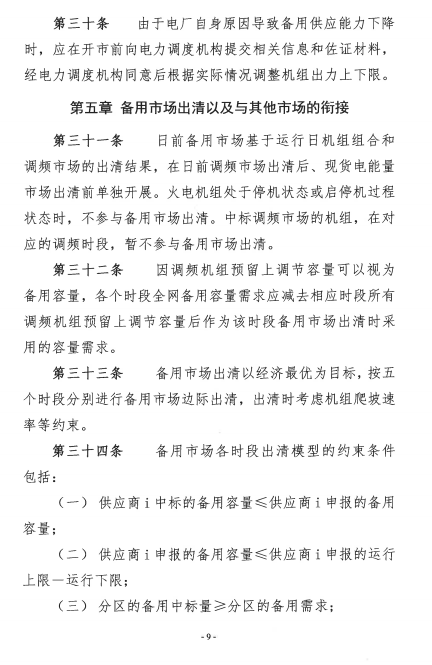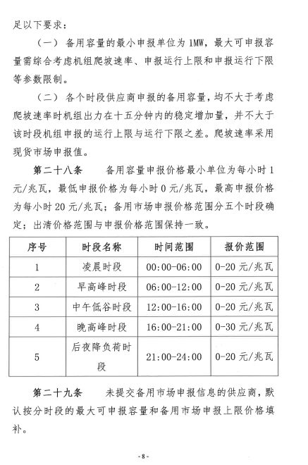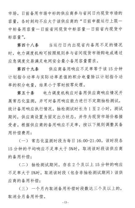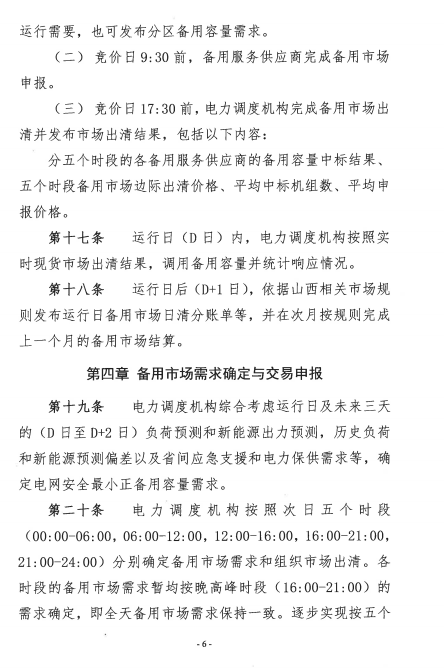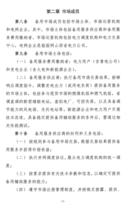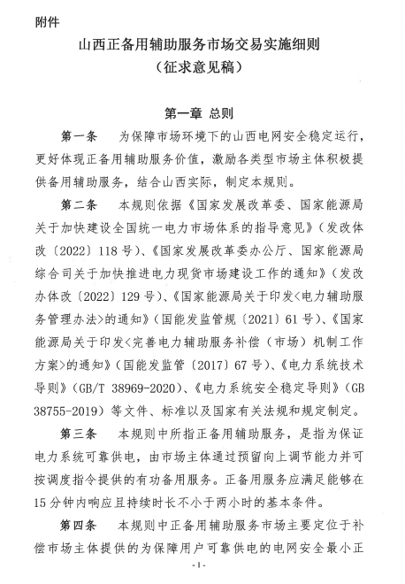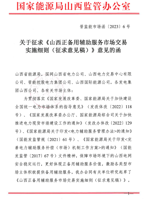 1月13日,山西能源(yuan)監管(guan)辦(ban)發布關于征求《山西正備用輔助服務(wu)(wu)市(shi)場(chang)交易(yi)實(shi)施細則(征求意(yi)見稿(gao))》意(yi)見的(de)函,文件指出,備用服務(wu)(wu)供應商:執行備用市(shi)場(chang)交易(yi)結果,能(neng)夠響應調度指令,調整發電(dian)出力(li)(或用電(dian)負荷(he))提供備用服務(wu)(wu)的(de)市(shi)場(chang)主體(ti),包括參與現(xian)貨市(shi)場(chang)的(de)燃煤機(ji)組(zu)和燃氣機(ji)組(zu),省(sheng)調直調的(de)新型儲能(neng)電(dian)站,虛擬電(dian)廠、可控負荷(he),以及具(ju)(ju)備調節能(neng)力(li)的(de)風電(dian)場(chang)、光伏電(dian)站等。新能(neng)源企(qi)業(ye)和電(dian)力(li)用戶開展技術改(gai)造,具(ju)(ju)備穩定提供備用輔助服務(wu)(wu)的(de)條(tiao)件后,需通過(guo)相關性能(neng)測試(shi)。