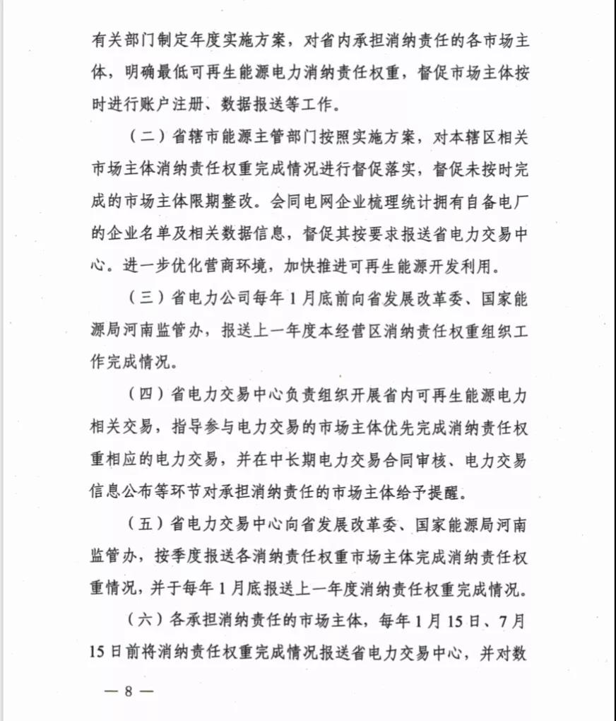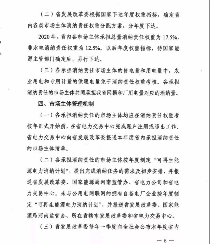 近(jin)日,河南省印發《可再生能源(yuan)電力消納(na)(na)保障實(shi)施方案(an)》(下(xia)稱《方案(an)》。《方案(an)》提出(chu),2020年河南省各市(shi)場(chang)主體,將(jiang)承(cheng)擔總量(liang)消納(na)(na)責任權重(zhong)17.5%,非(fei)水(shui)電消納(na)(na)責任權重(zhong)為12.5%。并提出(chu)鼓勵超(chao)出(chu)保障性收(shou)購電量(liang)的可再生能源(yuan)參與市(shi)場(chang)化交易(yi)。