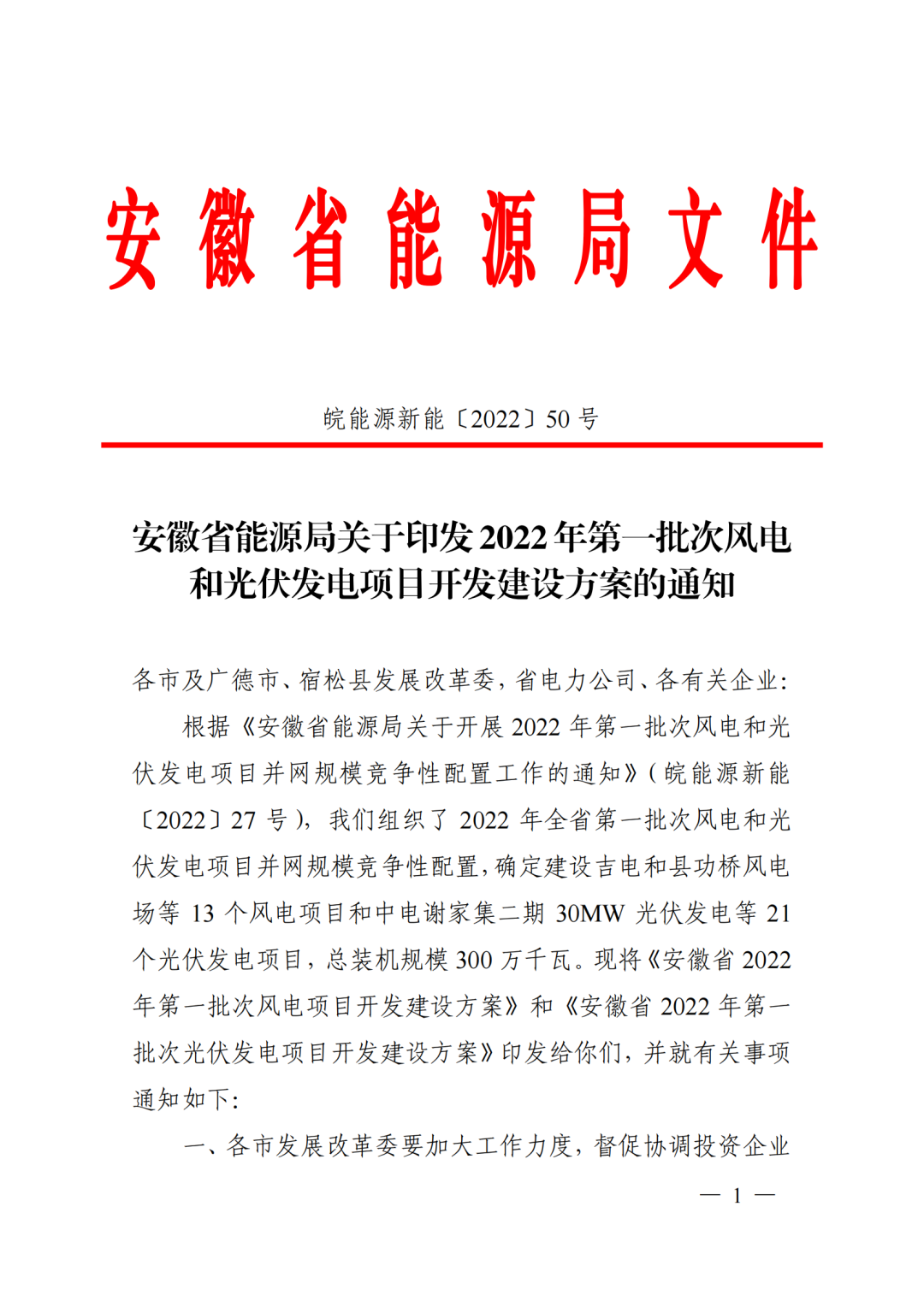 近(jin)日,安徽省(sheng)能(neng)源(yuan)局發(fa)布《關于2022年(nian)第一批次風電和光(guang)(guang)伏發(fa)電項(xiang)目(mu)開發(fa)建設(she)方案》,包括1GW風電項(xiang)目(mu)、2GW光(guang)(guang)伏項(xiang)目(mu)。 ![]() ![]() ![]() ![]() ![]() ![]()