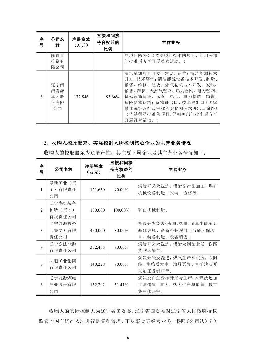 3月6日,遼寧能源煤電產業股份有限公司發布收購報告書摘要。 遼寧能源擬18.17億元收購遼能投資、港華投資等共8名投資者合計持有的清能集團100%股份,這標志著遼寧能源大舉進軍新能源終于邁開實質性步伐。 據悉,遼寧能源控股股東為遼寧省人民政府國有資產監督管理委員會。其主營業務為煤炭開采、洗選加工和銷售及電力、熱力的生產和供應。 清能集團是遼寧省屬國有企業中領先的綜合性清潔能源公司,主要從事清潔能源項目開發、建設、運營。清能集團的具體業務包括風電業務、太陽能發電業務、成品油業務以及正在籌劃的天然氣業務。截至 2022年 9 月 30 日,清能集團在遼寧省擁有及運營 5 個風電場及 2 個太陽能發電場,控股裝機容量分別為 247.5 兆瓦及 19.4 兆瓦。清能集團持有的風電場及太陽能發電場均位于擁有豐富風能或太陽能資源的地區,處于穩定運營狀態。除風力及太陽能發電業務外,清能集團正在籌劃天然氣相關業務,主要包括遼寧省內天然氣管網建設、氣源和終端城鄉燃氣銷售等。