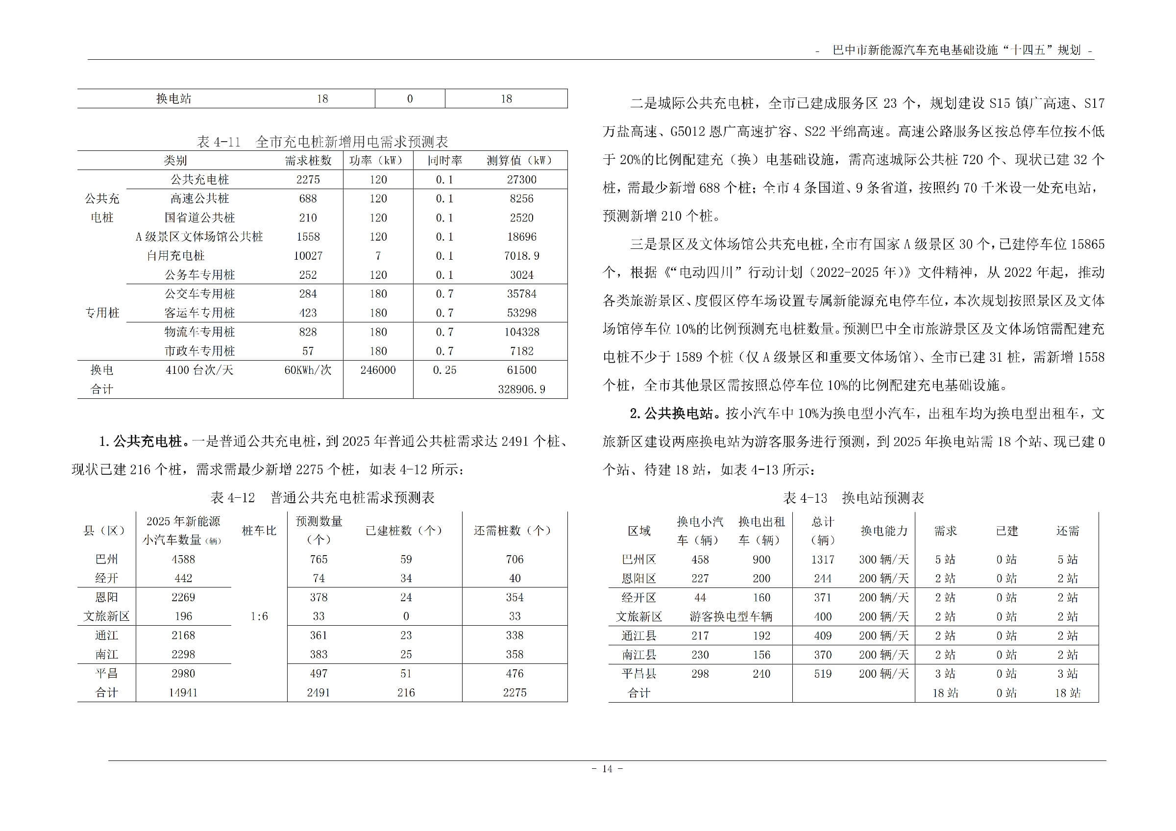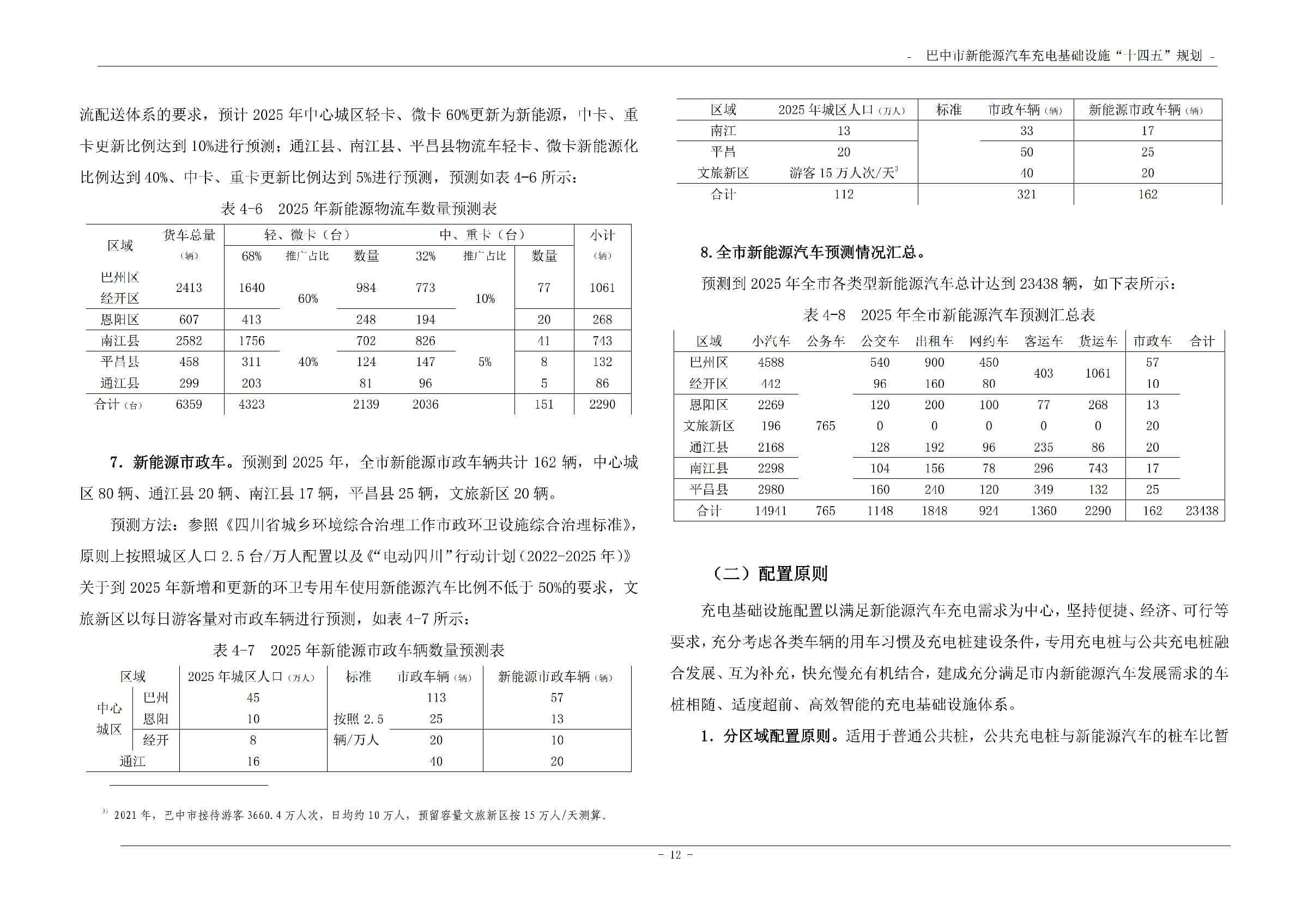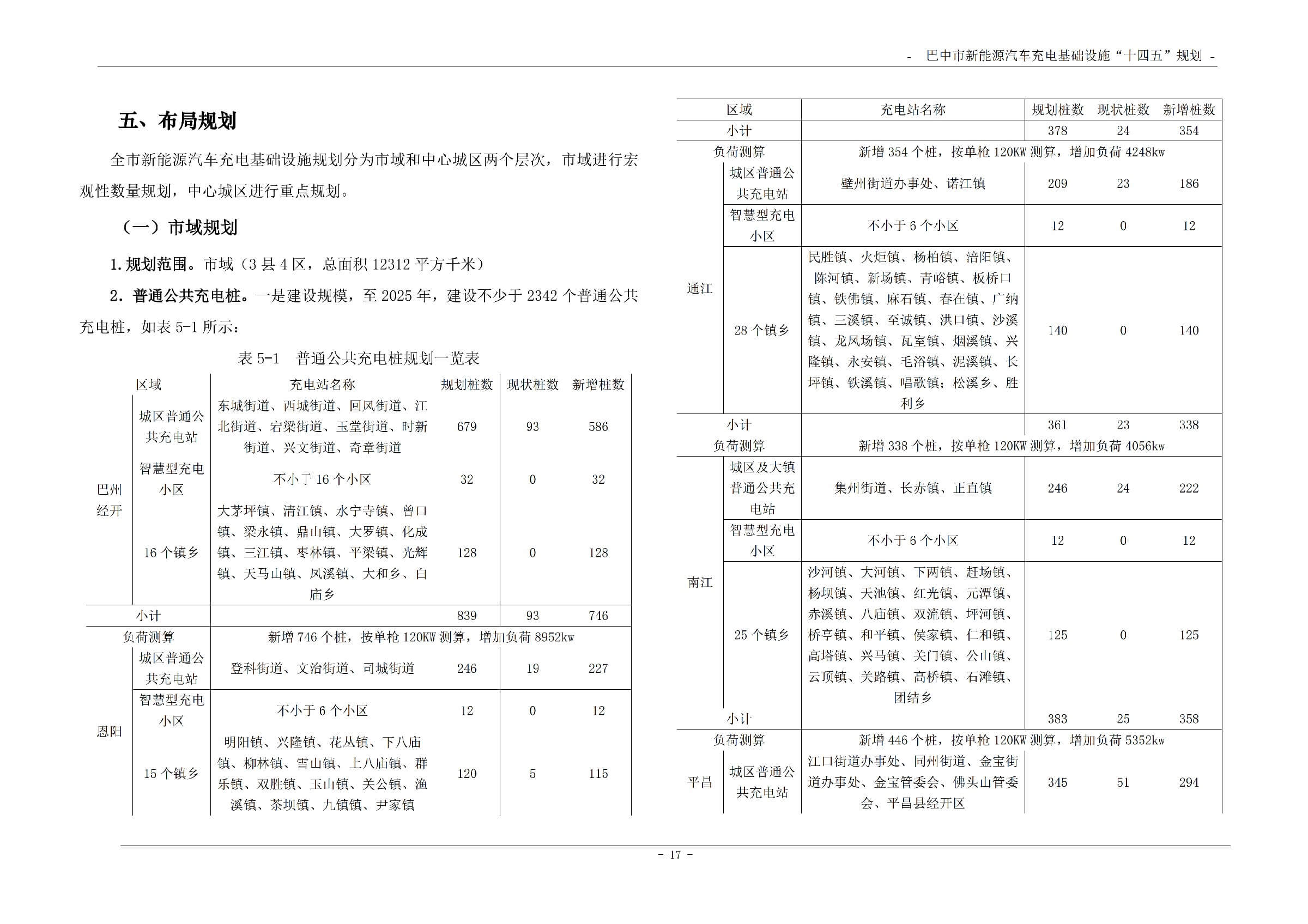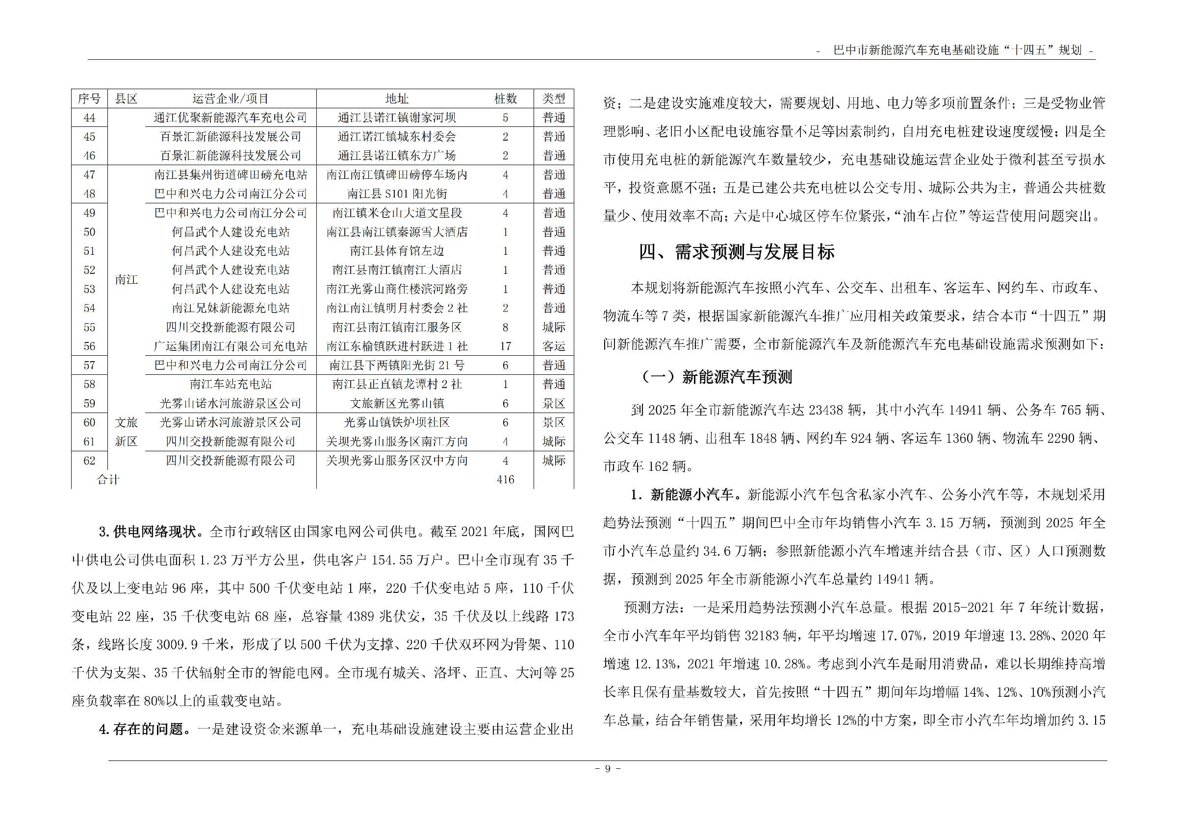 總投資約5.47億元!四川巴中市規劃全市充電基礎設施建設3月23日,四川省巴中市發改委發布《巴中市新能源汽車充電基礎設施“十四五”規劃》,根據對不同類型充電樁的投資估算,“十四五”期間全市新能源汽車充電基礎設施總投資54759.1萬元。 《規劃》中提到,計劃至2025年,建設不少于2342個普通公共充電樁,投資約14052萬元;規劃至2025年,全市換電站達到18個站、新增18個換電站,投資預計4100萬元;國、省道規劃新增21個城際公共充電站,全市公路養護站每站規劃建設1個樁,國、省道規劃新增210個樁;共計新增898個樁,投資約10776萬元。 到2025年全市新增公交車專用充電樁不少于284個樁,投資約1988萬元。至2025年,全市建設不少于540個客運車專用樁,投資約3780萬元。至2025年全市建設不少于828個物流專用充電樁,投資約5796萬元。至2025年全市共建設8座市政專用充電站,不少于57個樁,優先與市政車輛停車場所合建。投資約399萬元。到2025年全市建設不少于252個公務用車專用樁(單樁),投資約1512萬元。 至2025年全市新增自用樁不少于10027個樁,已建小區可申請免收增容基本服務費、使用維修基金、申請舊改項目等措施推動建設;新建小區100%固定車位預留充電樁安裝條件;縣(區)可提高自用樁建設比例。全市自用充電樁投資約3008.1萬元。 原文如下: