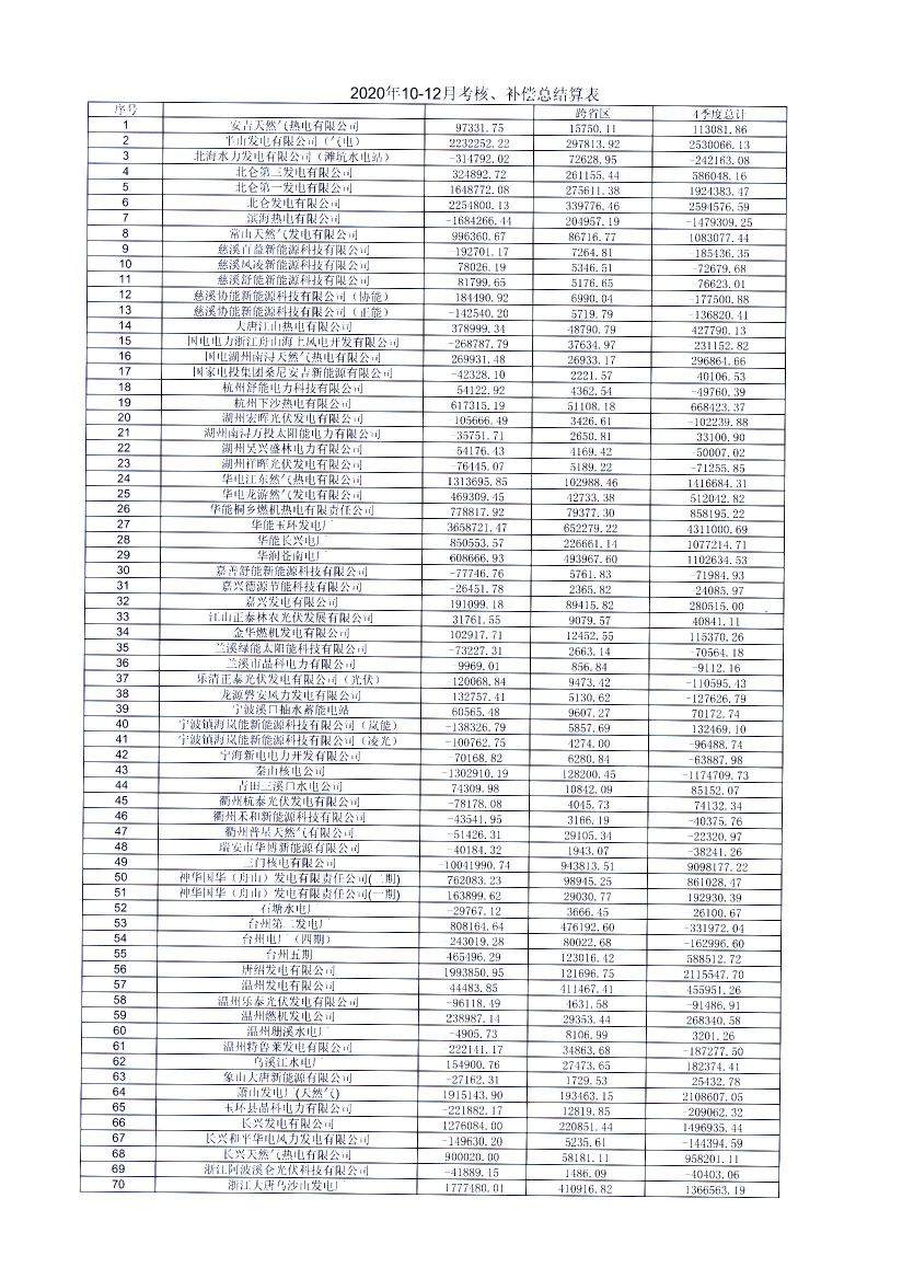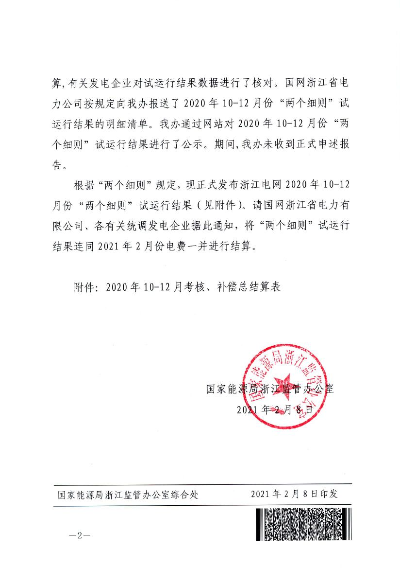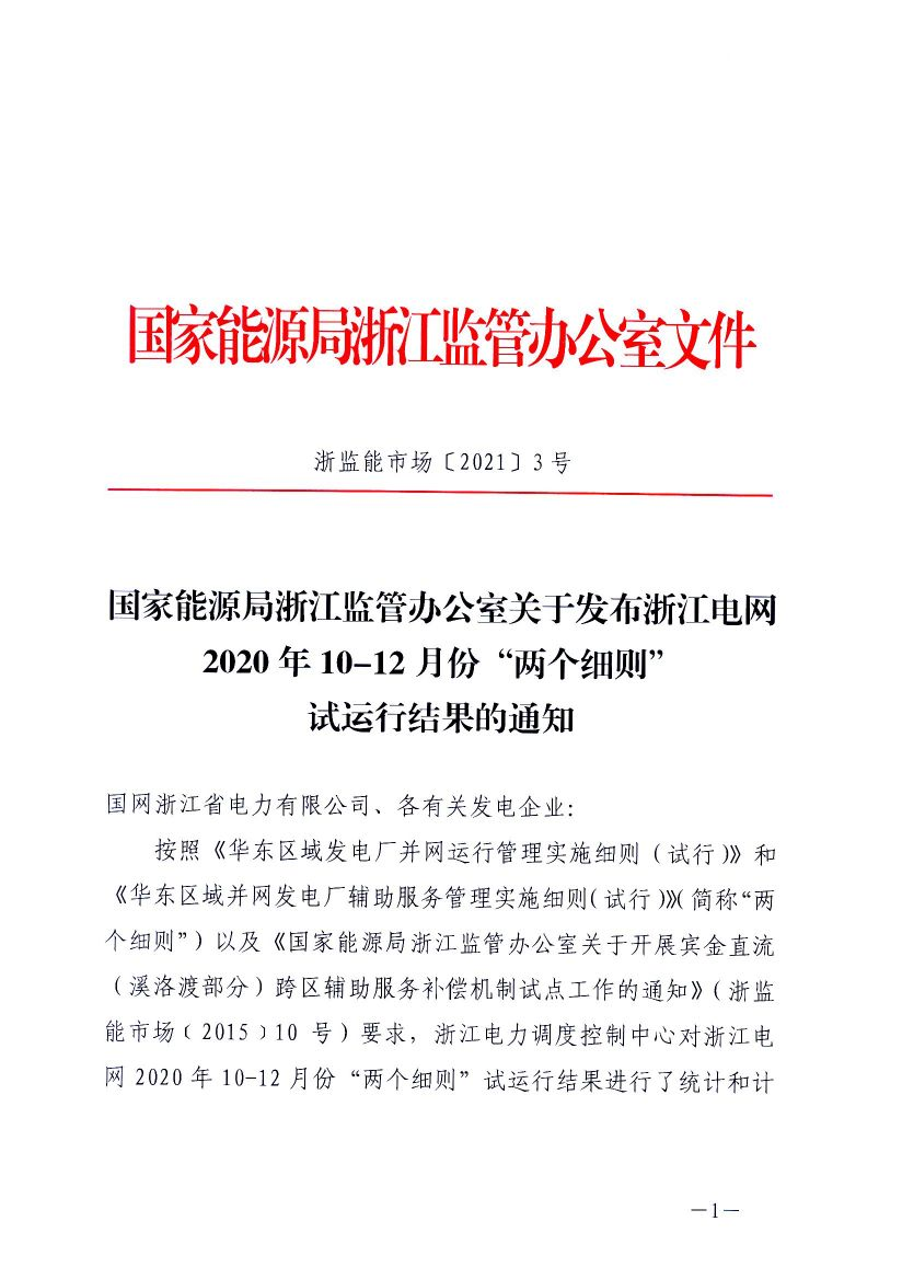 浙江電網2020年10-12月“兩個細則”試運行結果的通知