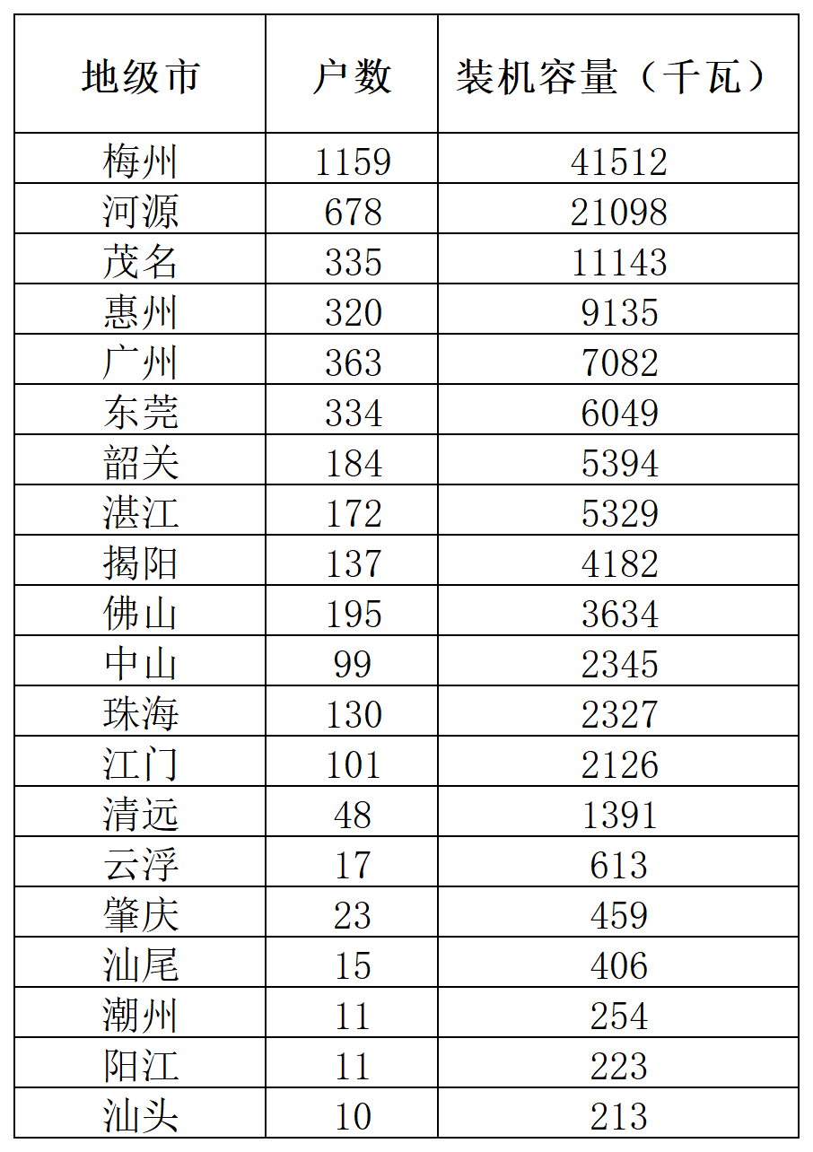 日前,廣東電網有限責任公司關于屬地區域2023年1月至3月并網投運的戶用光伏項目信息公布,2023年一季度,廣東省新增戶用裝機4347戶,總規模為125MW,其中梅州、河源、茂名位列前三。 具體數據如下: 原文通知如下: 廣東電網有限責任公司關于屬地區域2023年1月至3月并網投運的戶用光伏項目信息公布 根據《國家能源局綜合司關于按月公布和報送戶用光伏項目信息有關事項的通知》(國能綜通新能〔2023〕17號)等文件中關于戶用光伏項目管理的有關要求,現予以公布廣東電網公司屬地區域內2023年1月至3月并網投運的戶用光伏項目信息(詳見附件)。 附件:廣東電網有限責任公司屬地區域內2023年1月至3月并網投運戶用光伏項目情況 廣東電網有限責任公司 2023年4月10日