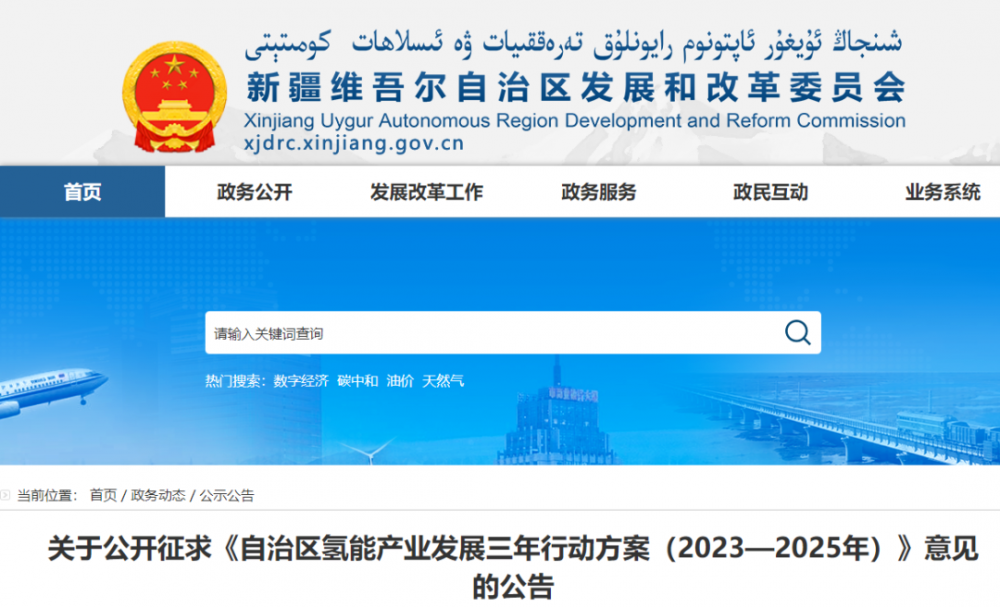 綠氫10萬噸/年!氫能飛機提上日程!這個自治區出手布局氫能產業!新疆(jiang)發改委(wei)發布了(le)關于公開征(zheng)求(qiu)《自(zi)治(zhi)區(qu)氫能(neng)產(chan)業(ye)發展三年(nian)行動方案(2023—2025年(nian))》意見的公告。征(zheng)求(qiu)意見稿提出的新疆(jiang)氫能(neng)發展目標是,建設一批(pi)氫能(neng)產(chan)業(ye)示范(fan)區(qu),到2025年(nian),可再生能(neng)源制氫量達(da)到10 萬噸/年(nian),推廣氫燃料電池車1500輛(liang)以上。 產業(ye)布局上,將在烏(wu)魯木(mu)齊建設氫(qing)能(neng)(neng)創新(xin)發展(zhan)示(shi)范(fan)區,打造氫(qing)能(neng)(neng)產業(ye)創新(xin)研(yan)發、裝備制造、商(shang)務會展(zhan)、商(shang)業(ye)應用基(ji)地。在哈(ha)密、巴州、南疆環塔(ta)里木(mu)千萬千瓦級(ji)新(xin)能(neng)(neng)源(yuan)基(ji)地利用可(ke)再(zai)(zai)生能(neng)(neng)源(yuan)電解(jie)水(shui)制氫(qing)技術,開展(zhan)“風光(guang)氫(qing)儲”一體化項(xiang)目示(shi)范(fan),為(wei)綠氫(qing)與可(ke)再(zai)(zai)生能(neng)(neng)源(yuan)融(rong)合發展(zhan)探(tan)索經驗。 和其他地方政策“差異化”表現之一是,提(ti)出構建(jian)氫(qing)能輸運(yun)網絡。聯(lian)合氫(qing)氣生產端、消費端及運(yun)輸端,構建(jian)相(xiang)對完(wan)善、穩定、高效(xiao)的(de)氫(qing)氣運(yun)輸網絡。強化氫(qing)氣運(yun)輸保障,引導(dao)具備條件地(州、市)開(kai)(kai)展(zhan)高壓管(guan)束車運(yun)輸和液(ye)氫(qing)運(yun)輸。開(kai)(kai)展(zhan)摻氫(qing)天然氣管(guan)道(dao)、純氫(qing)管(guan)道(dao)等試點示(shi)(shi)范,探(tan)索有(you)機液(ye)態、合金固態等新技術氫(qing)儲運(yun)示(shi)(shi)范,為“西氫(qing)東送”提(ti)供(gong)支撐。 表現(xian)之二(er)是,促進氫(qing)(qing)(qing)(qing)能(neng)(neng)(neng)(neng)和新能(neng)(neng)(neng)(neng)源多能(neng)(neng)(neng)(neng)互補(bu)應用(yong)(yong)。鼓勵(li)條件適宜的地州(zhou),通過風(feng)(feng)電(dian)、光伏電(dian)解水制氫(qing)(qing)(qing)(qing)開(kai)展(zhan)(zhan)新型(xing)儲能(neng)(neng)(neng)(neng)和調峰示范(fan)。開(kai)展(zhan)(zhan)“風(feng)(feng)力/光伏發(fa)電(dian)+氫(qing)(qing)(qing)(qing)儲能(neng)(neng)(neng)(neng)+氫(qing)(qing)(qing)(qing)能(neng)(neng)(neng)(neng)重卡(ka)運輸+氫(qing)(qing)(qing)(qing)能(neng)(neng)(neng)(neng)無人機巡檢綜合(he)應用(yong)(yong)” 等(deng)多能(neng)(neng)(neng)(neng)互補(bu)應用(yong)(yong)場(chang)景。探索(suo)氫(qing)(qing)(qing)(qing)與天然氣(qi)混合(he)發(fa)電(dian)等(deng)新型(xing)技術應用(yong)(yong)。開(kai)展(zhan)(zhan)氫(qing)(qing)(qing)(qing)電(dian)融合(he)微電(dian)網示范(fan),推(tui)動燃料電(dian)池(chi)熱(re)電(dian)聯供(gong)應用(yong)(yong)實踐。謀劃開(kai)展(zhan)(zhan)“甲醇制氫(qing)(qing)(qing)(qing)+數(shu)據(ju)中(zhong)心(xin)備用(yong)(yong)電(dian)源”“生(sheng)物質制氫(qing)(qing)(qing)(qing)+熱(re)電(dian)聯供(gong)”等(deng)創新型(xing)應用(yong)(yong)。 關于公開征求《自治區氫能產業發展三年行動方案(2023—2025年)》意見的公告 為貫(guan)徹落實國家《氫能(neng)(neng)產業(ye)發展中長期(qi)規劃(2021—2035年(nian))》,加快我區(qu)氫能(neng)(neng)產業(ye)發展,自(zi)治區(qu)發展改革委(wei)在征求有關部門、14個地(di)(州、市)及相(xiang)關企業(ye)意見建議(yi)的基礎上,研究起草了《自(zi)治區(qu)氫能(neng)(neng)產業(ye)發展三年(nian)行(xing)動方案(2023—2025年(nian))》,現(xian)向社會公開征求意見建議(yi)。 公開征求意見建(jian)(jian)議的時間為2023年4月24日至4月30日。相關單位和社會各界人士可在此期間,將意見建(jian)(jian)議通過電話(hua)、傳真或電子(zi)郵件方(fang)式反饋至我委創新和高(gao)技術發展處。 感(gan)謝您的(de)參(can)與和支(zhi)持。 聯 系 人:岳青 聯系電話:0991-2818204(兼傳(chuan)真) 電子郵箱:gjc@xjdrc.gov.cn 附(fu)件:自治區氫能產業發展三年(nian)行動方(fang)案(2023—2025年(nian)) 自治區發展改革委 2023年(nian)4月24日 附件 自治區氫能產業發展三年行動方案(2023—2025年) 自治區氫能產業發展三年行動方案 (2023—2025 年) 氫能是(shi)一(yi)種來源(yuan)(yuan)豐富(fu)、綠色低(di)碳(tan)、應用廣(guang)泛的(de)二次能源(yuan)(yuan)。發展氫能產(chan)(chan)業(ye)是(shi)提高(gao)能源(yuan)(yuan)安(an)全、引領產(chan)(chan)業(ye)轉(zhuan)型升級、實(shi)(shi)現(xian)綠色發展的(de)重要(yao)途徑。為助力實(shi)(shi)現(xian)碳(tan)達峰(feng)、碳(tan)中(zhong)和(he)目標,構(gou)建清潔低(di)碳(tan)、安(an)全高(gao)效的(de)現(xian)代能源(yuan)(yuan)體系,推動(dong)氫能產(chan)(chan)業(ye)高(gao)質量發展,根據(ju)國家《氫能產(chan)(chan)業(ye)發展中(zhong)長期規劃(2021—2035 年)》《工業(ye)領域(yu)碳(tan)達峰(feng)實(shi)(shi)施(shi)方(fang)案(an)》有(you)關要(yao)求,結合我區實(shi)(shi)際,制(zhi)定本行(xing)動(dong)方(fang)案(an)。 一、總體思路 以習近平新時代(dai)中國特(te)色(se)社會主義思想為(wei)指(zhi)導,深入學(xue)習貫(guan)徹黨(dang)的二十大精(jing)神,貫(guan)徹落實(shi)習近平總書記視察新疆重要講話重要批(pi)示(shi)指(zhi)示(shi)精(jing)神,全(quan)(quan)面落實(shi)能(neng)(neng)源安全(quan)(quan)新戰略,全(quan)(quan)面落實(shi)能(neng)(neng)源安全(quan)(quan)新戰略,緊扣實(shi)現碳達峰、碳中和(he)目標,立足資源稟賦和(he)產(chan)業(ye)基礎,圍(wei)繞國家“三基地一通道”能(neng)(neng)源產(chan)業(ye)定位,統(tong)籌氫(qing)能(nen