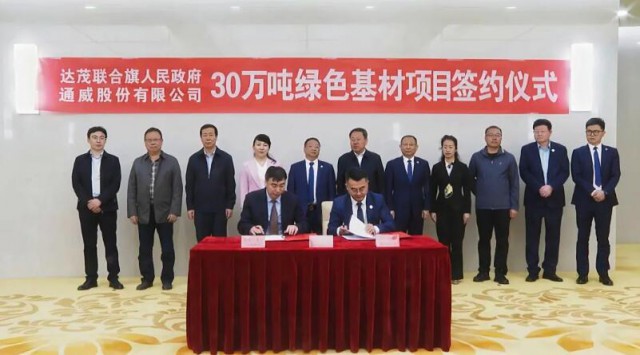 達茂旗與通威股份有限公司簽訂30萬噸綠色基材項目投資協議2023-05-10 12:34來源:gessey瀏覽數:171次