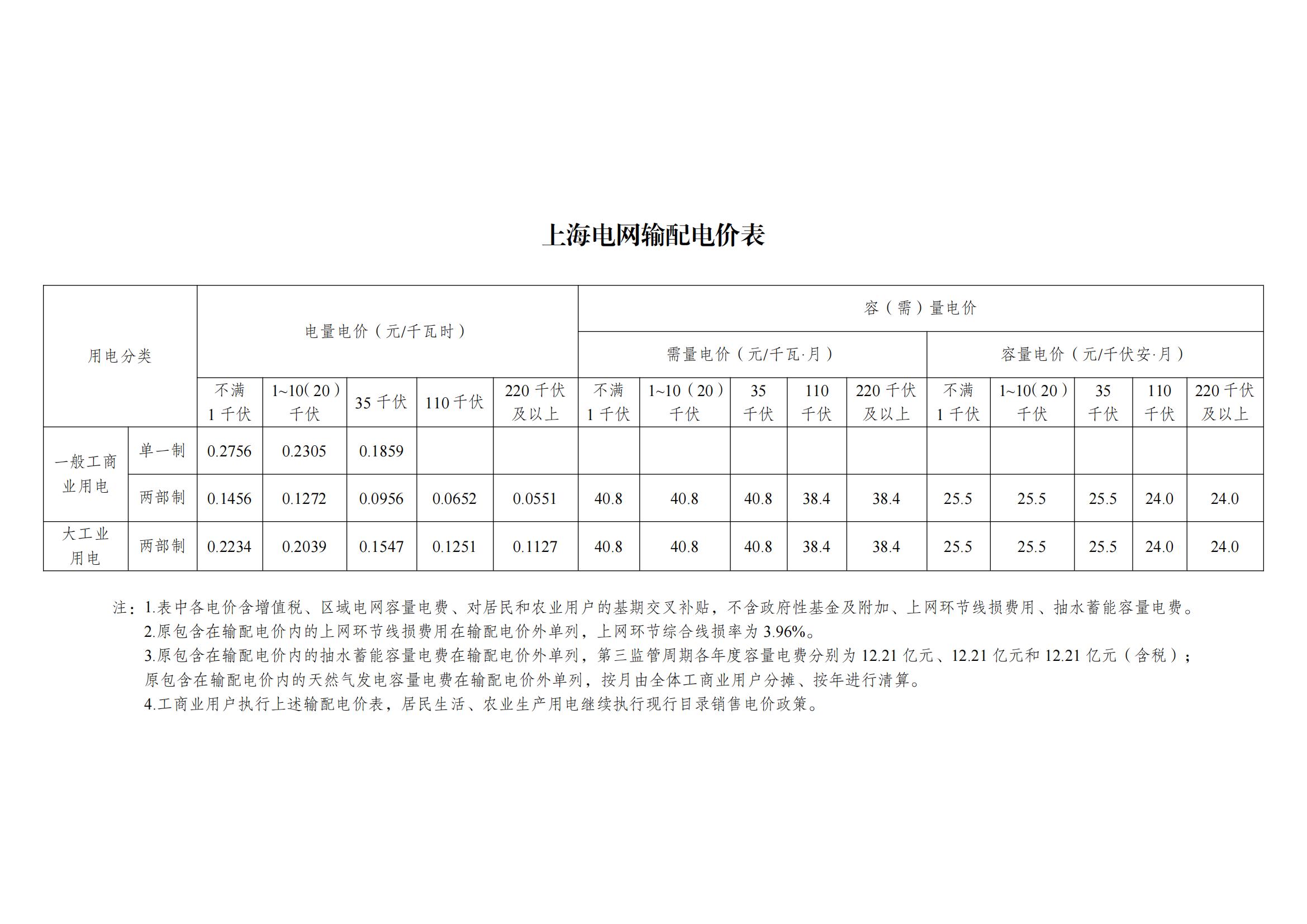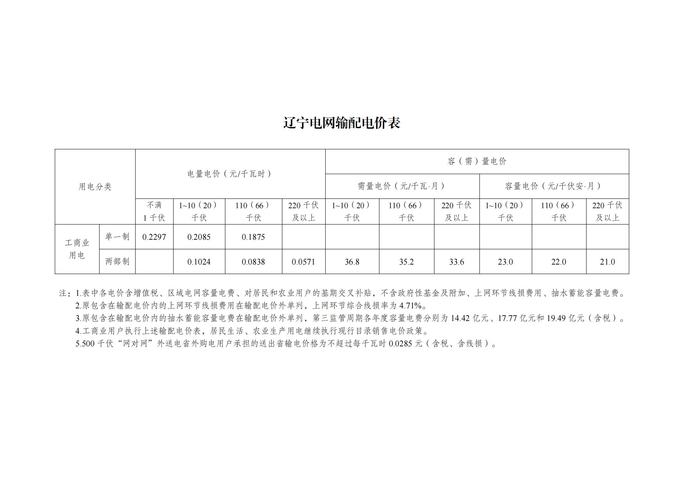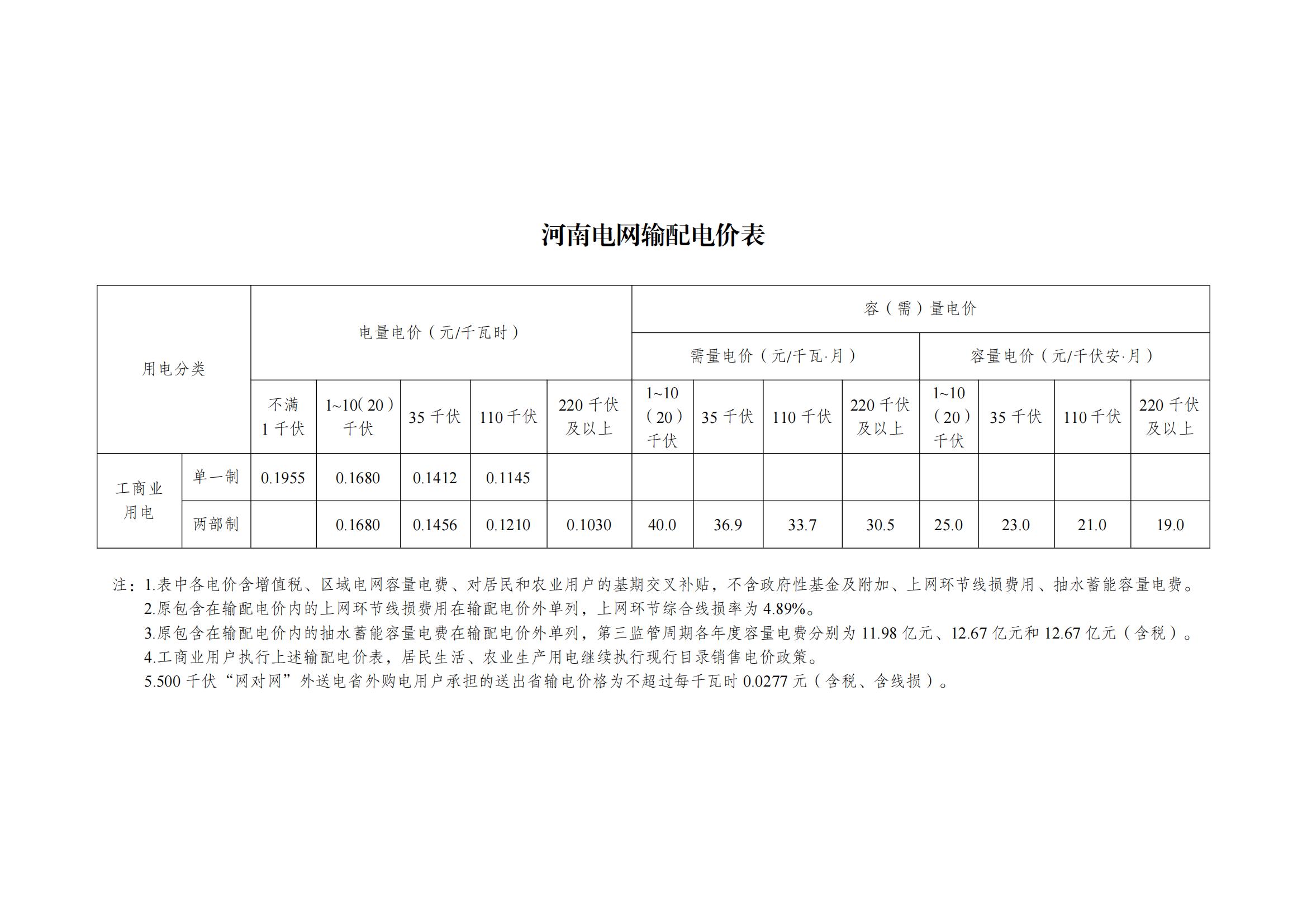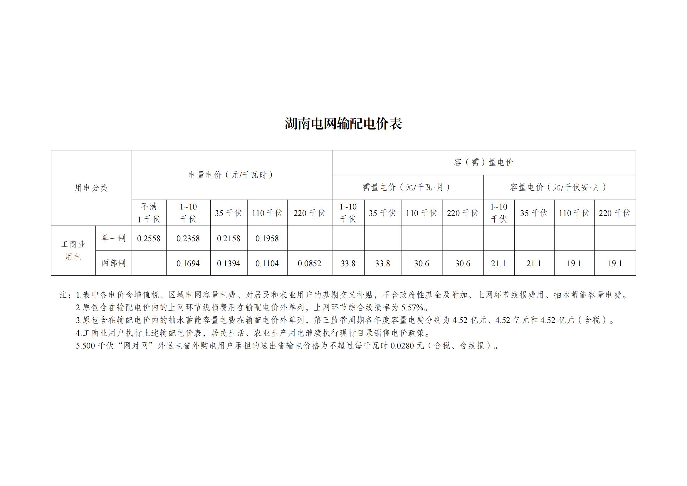 5月15日,國家發改委發布《關于第三監管周期省級電網輸配電價及有關事項的通知》(以下簡稱《通知》)。 《通知》指出,執行工商業(或大工業、一般工商業)用電價格的用戶,用電容量在100千伏安及以下的,執行單一制電價;100千伏安至315千伏安之間的,可選擇執行單一制或兩部制電價;315千伏安及以上的,執行兩部制電價,現執行單一制電價的用戶可選擇執行單一制電價或兩部制電價。選擇執行需量電價計費方式的兩部制用戶,每月每千伏安用電量達到260千瓦時及以上的,當月需量電價按本通知核定標準90%執行。每月每千伏安用電量為用戶所屬全部計量點當月總用電量除以合同變壓器容量。 原文如下: 國家發展改革委關于第三監管周期省級電網輸配電價及有關事項的通知 發改價格〔2023〕526號 各省、自治區、直轄市發展改革委,國家電網有限公司、中國南方電網有限責任公司、內蒙古電力(集團)有限責任公司: 為進一步深化輸配電價改革,更好保障電力安全穩定供應,推動電力行業高質量發展,現就第三監管周期省級電網輸配電價及有關事項通知如下: 一、按照《國家發展改革委 國家能源局關于印發<輸配電定價成本監審辦法>的通知》(發改價格規〔2019〕897號)、《國家發展改革委關于印發<省級電網輸配電價定價辦法>的通知》(發改價格規〔2020〕101號)及有關規定,核定第三監管周期各省級電網輸配電價,具體見附件。 二、用戶用電價格逐步歸并為居民生活、農業生產及工商業用電(除執行居民生活和農業生產用電價格以外的用電)三類;尚未實現工商業同價的地方,用戶用電價格可分為居民生活、農業生產、大工業、一般工商業用電(除執行居民生活、農業生產和大工業用電價格以外的用電)四類。 三、執行工商業(或大工業、一般工商業)用電價格的用戶(以下簡稱工商業用戶),用電容量在100千伏安及以下的,執行單一制電價;100千伏安至315千伏安之間的,可選擇執行單一制或兩部制電價;315千伏安及以上的,執行兩部制電價,現執行單一制電價的用戶可選擇執行單一制電價或兩部制電價。選擇執行需量電價計費方式的兩部制用戶,每月每千伏安用電量達到260千瓦時及以上的,當月需量電價按本通知核定標準90%執行。每月每千伏安用電量為用戶所屬全部計量點當月總用電量除以合同變壓器容量。 四、工商業用戶用電價格由上網電價、上網環節線損費用、輸配電價、系統運行費用、政府性基金及附加組成。 系統運行費用包括輔助服務費用、抽水蓄能容量電費等。 上網環節線損費用按實際購電上網電價和綜合線損率計算。電力市場暫不支持用戶直接采購線損電量的地方,繼續由電網企業代理采購線損電量,代理采購損益按月向全體工商業用戶分攤或分享。 五、居民生活、農業生產用電繼續執行現行目錄銷售電價政策。 六、省級價格主管部門要精心組織、周密安排,確保輸配電價平穩執行,做好與電網企業代理購電制度等的協同,密切監測輸配電價執行情況,發現問題及時報告我委(價格司)。電網企業要按照相關要求,嚴格執行本通知核定的輸配電價,統籌推進電網均衡發展;對各電壓等級的資產、費用、收入、輸配售電量、負荷、用戶報裝容量、線損率、投資計劃完成進度等與輸配電價相關的基礎數據進行統計歸集,每年5月底前報我委(價格司)和省級價格主管部門。 本通知自2023年6月1日起執行,現行政策相關規定與本通知不符的,以本通知規定為準。 點擊查看附件:省級電網輸配電價表 國家發展改革委 2023年5月9日