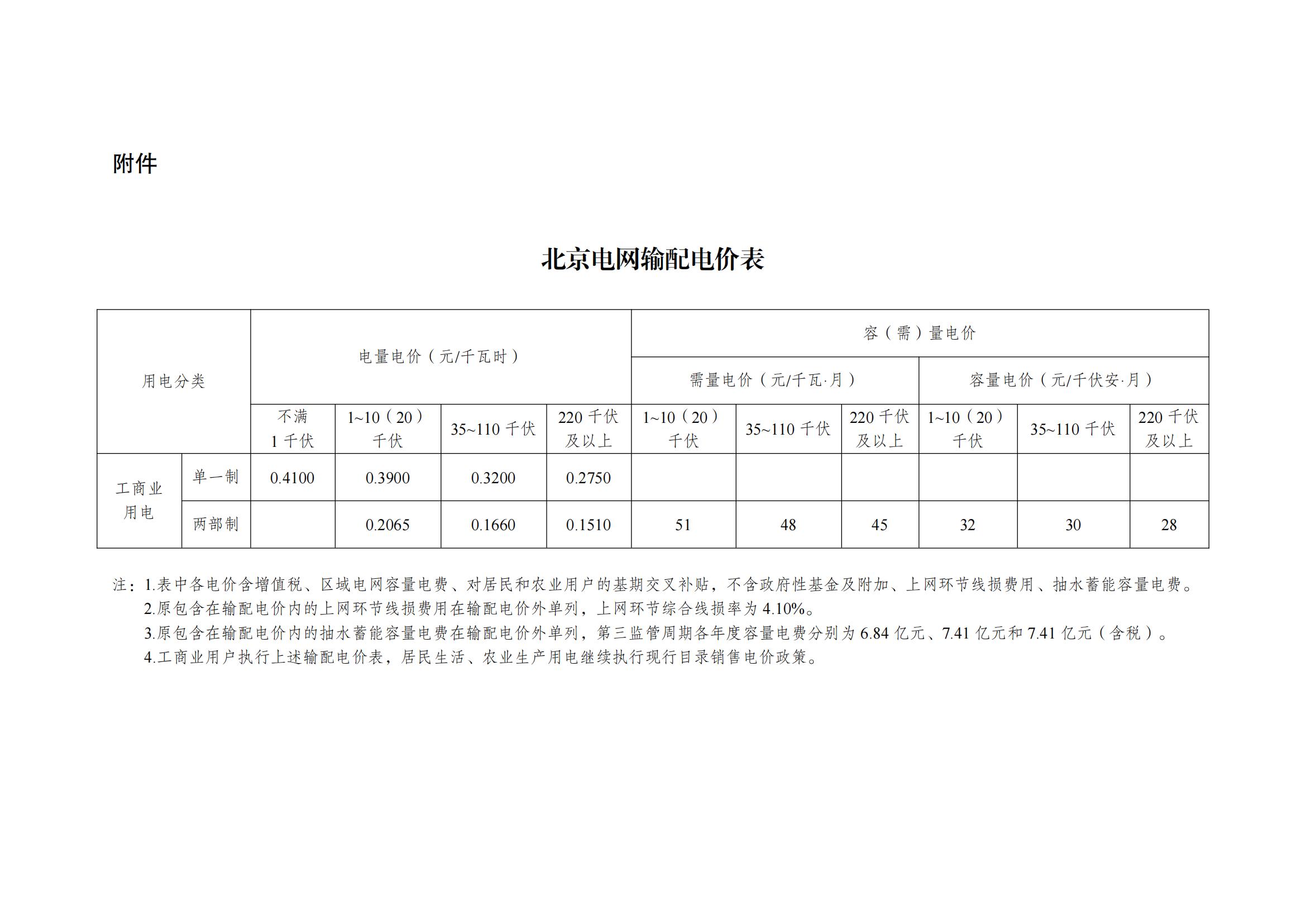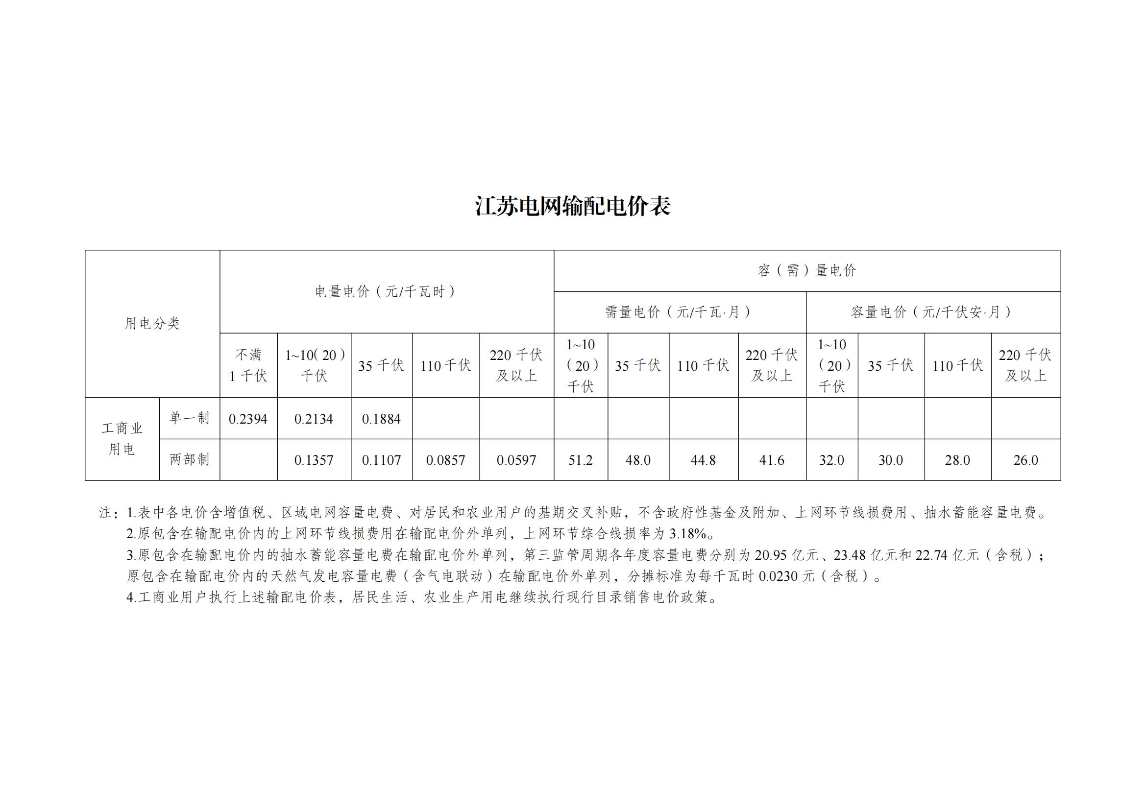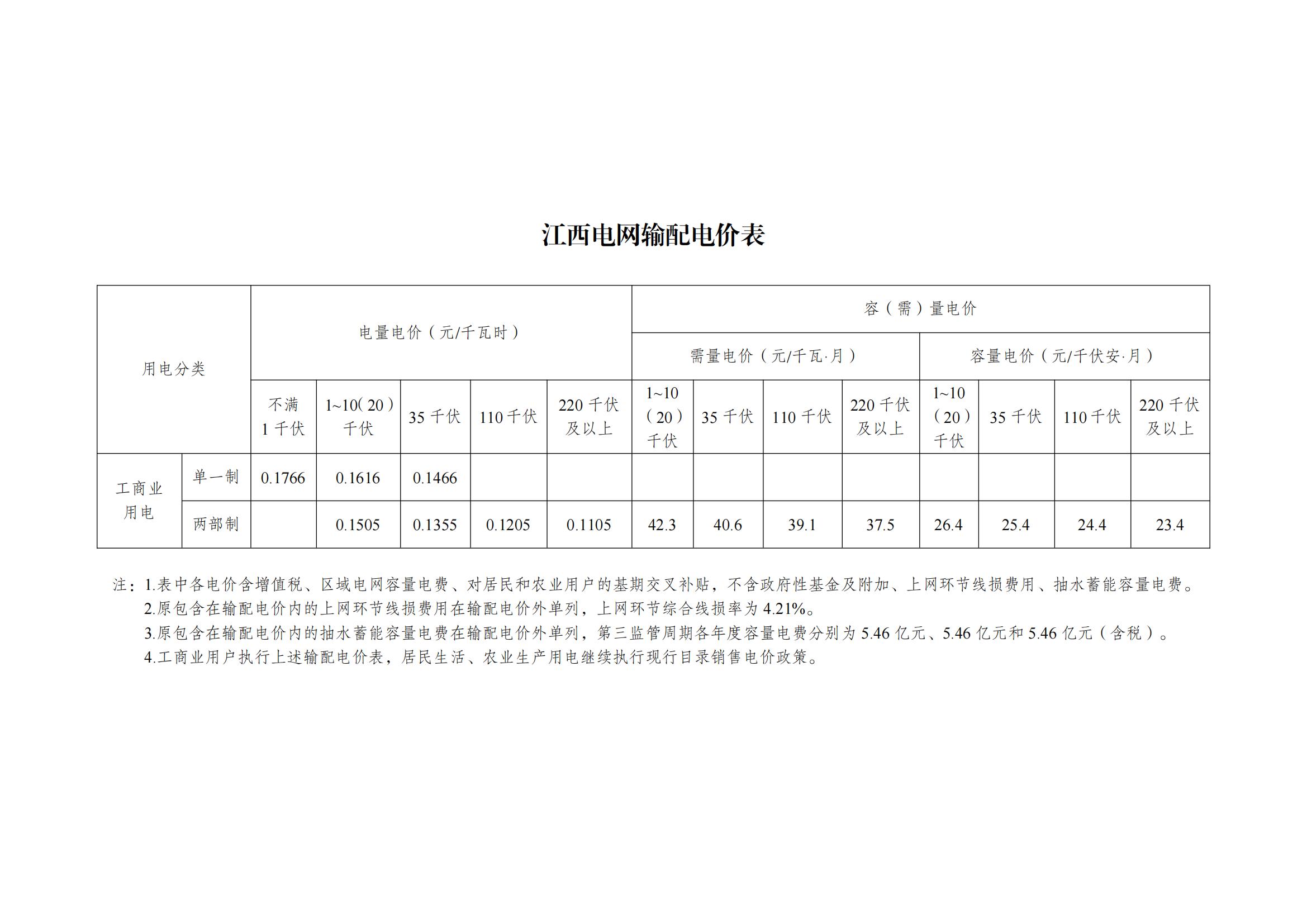 5月15日,國家發改委發布《關于第三監管周期省級電網輸配電價及有關事項的通知》(以下簡稱《通知》)。 《通知》指出,執行工商業(或大工業、一般工商業)用電價格的用戶,用電容量在100千伏安及以下的,執行單一制電價;100千伏安至315千伏安之間的,可選擇執行單一制或兩部制電價;315千伏安及以上的,執行兩部制電價,現執行單一制電價的用戶可選擇執行單一制電價或兩部制電價。選擇執行需量電價計費方式的兩部制用戶,每月每千伏安用電量達到260千瓦時及以上的,當月需量電價按本通知核定標準90%執行。每月每千伏安用電量為用戶所屬全部計量點當月總用電量除以合同變壓器容量。 原文如下: 國家發展改革委關于第三監管周期省級電網輸配電價及有關事項的通知 發改價格〔2023〕526號 各省、自治區、直轄市發展改革委,國家電網有限公司、中國南方電網有限責任公司、內蒙古電力(集團)有限責任公司: 為進一步深化輸配電價改革,更好保障電力安全穩定供應,推動電力行業高質量發展,現就第三監管周期省級電網輸配電價及有關事項通知如下: 一、按照《國家發展改革委 國家能源局關于印發<輸配電定價成本監審辦法>的通知》(發改價格規〔2019〕897號)、《國家發展改革委關于印發<省級電網輸配電價定價辦法>的通知》(發改價格規〔2020〕101號)及有關規定,核定第三監管周期各省級電網輸配電價,具體見附件。 二、用戶用電價格逐步歸并為居民生活、農業生產及工商業用電(除執行居民生活和農業生產用電價格以外的用電)三類;尚未實現工商業同價的地方,用戶用電價格可分為居民生活、農業生產、大工業、一般工商業用電(除執行居民生活、農業生產和大工業用電價格以外的用電)四類。 三、執行工商業(或大工業、一般工商業)用電價格的用戶(以下簡稱工商業用戶),用電容量在100千伏安及以下的,執行單一制電價;100千伏安至315千伏安之間的,可選擇執行單一制或兩部制電價;315千伏安及以上的,執行兩部制電價,現執行單一制電價的用戶可選擇執行單一制電價或兩部制電價。選擇執行需量電價計費方式的兩部制用戶,每月每千伏安用電量達到260千瓦時及以上的,當月需量電價按本通知核定標準90%執行。每月每千伏安用電量為用戶所屬全部計量點當月總用電量除以合同變壓器容量。 四、工商業用戶用電價格由上網電價、上網環節線損費用、輸配電價、系統運行費用、政府性基金及附加組成。 系統運行費用包括輔助服務費用、抽水蓄能容量電費等。 上網環節線損費用按實際購電上網電價和綜合線損率計算。電力市場暫不支持用戶直接采購線損電量的地方,繼續由電網企業代理采購線損電量,代理采購損益按月向全體工商業用戶分攤或分享。 五、居民生活、農業生產用電繼續執行現行目錄銷售電價政策。 六、省級價格主管部門要精心組織、周密安排,確保輸配電價平穩執行,做好與電網企業代理購電制度等的協同,密切監測輸配電價執行情況,發現問題及時報告我委(價格司)。電網企業要按照相關要求,嚴格執行本通知核定的輸配電價,統籌推進電網均衡發展;對各電壓等級的資產、費用、收入、輸配售電量、負荷、用戶報裝容量、線損率、投資計劃完成進度等與輸配電價相關的基礎數據進行統計歸集,每年5月底前報我委(價格司)和省級價格主管部門。 本通知自2023年6月1日起執行,現行政策相關規定與本通知不符的,以本通知規定為準。 點擊查看附件:省級電網輸配電價表 國家發展改革委 2023年5月9日