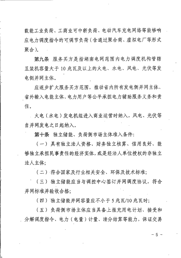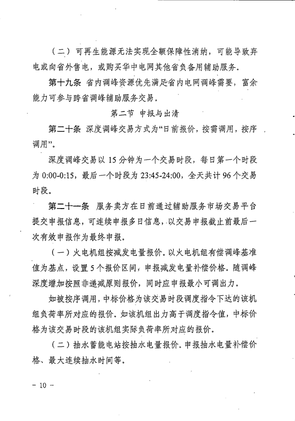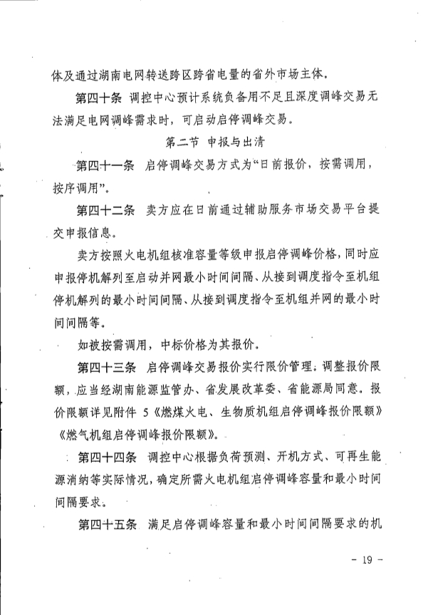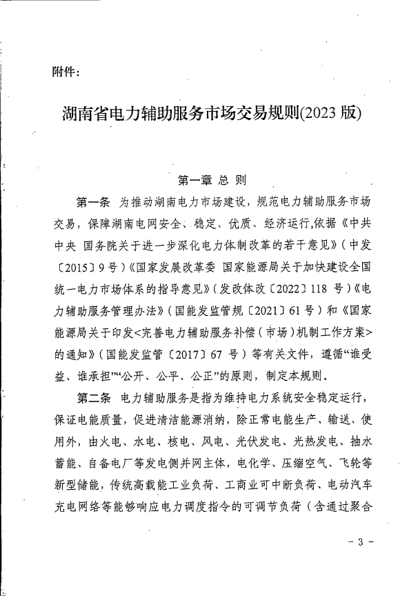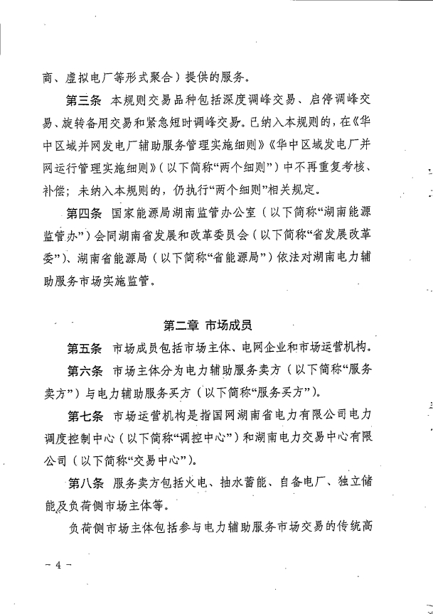 5月(yue)22日,《湖南省應(ying)當(dang)與調控中心簽(qian)訂并網(wang)(wang)(wang)調度協議,符合(he)(he)并網(wang)(wang)(wang)標準并驗收合(he)(he)格;獨立儲能并網(wang)(wang)(wang)容量(liang)應(ying)不小于5兆瓦/10兆瓦時。 負荷側市(shi)場主體中(zhong)直接參與用戶可調節容(rong)量不小于(yu)(yu)1兆瓦,連續(xu)響應時(shi)間不低(di)于(yu)(yu)1小時(shi);聚合商可調節容(rong)量不小于(yu)(yu)10兆瓦,連續(xu)響應時(shi)間不低(di)于(yu)(yu)1小時(shi)。 儲(chu)能電(dian)(dian)站(zhan)按充電(dian)(dian)電(dian)(dian)量報價(jia).申報次(ci)日(ri)低谷、腰荷時段可提(ti)供調峰(feng)輔助服務的(de)能力,調節速率,最大可連(lian)續充電(dian)(dian)時間,調峰(feng)輔助服務價(jia)格等。 1.如被按(an)序(xu)調用,儲能(neng)(neng)電(dian)站根據日前市場出清結果確定儲能(neng)(neng)電(dian)站的(de)充電(dian)計劃,按(an)照日內調峰需(xu)求實時調整儲能(neng)(neng)電(dian)站充電(dian)功率,中標(biao)價(jia)格(ge)為其報(bao)價(jia). 2.如被優先調用,儲能(neng)電站按日前計劃充電,其(qi)申報價(jia)(jia)格(ge)參與整個市(shi)場(chang)排序。深度調峰交易(yi)(yi)時段(duan),若(ruo)其(qi)申報價(jia)(jia)格(ge)低(di)于市(shi)場(chang)實際(ji)調用最(zui)高價(jia)(jia),中(zhong)標價(jia)(jia)格(ge)為(wei)(wei)其(qi)申報價(jia)(jia)格(ge);若(ruo)其(qi)申報價(jia)(jia)格(ge)高于市(shi)場(chang)實際(ji)調用最(zui)高價(jia)(jia),中(zhong)標價(jia)(jia)格(ge)為(wei)(wei)同時段(duan)市(shi)場(chang)最(zui)低(di)價(jia)(jia);若(ruo)深度調峰交易(yi)(yi)實際(ji)未開啟,中(zhong)標價(jia)(jia)格(ge)為(wei)(wei)0。 原文如下: 國(guo)家能源局湖南監管辦公室關于《湖南省電(dian)力輔助服務市場交易規則(2023版)》的(de)政策解讀 近日,國家(jia)能(neng)源局(ju)湖(hu)(hu)南(nan)監(jian)管辦公室聯合湖(hu)(hu)南(nan)省發展和改革(ge)委員會、湖(hu)(hu)南(nan)省能(neng)源局(ju)印發了《湖(hu)(hu)南(nan)省電力輔(fu)助服務市場交易規則(ze)(2023版(ban))》(以下簡稱(cheng)《交易規則(ze)》)。 國家能(neng)源局湖(hu)(hu)南監管辦公室于(yu)2020年印發(fa)了《湖(hu)(hu)南省電力輔助服(fu)務(wu)(wu)市場交(jiao)易規則(試行)》(湘(xiang)監能(neng)市場﹝2020﹞81號),啟(qi)動了湖(hu)(hu)南輔助服(fu)務(wu)(wu)市場,2020至2022年市場整體運行情況良(liang)好,成效顯著。 在試行版規則印(yin)發(fa)后,2021年11月,中央全面深化改(gai)革委員會第二十(shi)二次(ci)會議指(zhi)出,要健全多層(ceng)次(ci)統一(yi)電(dian)力(li)(li)市(shi)(shi)場體系,推(tui)進(jin)適應能(neng)(neng)源結構轉型的(de)(de)電(dian)力(li)(li)市(shi)(shi)場機制建設,推(tui)動形成多元競(jing)爭的(de)(de)電(dian)力(li)(li)市(shi)(shi)場格(ge)局,發(fa)揮電(dian)力(li)(li)市(shi)(shi)場對能(neng)(neng)源清潔低(di)碳轉型的(de)(de)支(zhi)撐作(zuo)(zuo)用。2021年12月,國(guo)家能(neng)(neng)源局印(yin)發(fa)《電(dian)力(li)(li)輔助(zhu)服(fu)務管理辦(ban)法》(國(guo)能(neng)(neng)發(fa)監管規〔2021〕61號),提出了(le)“四新(xin)”的(de)(de)工作(zuo)(zuo)思路(lu)。為貫徹落實國(guo)家電(dian)力(li)(li)市(shi)(shi)場改(gai)革要求,提升湖(hu)南電(dian)力(li)(li)輔助(zhu)服(fu)務市(shi)(shi)場交易質(zhi)效,保障湖(hu)南電(dian)網安(an)全、穩定、優質(zhi)、經濟(ji)運行,國(guo)家能(neng)(neng)源局湖(hu)南監管辦(ban)公室會同湖(hu)南省發(fa)展(zhan)和改(gai)革委員會、湖(hu)南省能(neng)(neng)源局經認真研究和廣泛(fan)征求意見,圍(wei)繞參(can)與主體范圍(wei)、補償費用分攤機制等(deng)內容(rong),對《交易規則》進(jin)行了(le)修訂。 《交易規則(ze)》主要在以下幾方面進行了完善。 一是融合《負(fu)荷(he)側(ce)可調(diao)(diao)節(jie)資源(yuan)參與(yu)(yu)湖(hu)南(nan)(nan)電力輔(fu)(fu)助服務市(shi)場規(gui)則(試行)》等新增(zeng)內容。2022年5月29日(ri),湖(hu)南(nan)(nan)啟(qi)動負(fu)荷(he)側(ce)可調(diao)(diao)節(jie)資源(yuan)參與(yu)(yu)湖(hu)南(nan)(nan)電力輔(fu)(fu)助服務市(shi)場試運(yun)行,實現了負(fu)荷(he)側(ce)可調(diao)(diao)節(jie)資源(yuan)參與(yu)(yu)電網調(diao)(diao)峰的新突破。本次規(gui)則修訂將《負(fu)荷(he)側(ce)可調(diao)(diao)節(jie)資源(yuan)參與(yu)(yu)湖(hu)南(nan)(nan)電力輔(fu)(fu)助服務市(shi)場規(gui)則(試行)》相關(guan)條款進行了整合。 二是擴大電(dian)力(li)輔助服務買方(fang)、賣方(fang)范圍。將全(quan)省裝機(ji)容(rong)量10兆瓦及以上滿(man)足量測(計量)條件的中(zhong)小發電(dian)主體納入電(dian)力(li)輔助服務買方(fang)。新增調(diao)峰(feng)(feng)交(jiao)(jiao)易賣方(fang),按(an)照《華(hua)中(zhong)區域并網(wang)發電(dian)廠(chang)輔助服務管(guan)理實施細則(ze)》,結合省內燃氣機(ji)組項目(mu)建設時序,新增燃氣機(ji)組作為啟(qi)停調(diao)峰(feng)(feng)交(jiao)(jiao)易賣方(fang)。同時從政(zheng)策引導方(fang)面(mian)考慮(lv),將自備(bei)(bei)電(dian)廠(chang)納入調(diao)峰(feng)(feng)輔助服務賣方(fang)范圍,充分挖掘自備(bei)(bei)電(dian)廠(chang)調(diao)峰(feng)(feng)潛力(li)。 三是銜(xian)接(jie)區(qu)域電(dian)力輔(fu)助(zhu)服(fu)務(wu)(wu)市(shi)場(chang)。根(gen)據華(hua)(hua)中(zhong)能源(yuan)監管局2022年9月(yue)30日發布的《華(hua)(hua)中(zhong)省(sheng)間電(dian)力調峰(feng)(feng)及(ji)備用輔(fu)助(zhu)服(fu)務(wu)(wu)市(shi)場(chang)運營規則(ze)》,為有效(xiao)銜(xian)接(jie)華(hua)(hua)中(zhong)區(qu)域輔(fu)助(z