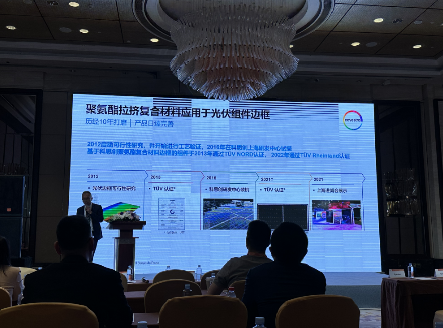蓋錫咨詢-會議筆記: 分布式光伏與光電建筑一體化(BIPV) 科思(si)創(chuang)(上海)投資有限公司聚(ju)氨(an)酯(zhi)復合材料商務總監 郭松強先生 會議主題:創新聚氨酯復合材料邊框, 助力光伏降本增效 1:聚氨酯及聚氨酯復合材料 聚(ju)氨酯(zhi)復(fu)合(he)材料(liao)已經在各(ge)行各(ge)業取得了廣泛應用(yong)。拜多回聚(ju)氨酯(zhi)拉擠復(fu)合(he)材料(liao) 是由20%的拜多。高(gao)性能(neng)專利(li)聚氨酯樹脂和80%玻璃纖維,經由拉擠工(gong)藝(yi)生產的高(gao)強度(du)工(gong)程復(fu)合(he)材料。 2:聚氨酯復合材料邊框 a發展(zhan)歷(li)程 歷經10年打磨產品日臻完善(shan)2012啟動(dong)可行性研究, 并(bing)開始進行工(gong)藝驗證(zheng),2016年在科(ke)思創(chuang)上海研發中(zhong)心試裝。基于科(ke)思創(chuang)聚(ju)氨酯復合(he)材料邊框的組件于2013年通過(guo)TUV NORD認證(zheng),2022年通過(guo)過(guo)TUV Rheinland認證(zheng)。 b性(xing)能(neng)優勢(shi) 聚氨酯拉擠復合材料具備優異的耐化學腐(fu)蝕性能 耐酸(suan)、耐堿、 耐鹽性能遠(yuan)遠(yuan)優于鋁合金。 聚氨(an)(an)酯拉擠復(fu)合材(cai)料線膨脹系(xi)數與玻璃相當(dang)而且(qie)在低溫條件下仍能保(bao)持(chi)良好的(de)韌性(xing)(xing)和(he)抗沖(chong)擊性(xing)(xing)能。聚氨(an)(an)酯拉擠復(fu)合材(cai)料邊(bian)框的(de)綜(zong)合成本(ben)低于鋁(lv)合金電(dian)解鋁(lv)價格高(gao)企(qi),聚氨(an)(an)酯復(fu)合材(cai)料在特殊應用場(chang)景下成本(ben)優勢更加明顯。