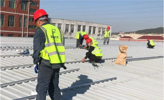 6月27日,新能源公司景德鎮5MW工商業分布式光伏項目正式開工。 圖為工人正在安裝夾具檁條 該項目位于景德鎮市高新技術開發區,利用江西昌盛宇航科技有限公司、江西駝峰陶瓷集團有限公司、景德鎮市程遠汽車專用彈簧有限公司等共計12棟廠房屋頂建設分布式光伏項目。項目規劃裝機容量共計5MW,均采用“自發自用,余電上網”的發電模式。預計投產后,年均發電量約491.78萬千瓦時,每年可節約標煤約1501噸,減少二氧化碳排放量3902噸、二氧化硫148噸、氮氧化物64噸,可有效優化當地能源結構、提供清潔高效電能。