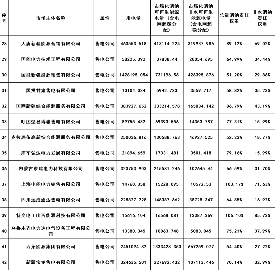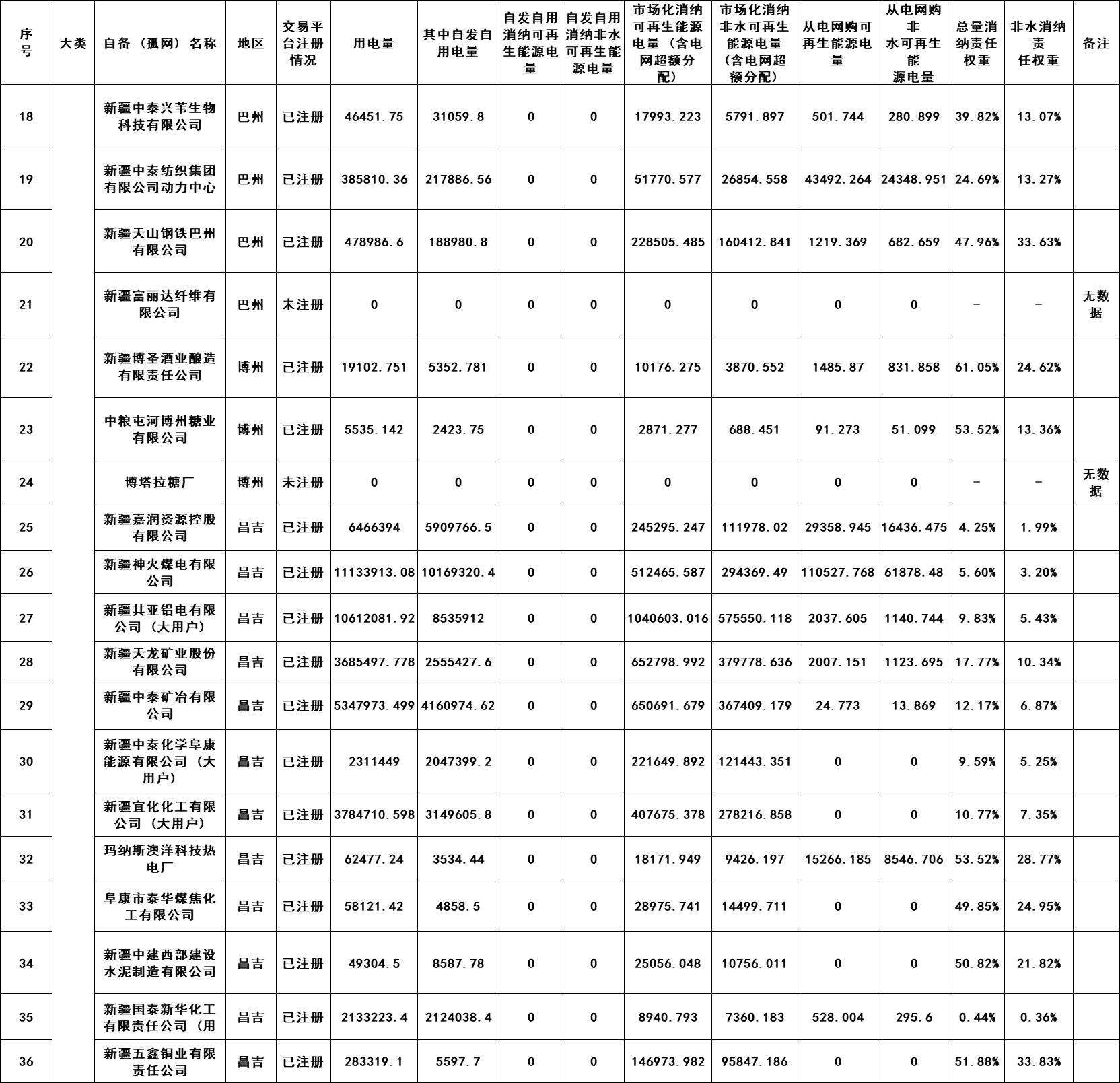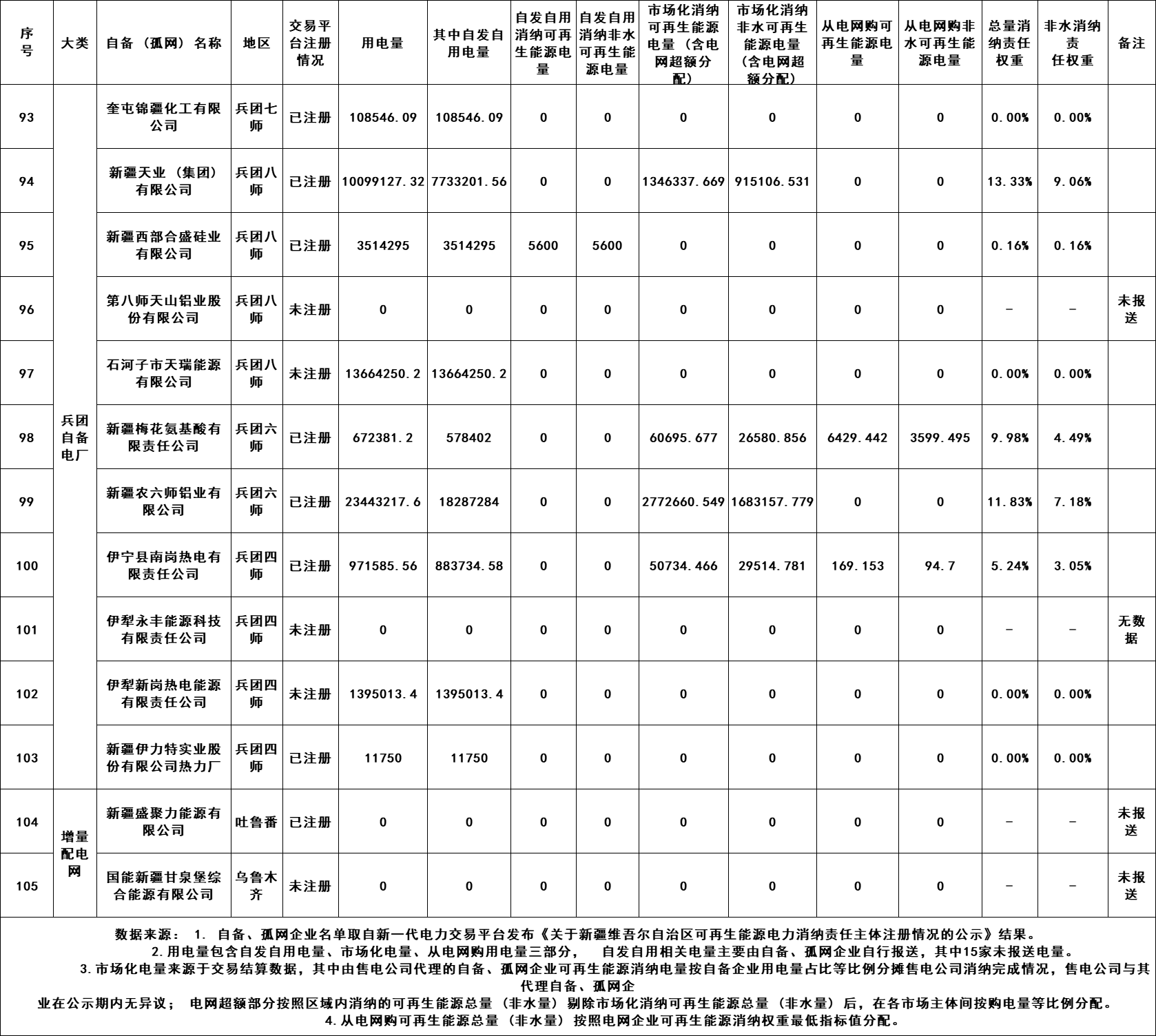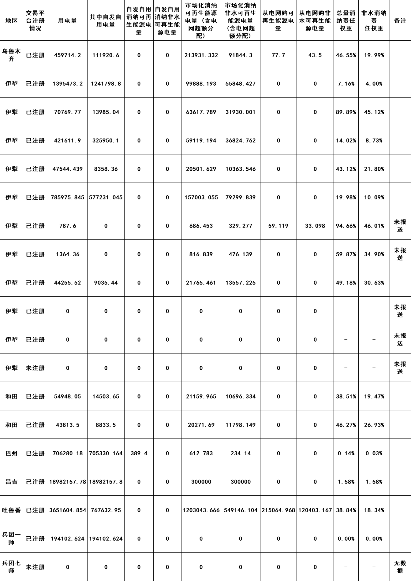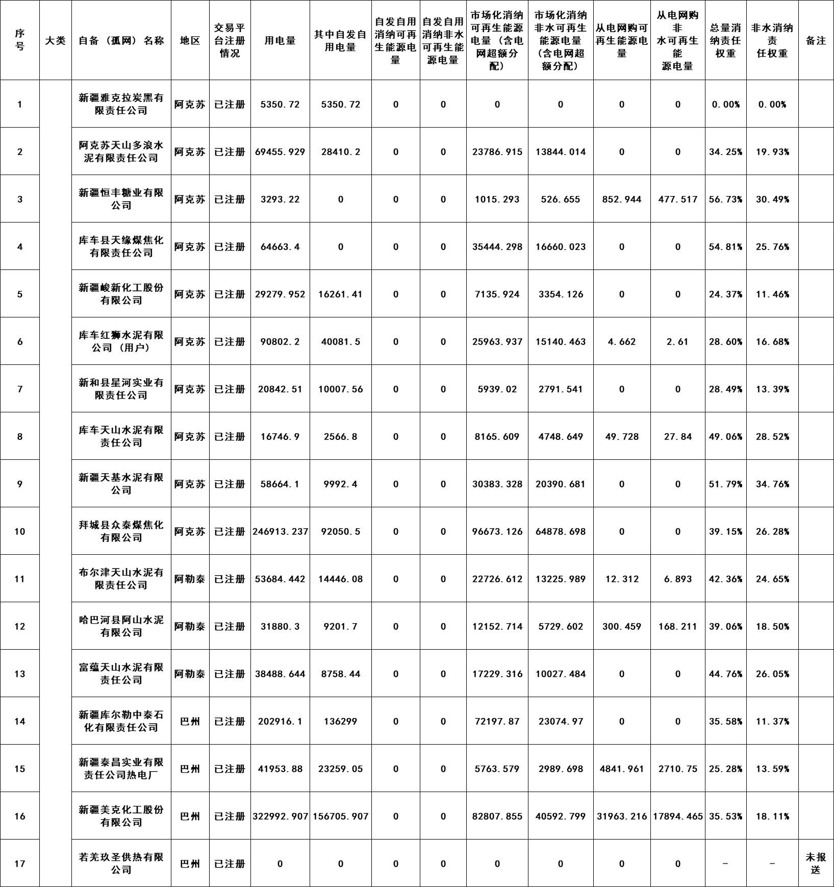 6月27日,新疆電力交易中心發布關于2022年可再生能源消納配額交易前數據公布的通知,詳情如下: 原文如下: 關于2022年可再生能源消納配額交易前數據公布的通知 根據《國家發展改革委國家能源局關于建立健全可再生能源電力消納保障機制的通知》(發改能源〔2019〕807號)、《關于2022年可再生能源電力消納責任權重及有關事項的通知》(新發改能源〔2022〕587號)文件要求,我公司開展了新疆范圍內可再生能源消納配額數據收集、統計及公示工作,根據公示期間梳理的有關反饋情況,已將完成情況報自治區發展改革委、兵團發展改革委及國家能源局新疆監管辦。在2022年可再生能源消納配額交易前,我中心將2022年可再生能源消納配額數據再次予以公布(詳見附件1、附件2),并將有關事項通知如下。 根據《關于2022年可再生能源電力消納責任權重及有關事項的通知》(新發改能源〔2022〕587號)文件,2022年可再生能源消納配額交易限額按照總量25.9%、非水14.5%對考核責任主體進行控制。依據文件中“對孤網運行企業、自備電廠企業及其他能效水平低、污染大的大工業用電企業,2022年非水電可再生能源消納責任權重在最低值14.5%、激勵值15.9%水平上,均上浮5個百分點”。需各考核責任主體核查是否屬于其他能效水平低、污染大的大工業用電企業,售電公司需核查2022年代理零售用戶是否屬于上述范圍,若確實存在符合上述范圍的企業,請于7月6日12:00點前向我中心反饋具體名單,反饋郵箱地址xjdljyfk@163.com,對應用戶的非水電可再生能源消納責任權重需依照文件上浮5個百分點,逾期未反饋名單本次交易限額不考慮。 業務人員聯系電話: 0991-2926342、0991-2911451 _ueditor_page_break_tag_ 附件2:2022年自備孤網企業可再生能源消納數據統計情況 單位:兆瓦時 上一篇: 愛旭股份終止瑞交所GDR上市