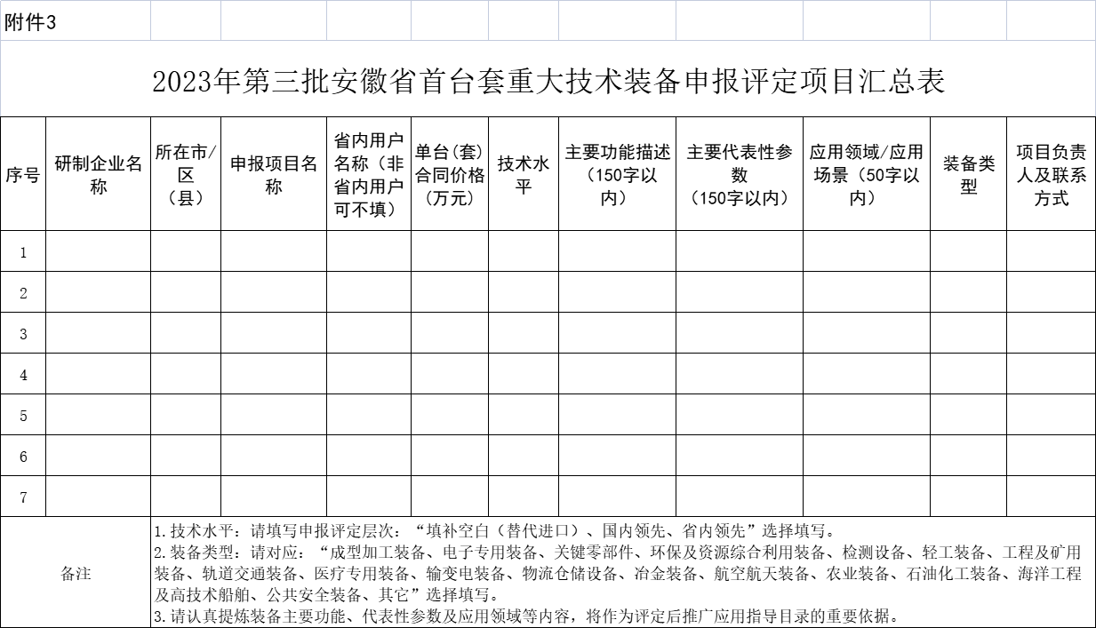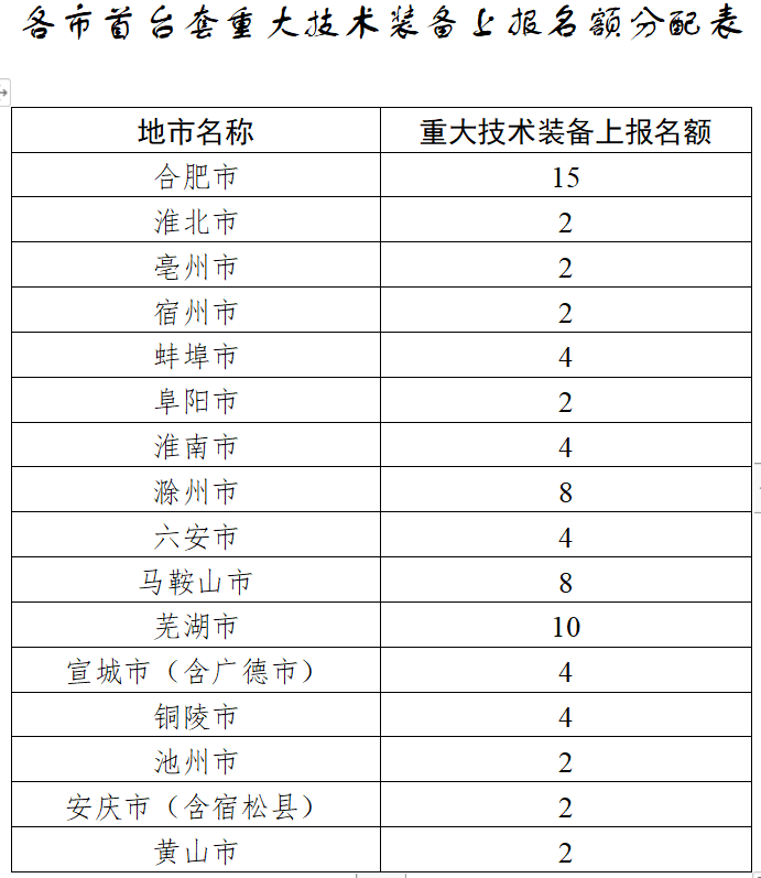 7月12日,安徽省經信廳發布關于開展2023年度第三批首臺套重大技術裝備申報評定工作的通知。 清單包含集中儲能模擬測試實驗平臺、電池容量檢測裝備、新能源電池/電能計量中心倉儲系統、高安全長壽命儲能系統、電力級磁懸浮儲能飛輪系統、全釩液流電池儲能系統等儲能技術裝備。 詳情如下: 關于開展2023年度第三批首臺套重大技術裝備申報評定工作的通知 各市經信局: 為貫徹落實《支持首臺套重大技術裝備首批次新材料首版次軟件發展若干政策》(皖政秘〔2020〕52號),根據《安徽省首臺套重大技術裝備首批次新材料首版次軟件評定管理暫行辦法》(皖經信裝備函〔2020〕236號)及其修訂通知(皖經信裝備函〔2022〕142號)(以下簡稱《辦法》),決定開展2023年度第三批省首臺套重大技術裝備申報評定工作,現將有關事宜通知如下: 一、項目申報重點 結合首臺套重大技術裝備重點項目庫入庫項目,突出重大技術裝備的兩化深度融合,節能、環保效果突出,經濟效益和社會效益顯著。申報重點領域參照《安徽省首臺套重大技術裝備研制需求清單(2023年)》(附件1)。 二、項目申報條件和項目申報材料要求 項目申報條件和申報材料應符合《辦法》的相關規定,并在2022年1月1日以來經用戶初次使用的成套技術裝備、單臺設備或關鍵部件,初次使用時間以合同雙方約定的交貨時間和用戶驗收報告簽訂時間為準,不得重復申報。 三、名額分配 首臺套重大技術裝備限制申報數量。各市經濟和信息化主管部門要嚴格篩選、優中選優,遴選符合申報條件、具有國內先進水平以上的裝備產品,上報數量不得超過分配的申報名額(附件2)。 四、申報程序及要求 1. 申報單位對照條件和要求,向所在縣(區)經濟和信息化主管部門、市經信局提出申請,并出具對材料真實性負責的聲明(簽字蓋章)。 2. 請各市、縣經信部門對申報的項目進行現場核查,縣(區)級要求100%核查,市級要求50%核查;對申報的項目材料認真初審,包括申請報告書、銷售合同、查新報告等材料,以及訂制類裝備產品的創新性等材料。現場審核和材料初審通過后,由各市經信局正式行文(一式兩份,加蓋公章)上報省經濟和信息化廳,并附《2023年第三批安徽省首臺套重大技術裝備申報評定項目匯總表》(附件3),同時每個裝備產品提供不多于5張JPG或GIF格式的彩色電子照片,每張照片為800*600像素,大小在300KB以內。 3. 首臺套評定項目采取網上申報方式。請在省經濟和信息化廳網站查詢和下載有關文件,并登錄省經濟和信息化廳網站(//jx.ah.gov.cn/)網上辦事服務平臺進行申報。網上申報應做到數據準確、資料齊全、掃描文件清晰,省內示范應用單位名稱要與產品銷售合同一致。申報材料及相關附件對應申報系統要求上傳(網上申報過程中遇到的具體技術問題可致電省經濟和信息化廳信息中心咨詢,聯系電話:0551-62871939、62871705)。 4. 請及時組織符合條件的企業于2023年7月31日前報送有關申報材料,逾期不予受理。 附件:1. 安徽省首臺套重大技術裝備研制需求清單(2023年) 2. 各市限報數額分配表 3. 2023年第三批安徽省首臺套重大技術裝備申報評定項目匯總表 安徽省經濟和信息化廳 2023年7月10日 附件1 首臺套重大技術裝備研制需求清單 (2023年版) 一、成型加工裝備 高動態特性五軸加工中心、六軸鉆/銑/削中心、高精度臥式數控機、數控龍門加工中心、臥式自動線軌校直機、臥式五面體銑鉆攻牙加工中心、智能溫控鑄鐵機、智能精密玻璃加工機械、金屬制粉設備、扁銅線電機制造成套裝備、消失模膠合機、外熱式活化轉爐、銅合金鑄造結晶器、金屬3D打印裝備、3D打印激光燒結系統、砂型噴墨3D打印機、水平無箱鑄造線、數控折彎機、數控脹管機、數控液壓彎管機、石墨負極氣氛輥道爐、新能源電池極板分體框架式專用液壓機、含碳硬質涂層裝備、汽車側圍成型模具、納米覆膜設備、鋁合金差壓鑄造機、六輥可逆高精度銅箔軋機、金屬超硬質鍍膜機、活塞七工位裝環機、高壓伺服注塑機、高速噴墨砂型打印機、高強度鋼熱成型沖壓生產線、高端軸承智能加工生產線、電梯上坎輥軋及自動拉鉚線、電橋總成系統智能裝測生產線、等離子體拋光裝備、等離子輔助卷對卷CVD設備、車身/曲面精密成形模具、超薄玻璃激光打孔裝備、薄板縱剪機、U型玻璃專用成型設備、PTFE微孔拉膜設備、PTC自動化生產線、MLCC氣氛推板爐、EPB自動裝配線、大型串聯閉式四點沖壓生產線、大噸位合金熔煉爐、高負載智能鋁合金擠壓鑄鍛機、5G陶瓷波導濾波器表面金屬化成套設備、3D熱彎成型機、板件壓形液壓機、數控全液壓四輥卷圓機、高速油膜軸承吐絲機、智能冶煉系統、大棒材三輥軋制成套導衛裝置、鋼絲鎧裝機、石墨粉生產線、飛秒激光鉆孔裝備、動力電池電芯自動切疊設備、外熱式炭活化一體轉爐、回轉軸承整體淬火設備、45000KN軸向閉式輾軋機、高世代浮法玻璃基板超精密磨拋裝備、全自動粉末成型機、三代輪轂球軸承全自動磨超線、移動機架式矯直機、等離子坡口切割生產線、數控立式車床、脈沖式電鍍設備、超大型密封制品自動成型機、鋰電池材料正負極智能循環線、倒立式球籠銑復合專機、可視化全自動表面貼裝整線、鋰電池硅碳負極材料氣氛保護輥道爐、多工位復合共擠數控裝備、車側圍/底盤生產線、泄壓組