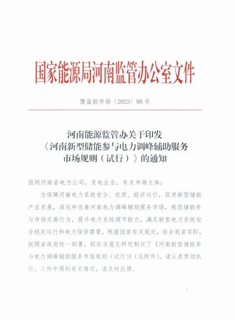 2MW/2h儲能可參與!河南新型儲能參與電力調峰輔助服務市場規則(試行)印發2023-07-19 13:37瀏覽數:213次