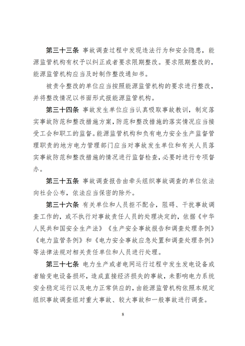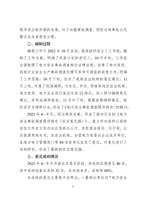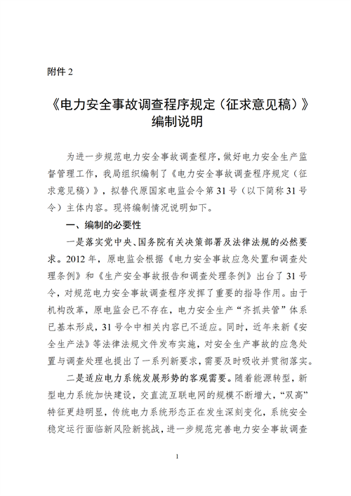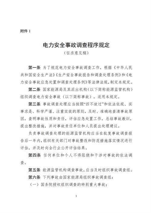 7月20日,國家能源局綜合司發布關于公開征求《電力安全事故調查程序規定(征求意見稿)》意見的通知。 原文見下: 國家能源局綜合司關于公開征求《電力安全事故調查程序規定(征求意見稿)》意見的通知 為深入落實《電力安全事故應急處置和調查處理條例》(國務院令第599號)有關要求,適應電力安全監督管理體制機制變革,進一步規范電力安全事故調查工作,國家能源局組織編制了《電力安全事故調查程序規定(征求意見稿)》,現向社會公開征求意見。 此次征求意見時間為2023年7月21日至2023年8月21日。意見建議請傳真至010-81929605,或通過電子郵件發至yingji@nea.gov.cn。 感謝您的參與和支持! 附件: 1.電力安全事故調查程序規定(征求意見稿) 2.《電力安全事故調查程序規定(征求意見稿)》編制說明 國家能源局綜合司 2023年7月18日