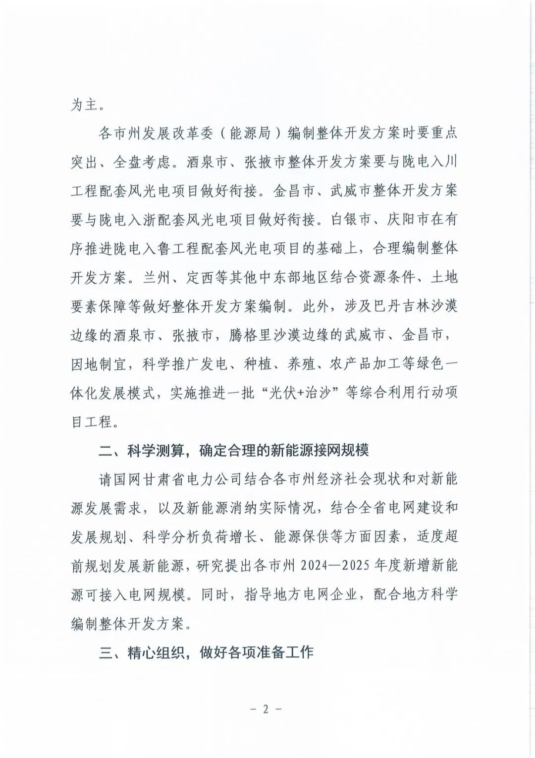 近日甘肅省發展和改革委員會發布了《關于報送2024-2025年新能源整體開發方案有關事項的通知》。 《通(tong)知》指(zhi)出(chu),請各市州發(fa)(fa)展(zhan)改革委(能源(yuan)局(ju))會(hui)同當(dang)地電(dian)網企業統籌規劃,立足土地、風(feng)(feng)光(guang)等資源(yuan)條件,在2021年(nian)(nian)三年(nian)(nian)整(zheng)體(ti)(ti)開(kai)發(fa)(fa)方(fang)(fang)案(an)(an)的基礎上,有序(xu)銜接(jie)既(ji)(ji)有新(xin)能源(yuan)項目(mu)建設指(zhi)標(biao),結合(he)電(dian)力負荷增長(chang)、電(dian)網接(jie)入消納條件,從(cong)服務當(dang)地經(jing)濟社會(hui)發(fa)(fa)展(zhan)需求出(chu)發(fa)(fa),認(ren)真編制2024-2025年(nian)(nian)新(xin)能源(yuan)整(zheng)體(ti)(ti)開(kai)發(fa)(fa)方(fang)(fang)案(an)(an)(以(yi)(yi)下簡稱“整(zheng)體(ti)(ti)開(kai)發(fa)(fa)方(fang)(fang)案(an)(an)”),按(an)照(zhao)年(nian)(nian)度(du)明(ming)確提出(chu)目(mu)標(biao)任務、建設布局(ju)、投產時(shi)序(xu)、消納方(fang)(fang)案(an)(an)和保障措施,其(qi)中2024年(nian)(nian)度(du)以(yi)(yi)既(ji)(ji)有風(feng)(feng)光(guang)電(dian)指(zhi)標(biao)項目(mu)為主(zhu),考慮一定的新(xin)增項目(mu),2025年(nian)(nian)度(du)以(yi)(yi)新(xin)增風(feng)(feng)光(guang)電(dian)指(zhi)標(biao)為主(zhu)。 各市(shi)(shi)(shi)(shi)州發(fa)(fa)展改革委(能(neng)源(yuan)局)編制(zhi)整體開發(fa)(fa)方(fang)案時要(yao)(yao)重點突出、全盤考慮。酒泉(quan)市(shi)(shi)(shi)(shi)、張(zhang)掖市(shi)(shi)(shi)(shi)整體開發(fa)(fa)方(fang)案要(yao)(yao)與(yu)隴(long)電(dian)入(ru)川工(gong)(gong)程配套(tao)風(feng)光電(dian)項目做(zuo)(zuo)好(hao)銜接。金昌市(shi)(shi)(shi)(shi)、武(wu)威市(shi)(shi)(shi)(shi)整體開發(fa)(fa)方(fang)案要(yao)(yao)與(yu)隴(long)電(dian)入(ru)浙配套(tao)風(feng)光電(dian)項目做(zuo)(zuo)好(hao)銜接。白銀市(shi)(shi)(shi)(shi)、慶(qing)陽市(shi)(shi)(shi)(shi)在(zai)有序(xu)推進隴(long)電(dian)入(ru)魯工(gong)(gong)程配套(tao)風(feng)光電(dian)項目的基礎上,合理編制(zhi)整體開發(fa)(fa)方(fang)案。蘭州、定西等(deng)(deng)其他中東(dong)部地區結合資源(yuan)條(tiao)件、土地要(yao)(yao)素保障等(deng)(deng)做(zuo)(zuo)好(hao)整體開發(fa)(fa)方(fang)案編制(zhi)。此外(wai),涉及巴丹(dan)吉林沙漠(mo)邊(bian)(bian)緣的酒泉(quan)市(shi)(shi)(shi)(shi)、張(zhang)掖市(shi)(shi)(shi)(shi),騰格里沙漠(mo)邊(bian)(bian)緣的武(wu)威市(shi)(shi)(shi)(shi)、金昌市(shi)(shi)(shi)(shi),因地制(zhi)宜(yi),科(ke)學推廣發(fa)(fa)電(dian)、種(zhong)植、養殖、農產品加工(gong)(gong)等(deng)(deng)綠色一體化發(fa)(fa)展模式,實(shi)施推進一批“光伏+治沙”等(deng)(deng)綜合利用行動項目工(gong)(gong)程。 (原文如下)