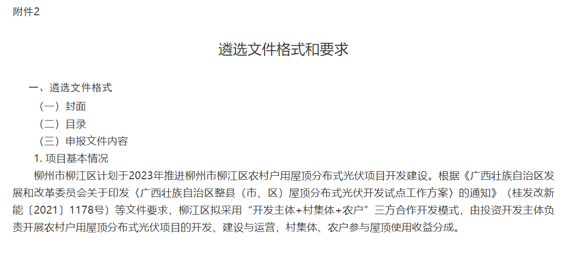 租金4.8元/平方米起、工作經費200元/戶 廣西柳江區農村戶用屋頂光伏投資開發主體遴選公告2023-08-10 20:43瀏覽數:182次