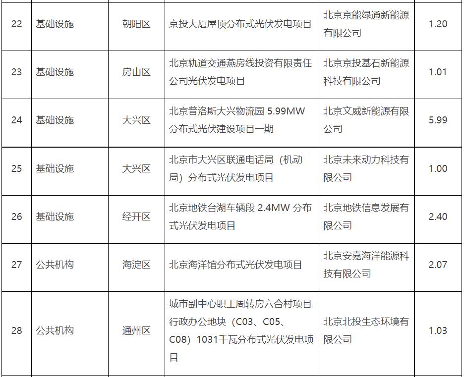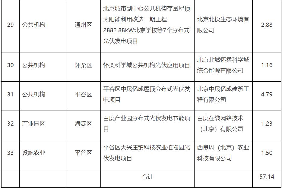 8月14日,北京市發改委公示了第一批擬納入市政府固定資產投資支持光伏發電項目清單,共包含33個分布式光伏項目,總裝機規模57.14MW。公示時間為2023年8月14日—2023年8月18日(5個工作日)。