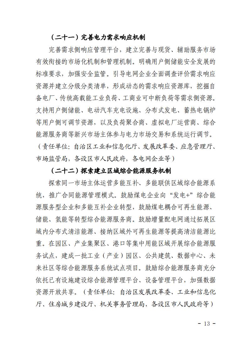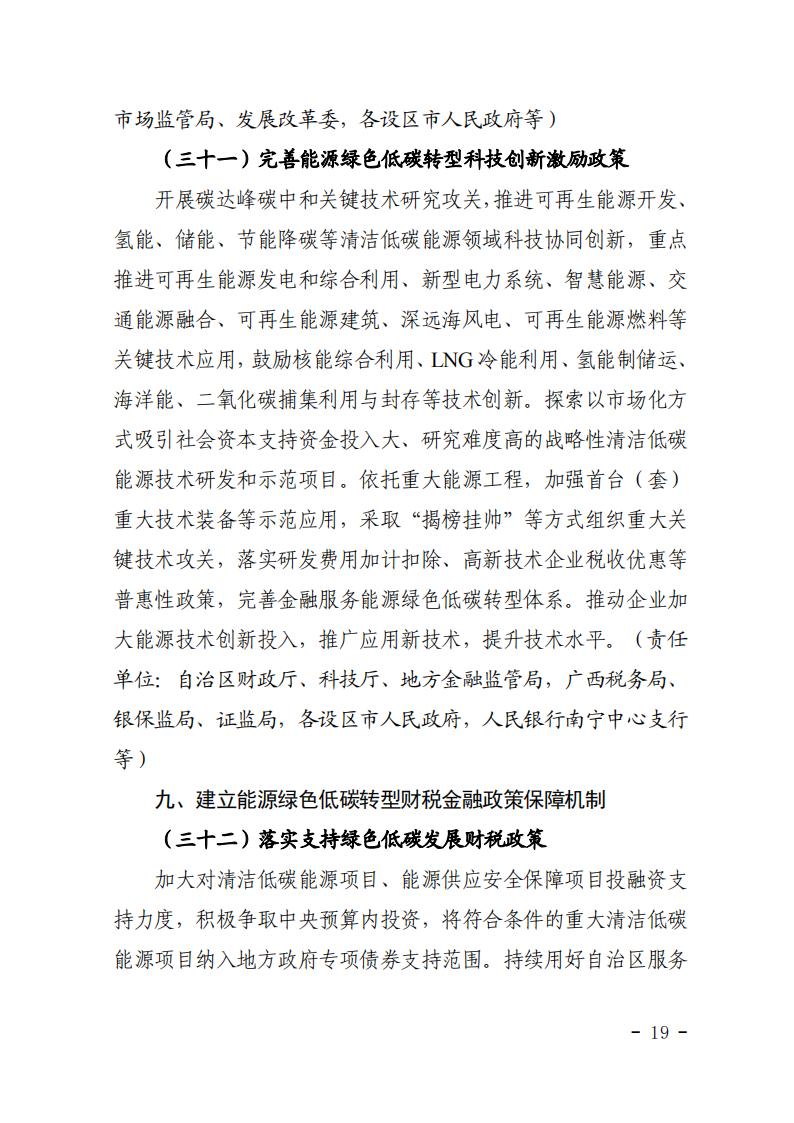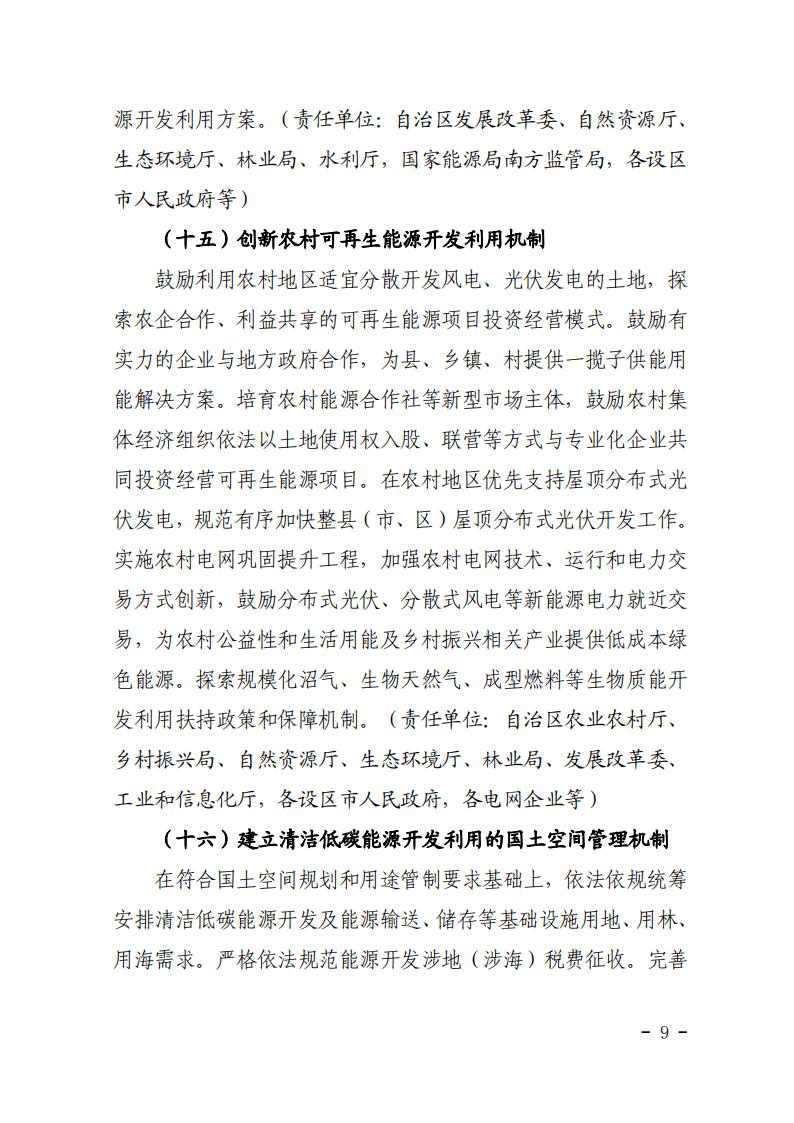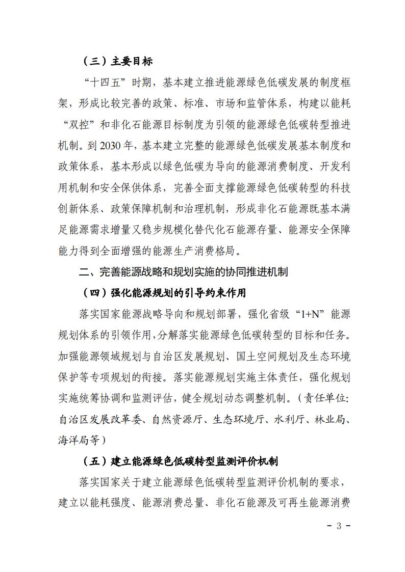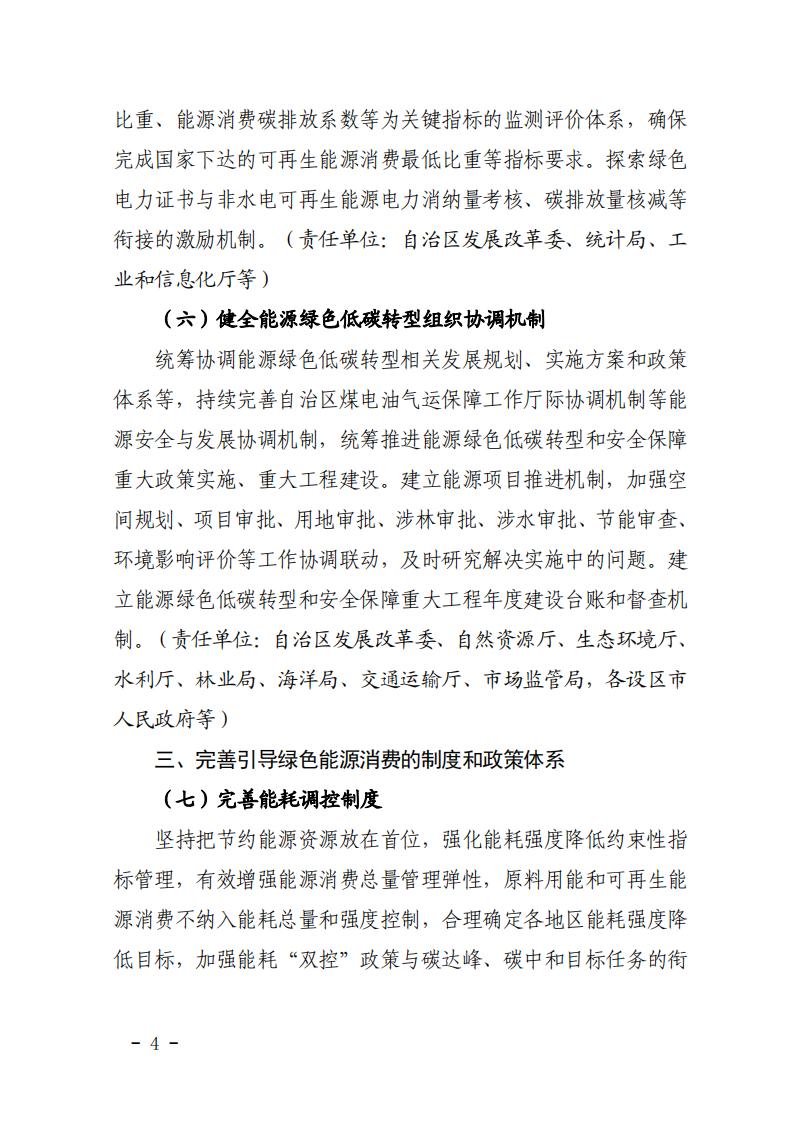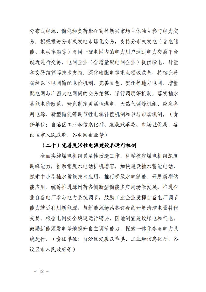 9月1日,廣西壯族自治區(qu)發(fa)展和(he)改革委(wei)員會發(fa)布關于印發(fa)《完善廣西能(neng)源(yuan)綠(lv)色低(di)碳轉(zhuan)型(xing)體制機(ji)制和(he)政策措施的(de)實施方案》(以(yi)下簡稱《方案》)的(de)通知(zhi)。 《方案(an)》指出,探索新能源(yuan)項目拉專(zhuan)線供電試點。鼓勵發展(zhan)源(yuan)網(wang)(wang)荷儲一體化等工(gong)業(ye)綠(lv)色微電網(wang)(wang),鼓勵產業園區或(huo)企業通(tong)過(guo)創新(xin)電力(li)輸(shu)送及運行方式實現可再生能源電力(li)項(xiang)目就近供電,鼓勵購買綠色(se)(se)電力(li),在(zai)新(xin)建自(zi)治區級及以(yi)上工業園區和具備條件的其它(ta)園區開展高比例(li)綠色(se)(se)電力(li)消費示范(fan)(fan)。在(zai)電網(wang)保供能力(li)許可的范(fan)(fan)圍(wei)內,優(you)先保障(zhang)消費綠色(se)(se)電力(li)比例(li)較高的用戶用電需求。 提高建(jian)(jian)(jian)筑(zhu)(zhu)終端電氣化水(shui)平,加快(kuai)建(jian)(jian)(jian)設(she)“光儲直柔”建(jian)(jian)(jian)筑(zhu)(zhu)、 微電網智(zhi)能(neng)建(jian)(jian)(jian)筑(zhu)(zhu)等。積極(ji)推廣使用超低能(neng)耗建(jian)(jian)(jian)筑(zhu)(zhu)和綠(lv)(lv)色(se)(se)建(jian)(jian)(jian)材(cai),推行低碳(tan)產(chan)(chan)品(pin)(pin)、綠(lv)(lv)色(se)(se)產(chan)(chan)品(pin)(pin)、綠(lv)(lv)色(se)(se)建(jian)(jian)(jian)材(cai)產(chan)(chan)品(pin)(pin)等相關(guan)認(ren)證(zheng),在政府采購(gou) 中(zhong)優(you)先采購(gou)列入品(pin)(pin)目(mu)清單(dan)并獲得綠(lv)(lv)色(se)(se)低碳(tan)產(chan)(chan)品(pin)(pin)認(ren)證(zheng)的相關(guan)產(chan)(chan)品(pin)(pin)。 開(kai)展(zhan)多(duo)能(neng)(neng)融合(he)交通供能(neng)(neng)場站建設, 推進新能(neng)(neng)源汽車(che)與(yu)電網能(neng)(neng)量互動試(shi)點,推動車(che)樁、船(chuan)岸(an)協同發展(zhan), 打造油氣氫電多(duo)元供能(neng)(neng)的綜合(he)供能(neng)(neng)服(fu)務(wu)站網絡(luo)。 原文如下: 廣西(xi)壯族自治區發展(zhan)和(he)改革委員會(hui)關于印發《完(wan)善廣西(xi)能源綠(lv)色低(di)碳(tan)轉(zhuan)型體制(zhi)機制(zhi)和(he)政(zheng)策措施(shi)的(de)實施(shi)方案》的(de)通知(zhi) 各(ge)(ge)設(she)區市(shi)人民政(zheng)府(fu),自治區人民政(zheng)府(fu)各(ge)(ge)組成(cheng)部門、各(ge)(ge)直屬機(ji)構,各(ge)(ge)有關單位,各(ge)(ge)電網企業: 經(jing)自治區人民政府同意,現(xian)將《完善廣(guang)西能(neng)源綠色低(di)碳轉型體制(zhi)機制(zhi)和政策措(cuo)施(shi)的實(shi)施(shi)方(fang)案》印發給你們(men),請認真組織實(shi)施(shi)。 廣西(xi)壯族(zu)自治區發展和改革委(wei)員會 2023年8月9日