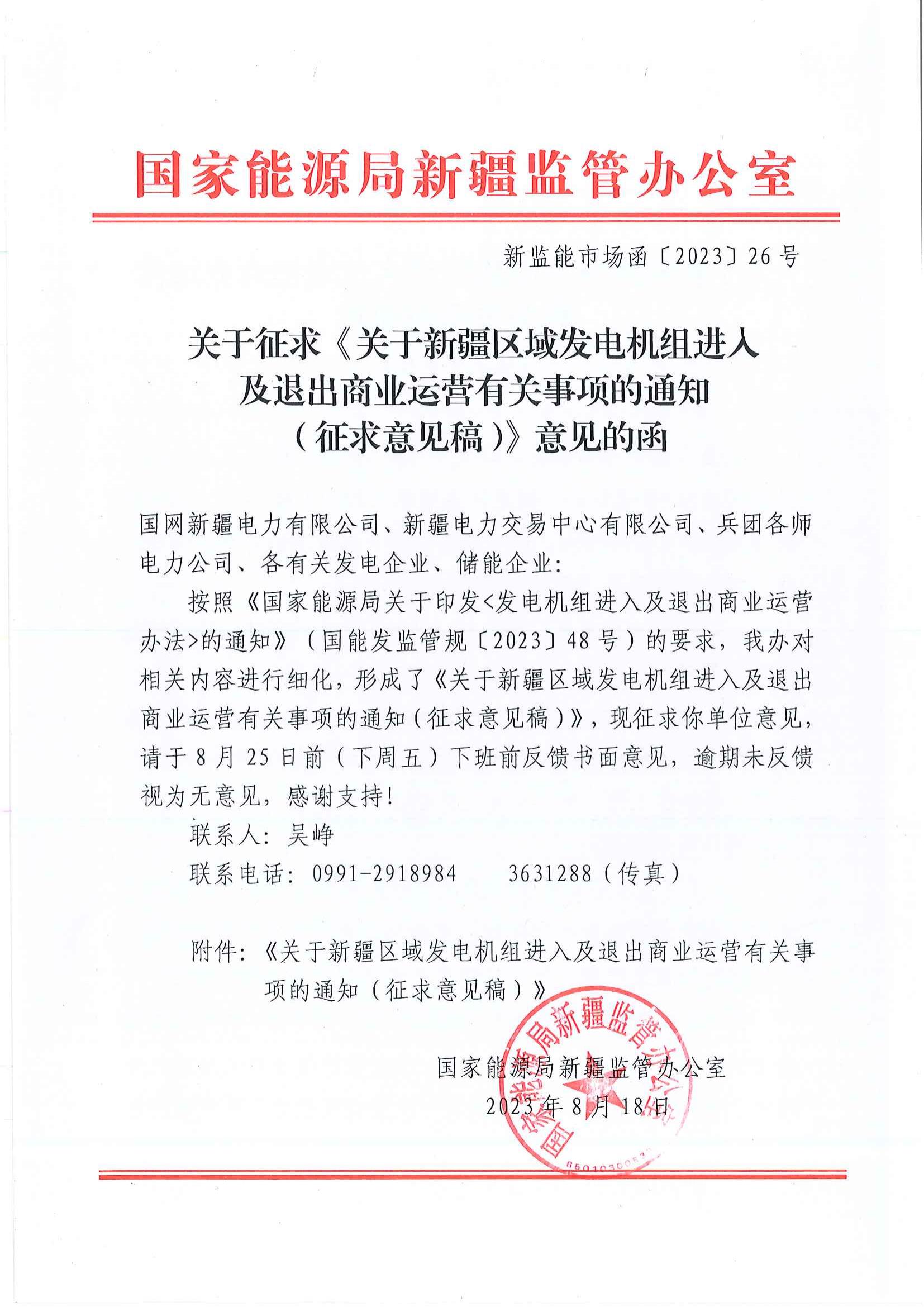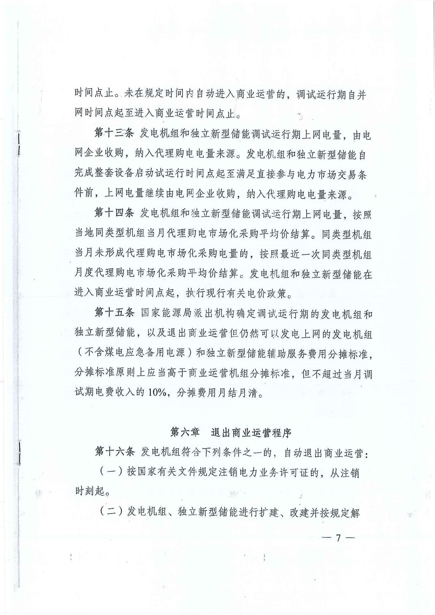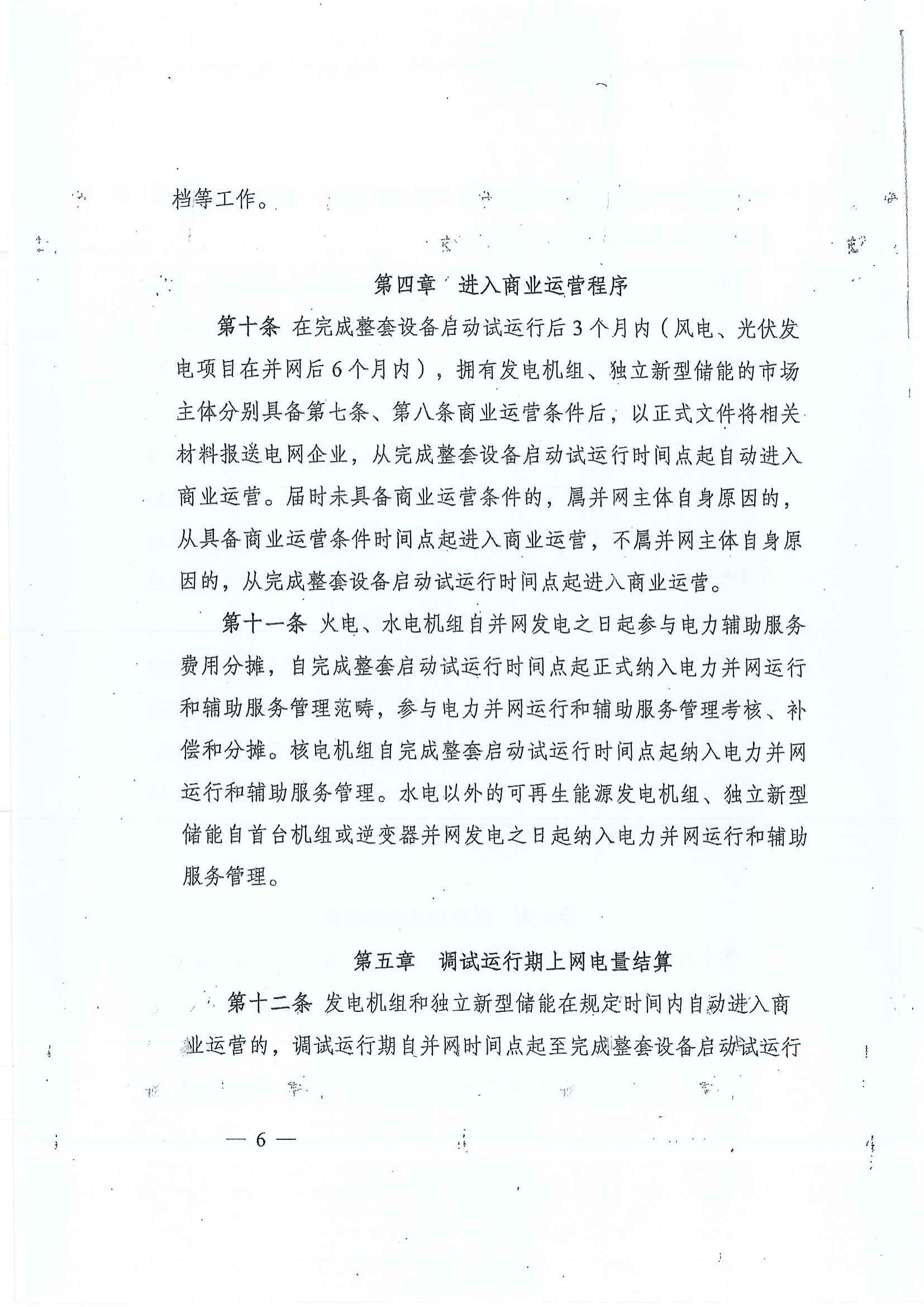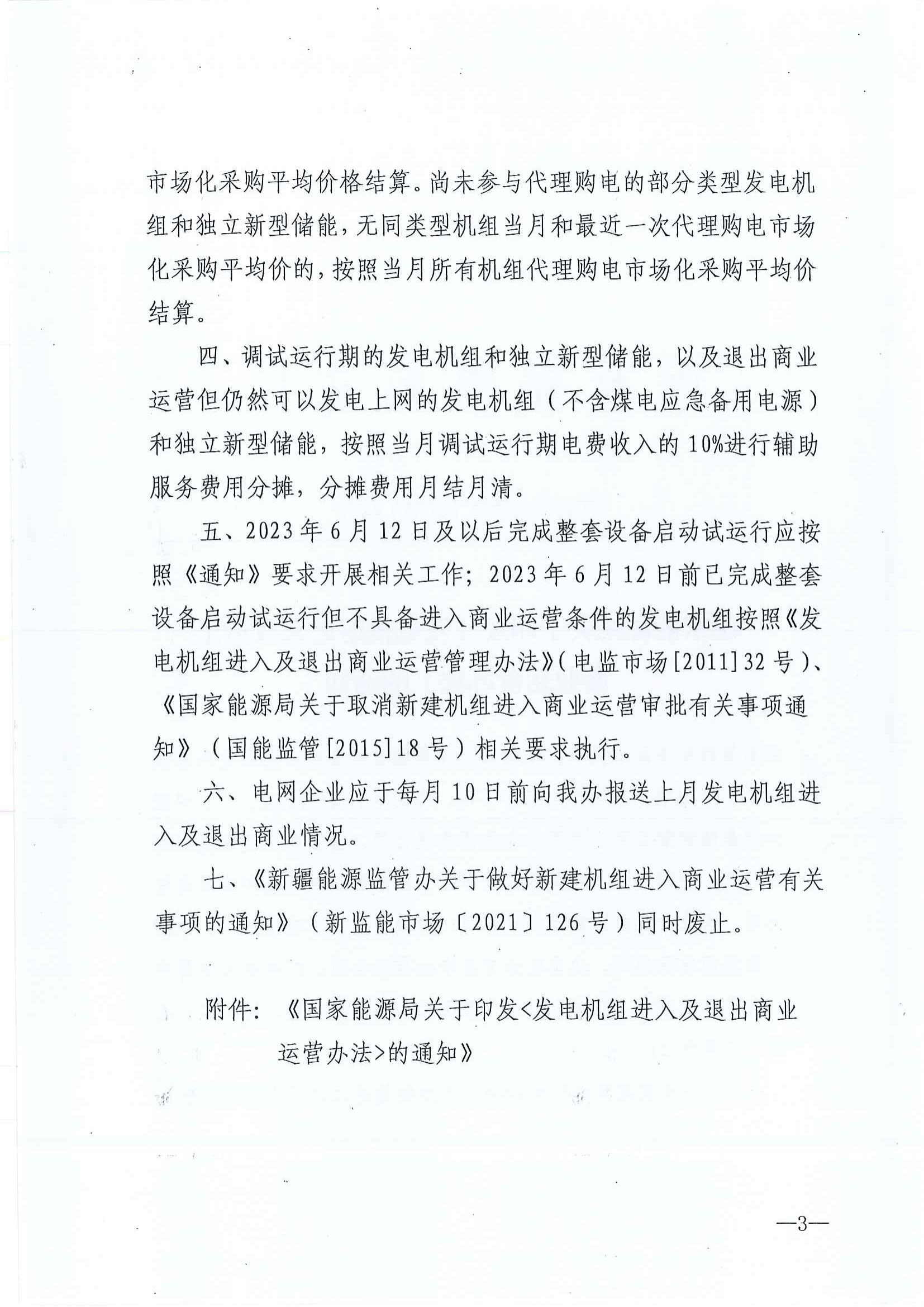8月28日,新疆能(neng)監辦發(fa)(fa)布關于(yu)征求《關于(yu)新疆區域(yu)發(fa)(fa)電(dian)(dian)機(ji)組(zu)進入及退出商業運營(ying)(ying)有關事項的通(tong)知(zhi)(征求意見稿(gao))》意見的函。通(tong)知(zhi)中(zhong)提到,未(wei)進入商業運營(ying)(ying)但(dan)已滿足(zu)入市條件并參與(yu)電(dian)(dian)力市場(chang)化(hua)交易的發(fa)(fa)電(dian)(dian)機(ji)組(zu)和獨立(li)新型儲能(neng)在其參與(yu)電(dian)(dian)力市場(chang)化(hua)交易時點(dian)起,不再執(zhi)行調試(shi)運行期電(dian)(dian)價,按(an)照電(dian)(dian)力市場(chang)化(hua)交易電(dian)(dian)價結算。 火電(dian)(dian)(dian)(dian)、水電(dian)(dian)(dian)(dian)機組自并(bing)(bing)網發電(dian)(dian)(dian)(dian)之(zhi)日(ri)起(qi)參(can)與電(dian)(dian)(dian)(dian)力輔助服務(wu)(wu)費(fei)用分攤,自完成整套啟(qi)動(dong)試運(yun)行(xing)(xing)時間點起(qi)正式納(na)入(ru)電(dian)(dian)(dian)(dian)力并(bing)(bing)網運(yun)行(xing)(xing)和(he)(he)輔助服務(wu)(wu)管(guan)(guan)(guan)理范(fan)疇,參(can)與電(dian)(dian)(dian)(dian)力并(bing)(bing)網運(yun)行(xing)(xing)和(he)(he)輔助服務(wu)(wu)管(guan)(guan)(guan)理考核、補償和(he)(he)分攤。核電(dian)(dian)(dian)(dian)機組自完成整套啟(qi)動(dong)試運(yun)行(xing)(xing)時間點起(qi)納(na)入(ru)電(dian)(dian)(dian)(dian)力并(bing)(bing)網運(yun)行(xing)(xing)和(he)(he)輔助服務(wu)(wu)管(guan)(guan)(guan)理。水電(dian)(dian)(dian)(dian)以外的可再生能源發電(dian)(dian)(dian)(dian)機組、獨(du)立(li)新型儲能自首臺機組或逆變器并(bing)(bing)網發電(dian)(dian)(dian)(dian)之(zhi)日(ri)起(qi)納(na)入(ru)電(dian)(dian)(dian)(dian)力并(bing)(bing)網運(yun)行(xing)(xing)和(he)(he)輔助服務(wu)(wu)管(guan)(guan)(guan)理。