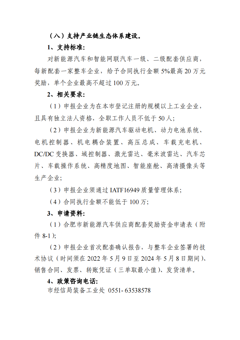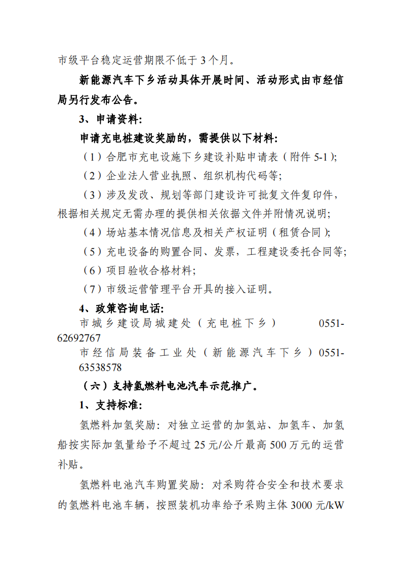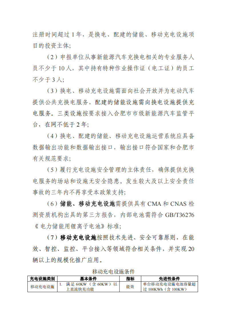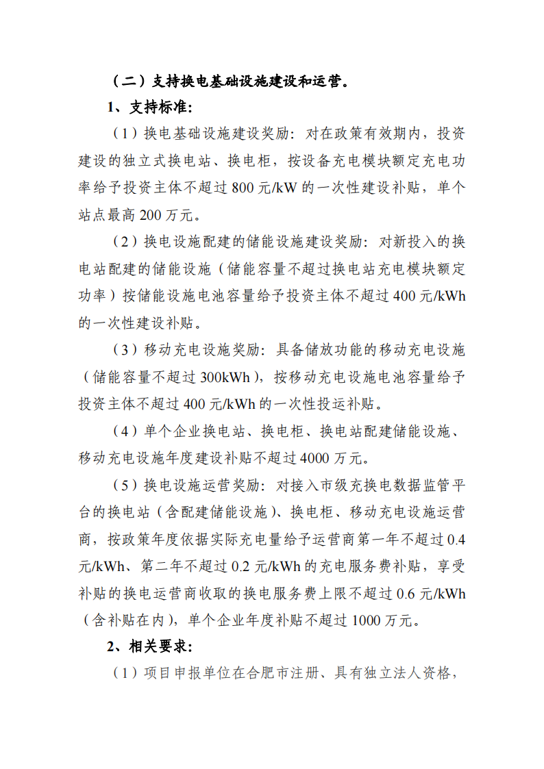9月5日,安徽合肥市經信局發布《合肥市進一步促進新能源汽車和智能網聯汽車推廣應用若干政策實施細則》,其中提到對新投入的換電站配建的儲能設施(儲能容量不超過換電站充電模塊額定功率)按儲能設施電池容量給予投資主體不超過400元/kWh的一次性建設補貼。 《細則》同時提出其他(ta)幾種獲得補貼的應用: 對符合要(yao)求的獨立(li)式換電站、換電柜,按設(she)備充電模塊額定充電功率給(gei)予投資主體不(bu)超(chao)過800元(yuan)(yuan)/kW的一次性建設(she)補貼,單(dan)個站點最(zui)高(gao)200萬元(yuan)(yuan); 對具備儲放功能的(de)移(yi)動充電(dian)設施(儲能容量(liang)不(bu)超過300kWh),按移(yi)動充電(dian)設施電(dian)池容量(liang)給予投資主體不(bu)超過400元/kWh的(de)一次性投運補貼; 對接入市級充(chong)換(huan)電數據監(jian)管(guan)平臺的換(huan)電站(含配建(jian)儲(chu)能設施)、換(huan)電柜、移動充(chong)電設施運(yun)營商,按政策年(nian)度依據實際充(chong)電量給(gei)予(yu)運(yun)營商第一年(nian)不(bu)超(chao)過(guo)0.4元(yuan)/kWh、第二年(nian)不(bu)超(chao)過(guo)0.2元(yuan)/kWh的充(chong)電服(fu)務費補貼(tie),享受補貼(tie)的換(huan)電運(yun)營商收取的換(huan)電服(fu)務費上限(xian)不(bu)超(chao)過(guo)0.6元(yuan)/kWh(含補貼(tie)在內),單個企業年(nian)度補貼(tie)不(bu)超(chao)過(guo)1000萬元(yuan)。 《細則(ze)》還明確(que),可(ke)獲得補貼(tie)的儲(chu)能設(she)施需(xu)向換電(dian)(dian)設(she)施提供充電(dian)(dian)服務,同時要求儲(chu)能、移(yi)動(dong)充電(dian)(dian)設(she)施需(xu)提供具有(you)CMA和CNAS檢測(ce)資質(zhi)機構出具的第(di)三方報(bao)告(gao),內(nei)部電(dian)(dian)池需(xu)符合GB/T36276《電(dian)(dian)力儲(chu)能用鋰(li)離子電(dian)(dian)池》標準。 原文如下: 關于征求(qiu)《合肥市進一(yi)步促(cu)進新能源汽車(che)和智能網聯汽車(che)推廣(guang)應用若干政策實施細(xi)則》意見(jian)的公告 根據《合(he)肥市進(jin)(jin)一步促(cu)進(jin)(jin)新能(neng)源汽車和(he)智能(neng)網(wang)聯汽車推廣(guang)應用若(ruo)干(gan)政(zheng)策(ce)》(合(he)政(zheng)辦秘〔2023〕11 號(hao)),市經信(xin)局起(qi)草了(le)《合(he)肥市進(jin)(jin)一步促(cu)進(jin)(jin)新能(neng)源汽車和(he)智能(neng)網(wang)聯汽車推廣(guang)應用若(ruo)干(gan)政(zheng)策(ce)實施(shi)細則(ze)》,現面向社會公開(kai)征求意見(jian)(jian),如(ru)有(you)意見(jian)(jian)建議,請向市經信(xin)局反饋。 一、征求時間 2023年9月(yue)5日至2023年9月(yue)11日。 二、參與方式 通過以下方式反饋: 1.合(he)肥市經濟和信(xin)息化局網(wang)站(//jxj.hefei.gov.cn/)“互動交流-調查征集-我要(yao)留言”欄目; 2.聯系電話:0551-63532730; 3.電子(zi)郵箱:27903536@qq.com。 三、成果運用 對提(ti)出的意見和建議,市經信局在制定(ding)《合肥(fei)市進一步促進新能(neng)源汽車(che)和智能(neng)網聯汽車(che)推廣應用(yong)若干政策實施(shi)細(xi)則》過程中(zhong)認(ren)真(zhen)研究吸納。