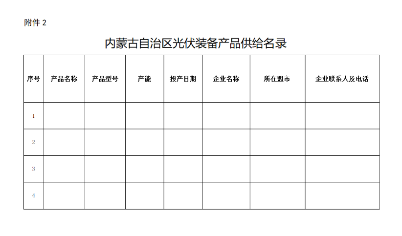 11月(yue)13日,內蒙(meng)古自治區(qu)工業和信息(xi)化(hua)廳發布關于征(zheng)集內蒙(meng)古自治區(qu)風電和光伏(fu)裝備產品(pin)供給名錄的通知。 原文見下(xia): 關于征集內蒙古自治區風電和光伏裝備產品供給名錄的通知 各盟市(shi)工業和信息化局: 為落實自治(zhi)區有關裝備(bei)制造與新能源(yuan)開(kai)發一(yi)體化發展戰(zhan)略(lve)部(bu)署,進一(yi)步推動裝備(bei)制造企(qi)(qi)業(ye)與新能源(yuan)開(kai)發企(qi)(qi)業(ye)開(kai)展供需(xu)對接(jie),鼓勵產(chan)業(ye)鏈上下游企(qi)(qi)業(ye)根據市(shi)(shi)場需(xu)求進行產(chan)品(pin)更新迭代、配套發展,現向(xiang)各盟(meng)市(shi)(shi)征集風(feng)電、光伏裝備(bei)產(chan)品(pin)供給名錄(lu),請各盟(meng)市(shi)(shi)認(ren)真落實,積極組織風(feng)電、光伏裝備(bei)企(qi)(qi)業(ye)填報。 聯系人及(ji)電話: 風電裝備 馬智(zhi)彬,0471-4826491,15147191027 光伏裝備 胡景(jing)朝,0471-3595650,18947119797 附(fu)件: 1.內蒙古自治區風電裝備(bei)產品(pin)供給名錄 2.內蒙古自治區光(guang)伏裝備產品供給名(ming)錄 2023年11月(yue)10日