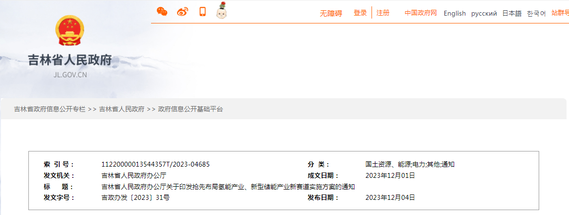 吉林省(sheng)人民政府辦公廳近日印發《搶先布局氫(qing)(qing)(qing)(qing)能產(chan)(chan)(chan)(chan)(chan)業(ye)(ye)新賽道實(shi)(shi)施(shi)方(fang)案》。到2025年,氫(qing)(qing)(qing)(qing)能產(chan)(chan)(chan)(chan)(chan)業(ye)(ye)布局初步(bu)成(cheng)(cheng)型(xing),產(chan)(chan)(chan)(chan)(chan)業(ye)(ye)鏈逐步(bu)完善(shan),產(chan)(chan)(chan)(chan)(chan)業(ye)(ye)規模快(kuai)速增(zeng)長,氫(qing)(qing)(qing)(qing)能產(chan)(chan)(chan)(chan)(chan)業(ye)(ye)產(chan)(chan)(chan)(chan)(chan)值達到100億(yi)元(yuan),帶動新能源裝機規模500萬千瓦(wa)。到2030年,全省(sheng)氫(qing)(qing)(qing)(qing)能產(chan)(chan)(chan)(chan)(chan)業(ye)(ye)實(shi)(shi)現跨越式發展(zhan),產(chan)(chan)(chan)(chan)(chan)業(ye)(ye)鏈布局趨(qu)于(yu)完善(shan),產(chan)(chan)(chan)(chan)(chan)業(ye)(ye)集群形(xing)成(cheng)(cheng)規模,產(chan)(chan)(chan)(chan)(chan)值達到300億(yi)元(yuan)。到2035年,“一區(qu)、兩軸、四基(ji)地(di)”發展(zhan)格局基(ji)本(ben)形(xing)成(cheng)(cheng),氫(qing)(qing)(qing)(qing)能產(chan)(chan)(chan)(chan)(chan)業(ye)(ye)產(chan)(chan)(chan)(chan)(chan)值突破1000億(yi)元(yuan),成(cheng)(cheng)為東北亞(ya)地(di)區(qu)綠氫(qing)(qing)(qing)(qing)全產(chan)(chan)(chan)(chan)(chan)業(ye)(ye)鏈創新應用基(ji)地(di),建成(cheng)(cheng)“中(zhong)國(guo)北方(fang)氫(qing)(qing)(qing)(qing)谷”。 全文如下: 吉林省人民政府辦公廳關于印發 搶先布局氫能產業、新型儲能產業新賽道 實施方案的通知 吉政(zheng)辦(ban)發〔2023〕31號 各(ge)(ge)市(州(zhou))人民政(zheng)府(fu)(fu),長白山管委(wei)會,各(ge)(ge)縣(xian)(市)人民政(zheng)府(fu)(fu),省政(zheng)府(fu)(fu)各(ge)(ge)廳委(wei)辦、各(ge)(ge)直屬機構(gou),駐吉中(zhong)直有關部(bu)門、單位: 《搶先布(bu)局(ju)氫能產業(ye)新賽道(dao)實(shi)施方案》和《搶先布(bu)局(ju)新型儲能產業(ye)新賽道(dao)實(shi)施方案》已經省政府同意(yi),現(xian)印發給(gei)你們,請(qing)認真(zhen)抓好貫徹落實(shi)。 吉林省(sheng)人(ren)民政府辦公廳 2023年12月1日 (此件公開發布) 搶先布局氫能產業新賽道實施方案 為深入(ru)貫(guan)徹黨的二(er)十大精(jing)神(shen)和(he)省第十二(er)次黨代(dai)會部(bu)署(shu)要求,全面(mian)落實(shi)新(xin)時代(dai)推(tui)動(dong)(dong)東北全面(mian)振(zhen)興座談會精(jing)神(shen),搶占氫能(neng)產業新(xin)賽道,打(da)造“中國北方(fang)氫谷(gu)”,依據《“氫動(dong)(dong)吉(ji)林”行動(dong)(dong)實(shi)施方(fang)案(an)》(吉(ji)政發(fa)〔2022〕23號)和(he)《“氫動(dong)(dong)吉(ji)林”中長期發(fa)展規劃(2021-2035年)》(吉(ji)政辦發(fa)〔2022〕36號),制定本方(fang)案(an)。 一、總體要求 (一(yi)(yi))指(zhi)導(dao)思想(xiang)。以習近平新(xin)時代中(zhong)國特色社會主(zhu)義(yi)思想(xiang)為(wei)指(zhi)導(dao),全(quan)(quan)面(mian)(mian)(mian)貫(guan)徹(che)黨的(de)二十大精神(shen),忠實踐行(xing)習近平總書(shu)記視察吉林重要講話(hua)重要指(zhi)示精神(shen),立足新(xin)發(fa)展(zhan)階段(duan),完整、準(zhun)確、全(quan)(quan)面(mian)(mian)(mian)貫(guan)徹(che)新(xin)發(fa)展(zhan)理念,構(gou)建新(xin)發(fa)展(zhan)格(ge)局(ju),貫(guan)徹(che)“四個(ge)革命、一(yi)(yi)個(ge)合作(zuo)”能(neng)源(yuan)安全(quan)(quan)新(xin)戰略(lve),以供給側結構(gou)性改革為(wei)主(zhu)線,堅決履行(xing)“3060”碳達峰碳中(zhong)和責任,全(quan)(quan)面(mian)(mian)(mian)實施“一(yi)(yi)主(zhu)六(liu)雙(shuang)”高(gao)質量發(fa)展(zhan)戰略(lve),深(shen)入開(kai)展(zhan)“氫(qing)動吉林”行(xing)動,把發(fa)展(zhan)氫(qing)能(neng)作(zuo)為(wei)推動產業(ye)轉型升級、促進能(neng)源(yuan)結構(gou)調整的(de)重要引(yin)擎,加(jia)強技術研(yan)發(fa),提升裝備(bei)制造水(shui)平,貫(guan)通氫(qing)能(neng)產業(ye)鏈條,構(gou)建新(xin)型產業(ye)生態,搶(qiang)占(zhan)綠(lv)色氫(qing)能(neng)產業(ye)發(fa)展(zhan)新(xin)賽道制高(gao)點,打造“中(zhong)國北方氫(qing)谷”,為(wei)吉林全(quan)(quan)面(mian)(mian)(mian)振興取(qu)得新(xin)突(tu)破提供有力支(zhi)撐(cheng)。 (二)基(ji)本原則。堅持(chi)“安全(quan)為本、綠色發(fa)展(zhan)(zhan)(zhan)、創(chuang)新驅動、市場主導(dao)、產(chan)(chan)業協同、示范先行”的原則,積極順應(ying)能(neng)(neng)源變革發(fa)展(zhan)(zhan)(zhan)趨勢,立足吉林產(chan)(chan)業基(ji)礎優勢,超前謀劃布局,搶占氫(qing)(qing)(qing)能(neng)(neng)產(chan)(chan)業發(fa)展(zhan)(zhan)(zhan)制(zhi)(zhi)高(gao)點。聚焦氫(qing)(qing)(qing)基(ji)綠色能(neng)(neng)源、氫(qing)(qing)(qing)能(neng)(neng)裝(zhuang)備制(zhi)(zhi)造、氫(qing)(qing)(qing)能(neng)(neng)交通、氫(qing)(qing)(qing)儲能(neng)(neng)等重點領域,強(qiang)化頂層設(she)計(ji)、技術(shu)攻(gong)關、應(ying)用推廣、產(chan)(chan)業扶持(chi)和項目對接,形成(cheng)氫(qing)(qing)(qing)能(neng)(neng)全(quan)產(chan)(chan)業鏈發(fa)展(zhan)(zhan)(zhan)格局,培育(yu)千億級產(chan)(chan)業集(ji)群。 (三(san))總體目標(biao)。到2025年,氫(qing)能產(chan)(chan)業(ye)(ye)布局初(chu)步成型(xing),產(chan)(chan)業(ye)(ye)鏈逐步完善,產(chan)(chan)業(ye)(ye)規模快速增(zeng)長,氫(qing)能產(chan)(chan)業(ye)(ye)產(chan)(chan)值達到100億元(yuan),帶動新能源裝(zhuang)機規模500萬千瓦。到2030年,全省氫(qing)能產(chan)(chan)業(ye)(ye)實現跨越式發展,產(chan)(chan)業(ye)(ye)鏈布局趨(qu)于完善,產(chan)(chan)業(ye)(ye)集群形成規模,產(chan)(chan)值達到300億元(yuan)