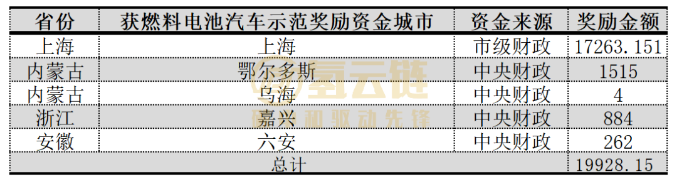 日前已有(you)上(shang)(shang)海市(shi)(shi)、內蒙古自治區(qu)、浙江省、安(an)徽(hui)省等公(gong)(gong)(gong)(gong)布了第一年度燃料(liao)電(dian)池(chi)汽車(che)示(shi)范應用獎(jiang)(jiang)勵(li)資(zi)(zi)金(jin)。根據公(gong)(gong)(gong)(gong)示(shi)文件,四省公(gong)(gong)(gong)(gong)示(shi)的首年度燃料(liao)電(dian)池(chi)汽車(che)獎(jiang)(jiang)勵(li)資(zi)(zi)金(jin)總額為(wei)(wei)19928.1506萬元,其中上(shang)(shang)海市(shi)(shi)公(gong)(gong)(gong)(gong)示(shi)的為(wei)(wei)市(shi)(shi)級獎(jiang)(jiang)勵(li)資(zi)(zi)金(jin),內蒙古、浙江和安(an)徽(hui)為(wei)(wei)中央獎(jiang)(jiang)勵(li)資(zi)(zi)金(jin),已公(gong)(gong)(gong)(gong)示(shi)地區(qu)主(zhu)要為(wei)(wei)上(shang)(shang)海城(cheng)市(shi)(shi)群地區(qu),詳情如下(xia)表所示(shi): 首年(nian)度燃料電(dian)池示范應用獎勵資金公示情況 單位:萬元(yuan) 根據內蒙古、浙江和安徽發布的文件,首年度燃料電池汽車示范應用國家級獎勵資金主要來自2024年的財政預算,且本次國家級獎勵資金不得用于支持燃料電池汽車整車生產投資項目和加氫基礎設施建設,即主要用于燃料電池汽車的購置和運營。而上海市級補貼所依賴的文件為《上海市燃料電池汽車示范應用專項資金實施細則》,其涉及面較廣,包含了加氫站建設等補貼。 各市區(qu)首年度燃料電池汽車示范應用獎(jiang)勵資金預計為(wei)公示金額(e)的(de)2-3倍。根據各地方(fang)(fang)發(fa)布(bu)的(de)燃料電池車補(bu)貼細則來看,在符合國家補(bu)貼條件的(de)基礎(chu)上,較(jiao)多地區(qu)采用國家級(ji):省級(ji):市級(ji)=1:1:1的(de)方(fang)(fang)式分配,其中(zhong)上海市燃料電池購置補(bu)貼按1積分20萬配套,其中(zhong)國家和市級(ji)15萬,區(qu)級(ji)5萬。 根(gen)據目前公布的(de)文件(jian)來(lai)看,第一年(nian)度(du)燃料電池汽車示(shi)范應用國家級(ji)(ji)獎(jiang)勵資金(jin)或于2024年(nian)年(nian)初(chu)前后時間發(fa)放,而省(sheng)級(ji)(ji)和市區級(ji)(ji)獎(jiang)勵資金(jin)則根(gen)據地方(fang)財政實際情況發(fa)放。目前山東等城市群地區獎(jiang)勵資金(jin)也(ye)已經確認完畢,預(yu)計本月將會公示(shi)。隨著各(ge)級(ji)(ji)補貼的(de)發(fa)放,產業鏈預(yu)計將獲得數(shu)億元的(de)現金(jin)流補充,有助于未來(lai)一年(nian)氫(qing)能產業的(de)發(fa)展。
