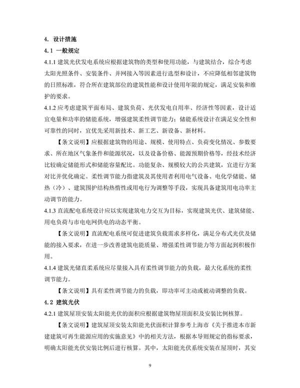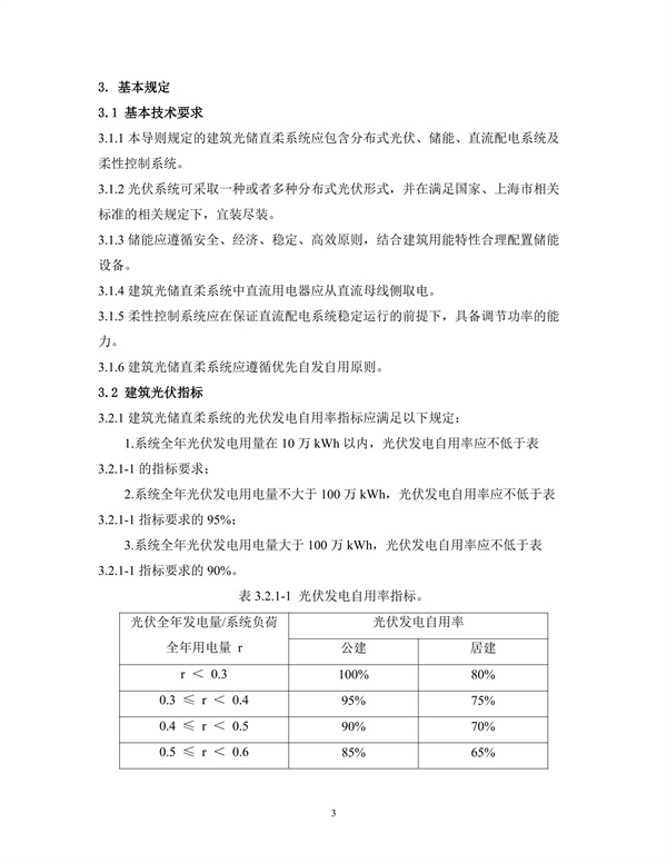 12月7日,上海市住房城鄉建設管理委組織中建科技集團有限公司、上海交通大學等單位,編制完成了《上海市建筑光儲直柔系統技術導則》(征求意見稿),現面向社會公開征求意見。 導則指出,根據建筑光儲直柔系統規模大小劃分三個等級:光伏年發電用電量 10 萬kWh以 內、10~100 萬kWh、高于 100 萬kWh,光伏發電自用率分別執行表格指標值的100%、 95%、90%。小型項目光伏年發電量一般在 10萬kWh以內,包括低層商業、辦公、超 低能耗建筑或部分示范性區域,因總成本低、用電特性相對清晰,要求滿足表格指 標值的100%。園區級項目可安裝屋頂光伏資源較多,但由于末端用能復雜,因此 對于光伏年發電用電量大于 100 萬kWh的項目,要求光伏發電自用率指標不低于表 格指標值的 90%。 該導則基于提升本市建筑可再生能源的生產和消納能力,以光伏發電自用、儲能優化應用、能源合理分配為基本導向,指導建成具有引領性的光儲直柔建筑,降低整體建設和運行成本,增強光儲直柔技術的可推廣性,構建具有指導建筑光儲直柔系統全過程的技術體系。本導則適用于本市新建、改建和擴建的民用建筑與區域開展建筑光儲直柔設計、施工、運行和評價,其他類型的建筑可參照執行。 詳情如下: