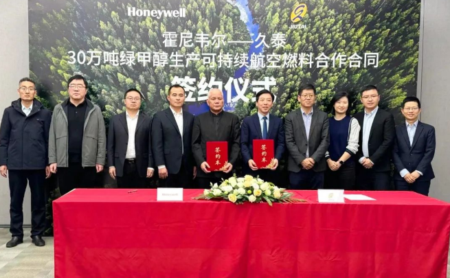 12月(yue)12日,內蒙古久泰(tai)集(ji)(ji)團與霍(huo)尼韋爾環(huan)球(qiu)油品公司30萬(wan)噸綠(lv)色甲醇制10萬(wan)噸綠(lv)色航空煤油合(he)作及甲醇制烯烴催(cui)化劑合(he)同簽約儀(yi)(yi)式(shi)在上海舉行。霍(huo)尼韋爾特性材料與技術集(ji)(ji)團副總裁(cai)兼亞太(tai)區總經理劉(liu)茂樹,久泰(tai)集(ji)(ji)團董事(shi)長崔連國出席簽約儀(yi)(yi)式(shi)。 簽約儀式上,劉茂樹副總裁與崔連國董事長(chang)代表雙(shuang)方簽署合(he)作(zuo)協議(yi)。并表示,雙(shuang)方將深入探索相關領域(yu)合(he)作(zuo),加快推(tui)進(jin)(jin)綠(lv)(lv)色甲醇制綠(lv)(lv)色航(hang)空煤油項目進(jin)(jin)度(du),推(tui)動中國航(hang)空業碳減排,實現行(xing)業綠(lv)(lv)色低碳、可持續發(fa)展(zhan)。 內蒙古久泰新材料有限公司 內(nei)蒙古久泰新(xin)材料有限(xian)公(gong)(gong)司成立于(yu)(yu)2017年(nian)3月,位于(yu)(yu)內(nei)蒙古首府呼和(he)浩特市托(tuo)克托(tuo)工(gong)(gong)業(ye)園區(qu)。公(gong)(gong)司總(zong)占地面積2565畝,總(zong)投(tou)(tou)資(zi)117億(yi)元(yuan)。公(gong)(gong)司一(yi)(yi)期項目(mu)(mu)(mu)建(jian)設(she)規模為(wei)年(nian)產(chan)100萬(wan)噸(dun)乙二(er)醇(chun)(chun),項目(mu)(mu)(mu)采用航天(tian)粉煤氣化(hua)(hua)和(he)shell殼牌氣化(hua)(hua)工(gong)(gong)藝技術(shu)、低溫(wen)甲醇(chun)(chun)洗工(gong)(gong)藝技術(shu)及(ji)世界先進的Davy公(gong)(gong)司甲醛氫(qing)羧基化(hua)(hua)工(gong)(gong)藝技術(shu)生產(chan)乙二(er)醇(chun)(chun)。項目(mu)(mu)(mu)建(jian)設(she)期3年(nian),2022年(nian)正式投(tou)(tou)產(chan)。投(tou)(tou)產(chan)后可實(shi)現年(nian)銷售106億(yi)元(yuan),利稅36.6億(yi)元(yuan)。為(wei)進一(yi)(yi)步(bu)延伸(shen)產(chan)業(ye)鏈(lian),提高產(chan)品(pin)附加值,公(gong)(gong)司在(zai)建(jian)設(she)一(yi)(yi)期項目(mu)(mu)(mu)的同時(shi)積極謀劃(hua)布局(ju)二(er)期配套乙二(er)醇(chun)(chun)聚(ju)(ju)酯產(chan)業(ye)升級示(shi)范項目(mu)(mu)(mu)、30萬(wan)噸(dun)BDO、6萬(wan)噸(dun)聚(ju)(ju)甲醛、1萬(wan)噸(dun)綠色(se)液(ye)氫(qing)能源等項目(mu)(mu)(mu)。 霍尼韋爾特性材料和技術集團 霍尼(ni)韋(wei)爾特(te)性(xing)材料和(he)技術集(ji)團研究并開發(fa)工藝(yi)技術、自(zi)動(dong)化(hua)解決(jue)方案、特(te)性(xing)材料和(he)工業(ye)軟件,引領(ling)世界工業(ye)的(de)(de)(de)數(shu)字轉型與可持(chi)續(xu)(xu)發(fa)展(zhan)。該集(ji)團下屬霍尼(ni)韋(wei)爾UOP是石油(you)和(he)天然氣領(ling)域領(ling)先的(de)(de)(de)供應(ying)商,其工藝(yi)技術奠定了全球(qiu)大(da)多數(shu)煉油(you)企業(ye)的(de)(de)(de)發(fa)展(zhan)基石,助力企業(ye)高效地(di)生產(chan)汽油(you)、柴油(you)、航空燃料、石化(hua)產(chan)品和(he)可再生燃料,并不斷推出促進(jin)清潔能源和(he)資源循環再生的(de)(de)(de)可持(chi)續(xu)(xu)工藝(yi)技術。