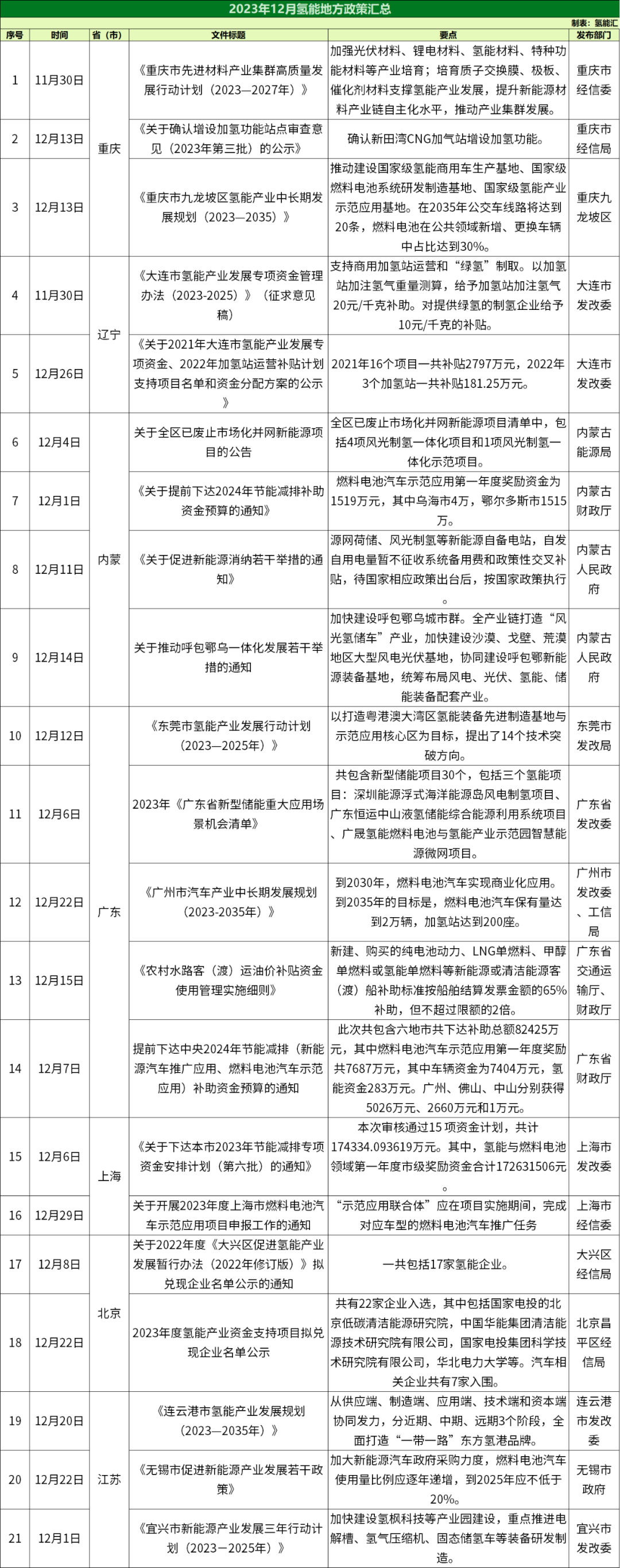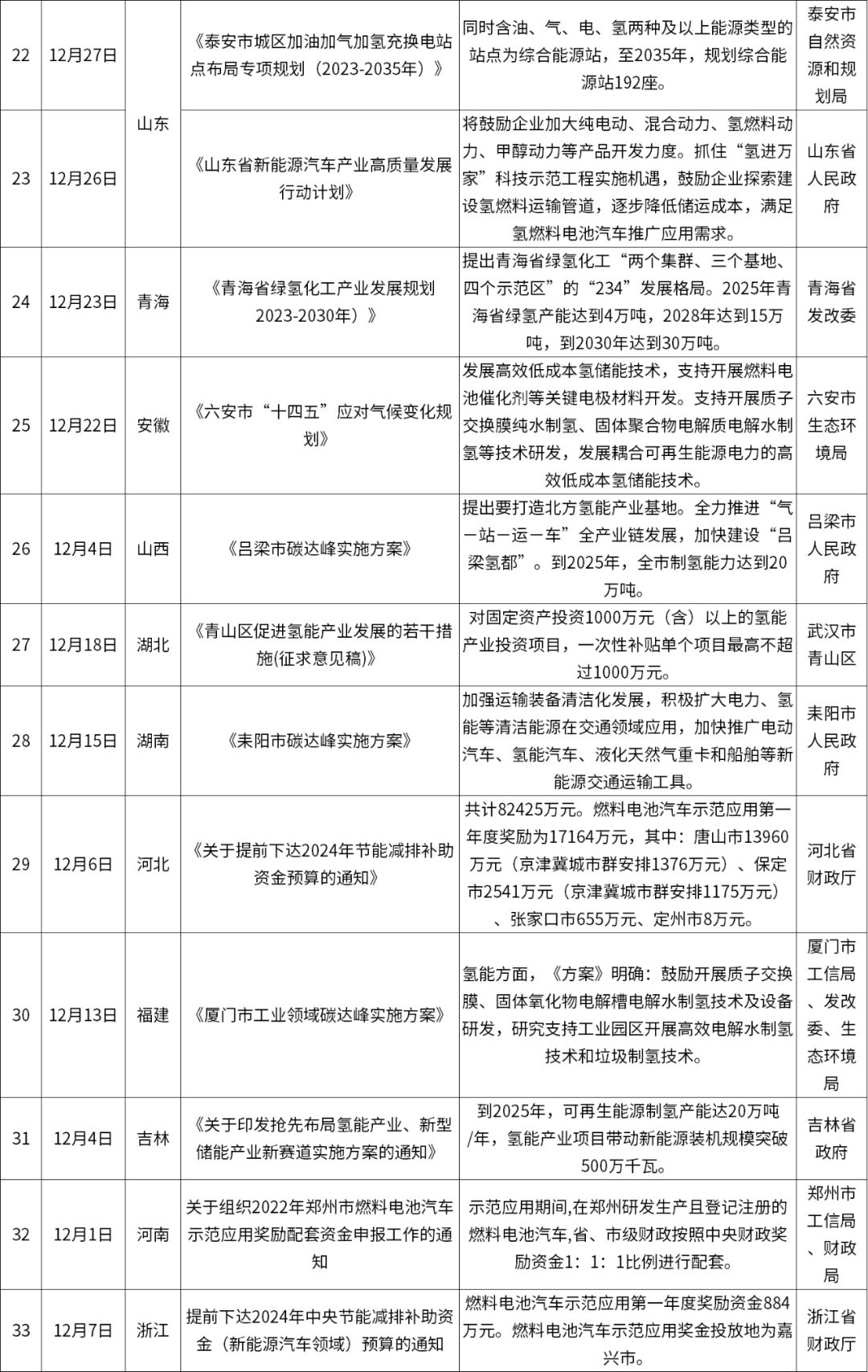 40條!2023年12月氫能政策匯總!2024-01-04 16:55瀏覽數:407次