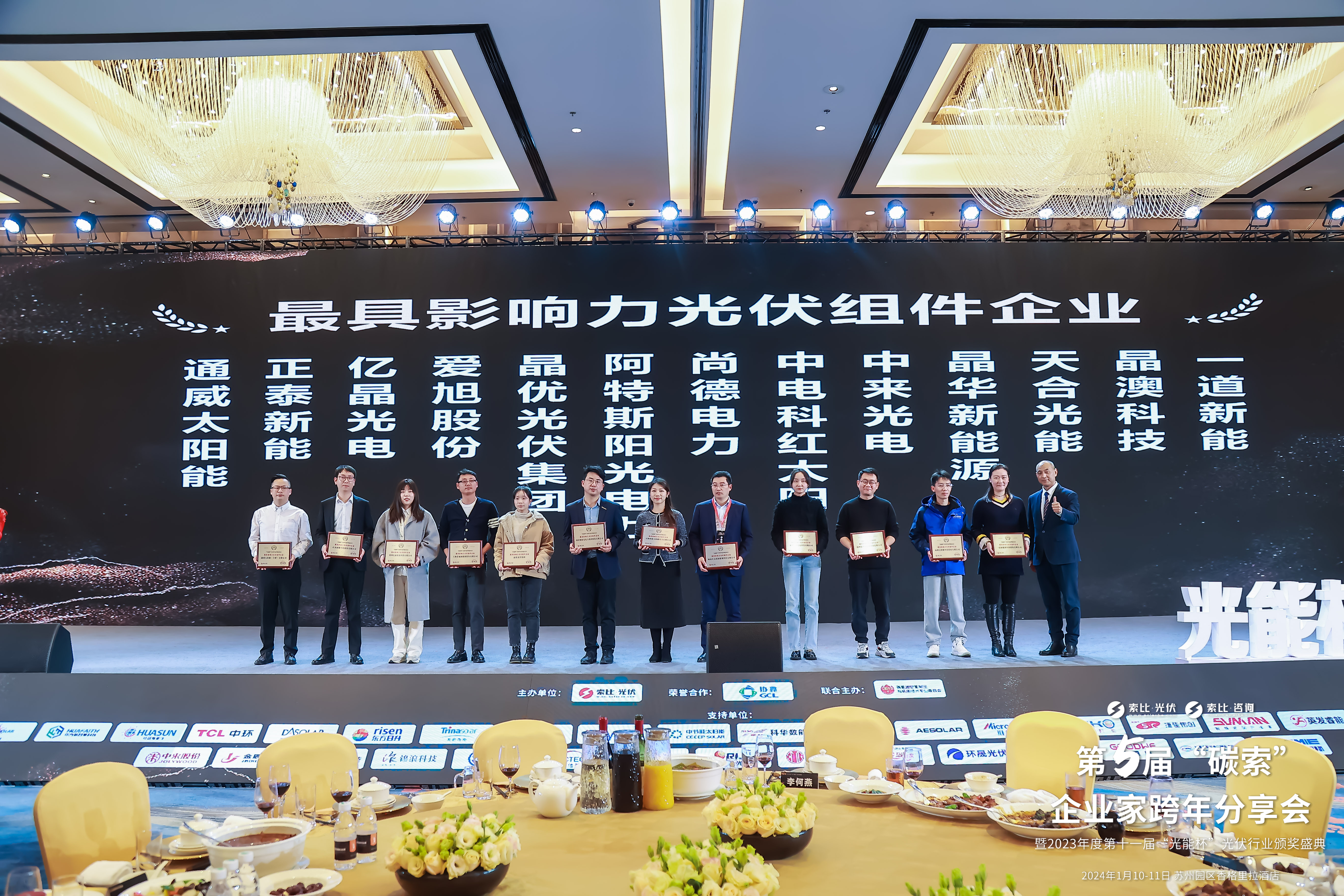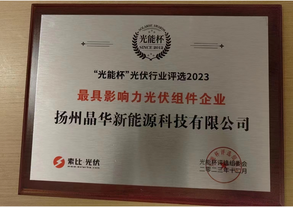 1月11日(ri),由索比光(guang)伏網、索比咨詢聯合主辦的2023年度(du)“光(guang)(guang)能(neng)(neng)杯”跨年(nian)分(fen)享會暨頒獎(jiang)典禮在蘇州(zhou)香格里拉酒店圓滿落(luo)幕。揚(yang)州(zhou)晶(jing)華(hua)新能(neng)(neng)源(yuan)科(ke)技有限公司憑借強大(da)創新力、出色的(de)品質與服務、卓越的(de)品牌影響(xiang)力榮獲最獲“最具影響(xiang)力光(guang)(guang)伏組(zu)件(jian)企業“殊榮。 “光能杯”評選始于2012年,歷經多年沉淀,至今已成為光伏行業最具專屬性權威的評選之一。“光能杯”年度影響力大獎評選涉及光伏行業各個環節,從企業綜合實力、核心產品質量/體量、品牌影響力指數等多個維度,綜合表現最具年度影響力的企業。客觀挖掘行業中堅力量,樹立行業標桿。同期舉辦的光伏會議重點圍繞碳中和發展的角度、商業模式、技術創新、商業生態等熱點話題進行探討。 獲獎企業介紹: 揚州晶華新能源科技有限公司,以“智造優質產品、服務綠色能源”為使命,致力打造集研發、生產、銷售、服務于體的高效太陽能光伏組件制造企業。“以奮斗者為本、以客戶為中心、擁抱供應商”,晶華以建設成為最受客戶信賴的 光伏組件制造企業為愿景,持續與戰略合作伙伴升級光伏建筑一體化產品和智能裝備,打造“綠色建筑+智能制造”現代化工廠,助力中國2060碳中和!