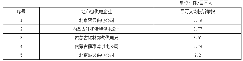 1月15日,華北能源監管局公布2023年12月份12398熱線投訴舉報辦理情況通報。 2023年12月,華北能源監管局共收到國家能源局12398能源監管熱線中心派發的投訴舉報91件,現將有關情況通報如下: 一、當月接收情況 2023年12月,共收到投訴舉報91件。其中投訴83件,環比減少26.55%,同比減少23.85%,其中:用電報裝類26件,同比減少16.13%;停電搶修類12件,同比減少36.84%;電能質量類25件,同比增加25%。舉報8件,比上月減少2件,比去年12月份減少12件。 (一)反映問題情況 投訴舉報事項中,電力類90件,占98.9%;新能源和可再生能源類1件,占1.1%。 12月份接收的投訴舉報主要反映三方面問題: 1.用電報裝方面。反映充電樁、煤改電用電報裝后未及時裝表接電等問題,訴求較多的是內蒙古(12件)。 2.電能質量方面。反映個別小區或村莊頻繁停電、電壓異常等問題,訴求較多的是內蒙古和河北南網(各9件)。 3.停電搶修方面。反映故障停電時間長、對欠費停電不認可等問題,訴求較多的是河北南網(7件)。 各地投訴舉報事項按問題類型分類情況詳見下表。 2023年12月份各地投訴舉報事項按問題類型分類情況表 (二)各地情況 北京18件投訴和舉報事項中,1件未受理。受理的17件中,承裝(修、試)電力設施許可相關的3件,另14件為國網北京市電力公司,其中城區供電公司4件、通州供電公司3件,豐臺供電公司3件。 天津4件投訴和舉報事項中,1件未受理。受理的3件中,均為國網天津市電力公司,其中城南供電公司2件、城西供電公司1件。 河北南部電網區域27件投訴和舉報事項中,1件未受理。受理的26件中,承裝(修、試)電力設施許可相關的1件,另25件為國網河北省電力有限公司,其中保定供電公司8件、石家莊供電公司5件。 冀北電網區域14件投訴和舉報事項中,1件未受理。受理的13件中,承裝(修、試)電力設施許可相關的3件,另10件為國網冀北電力有限公司,其中廊坊供電公司4件、承德供電公司3件。 內蒙古西部電網區域28件投訴和舉報事項,1件未受理。受理的27件中,承裝(修、試)電力設施許可相關的1件,另26件為內蒙古電力(集團)有限責任公司,其中呼和浩特供電公司13件、包頭供電公司4件、錫林郭勒供電公司4件。 從市級供電企業服務區域人口數平均的投訴舉報數量看,百萬人均投訴舉報數大于2件的有5家企業,詳見下表。 2023年12月份地市級供電企業每百萬人投訴舉報數量情況表 二、訴求處理情況 (一)數量情況 12月份,華北能源監管局接收的91件投訴舉報中,受理86件,占接收數量的94.51%;不予受理5件,占5.49%。 12月份,華北能源監管局辦結投訴和舉報156件,環比增加32.2%、同比增加38.05%。投訴138件,環比增加51.65%、同比增加31.43%;舉報18件,環比減少33.33%、同比增加125%。 從被投訴舉報對象看,涉及承裝(修、試)電力施工企業的17件、占比10.9%;涉及供電企業139件、占比89.1%。 (二)處理情況 針對群眾反映的問題,華北能源監管局嚴格根據國家有關法規政策進行了處理。經調查,86件反映問題屬實(或部分屬實),其中涉及北京市電力公司11件,天津市電力公司20件,河北省電力公司11件,冀北電力公司13件,內蒙古電力公司30件,其他1件。其中22件被投訴企業有責任(負全部或部分責任),監管約談0件,行政處罰0件,詳見下表。 2023年12月份地市級供電企業有責任投訴舉報數量情況表 對于投訴舉報反映的問題,華北能源監管局已督促相關企業加快解決,保障了群眾正常生產生活,對存在不規范的行為已予以糾正,對存在誤解的已解釋說明、澄清事實。 (三)典型事例 1.北京市門頭溝區群眾反映,11月初向供電公司申請報裝充電樁用電,已裝表。安裝充電樁時,發現電表未通電,聯系95598熱線未解決。經調查,反映事項屬實。供電企業在裝表后,未及時更改電表費率完成接電,故障搶修人員業務不熟悉,未及時解決用電訴求。已要求供電企業優化充電樁裝表接電工作流程,加強內部培訓,不斷提升群眾用電獲得感。 2.天津市武清區群眾反映,其使用煤改電電表,執行峰谷電價,電表顯示電費金額存在異常。經調查,反映事項屬實。因用戶電表時鐘異常,電表錯誤顯示余額。該戶實際電費結算無誤,因電表余額顯示錯誤造成反映人誤解。已要求供電企業集中整治此類問題,強化計量設備巡視及異常處理。 3.河北省邢臺市群眾反映,其單位低電壓已持續2個月左右,聯系供電公司未解決。經調查,反映事項屬實。反映人為10kV專變用戶,由于供電線路負荷增加,用戶處最低電壓8.67kV,超出允許偏差。目前,供電企業已制定負荷切改方案,同時已安裝電容器,指導用戶調節變壓器分接頭。我局已要求供電企業深入開展低電壓治理。 4.河北省張家口市群眾反映,其家被供電企業人員停電,聯系95598告知其告知電費正常。經調查,反映事項屬實。因用戶前期欠費,供電企業人員為其進行了墊付,后期在催費未果的情況下,供電企業人員對用戶采取了停電催收。供電企業電費管理及中止供電不規范,已對相關責任人考核處罰。我局已要求供電企業嚴格規范電費管理及停電程序。 5.內蒙古呼和浩特市群眾反映,其通過蒙電e家APP申請報裝用電,供電公司長時間未裝表接電。經調查,反映事項屬實。因配電容量受限,供電企業需進行配電網改造,但因占地問題導致施工延期。已督促供電企業全面提升“獲得電力”服務水平,嚴格落實“三零”承諾,在規定時限內滿足用戶裝表接電訴求。