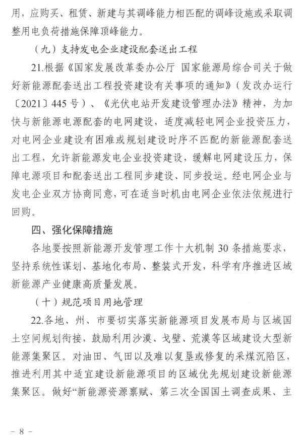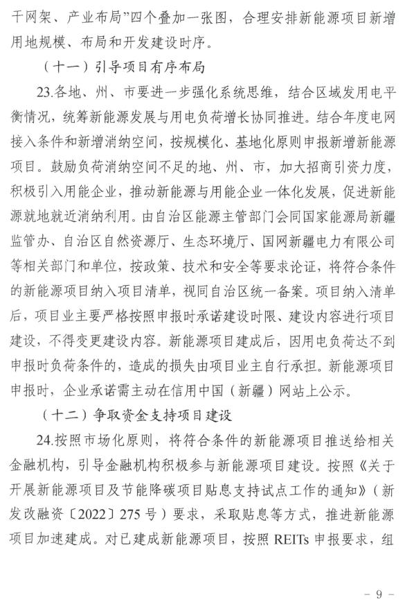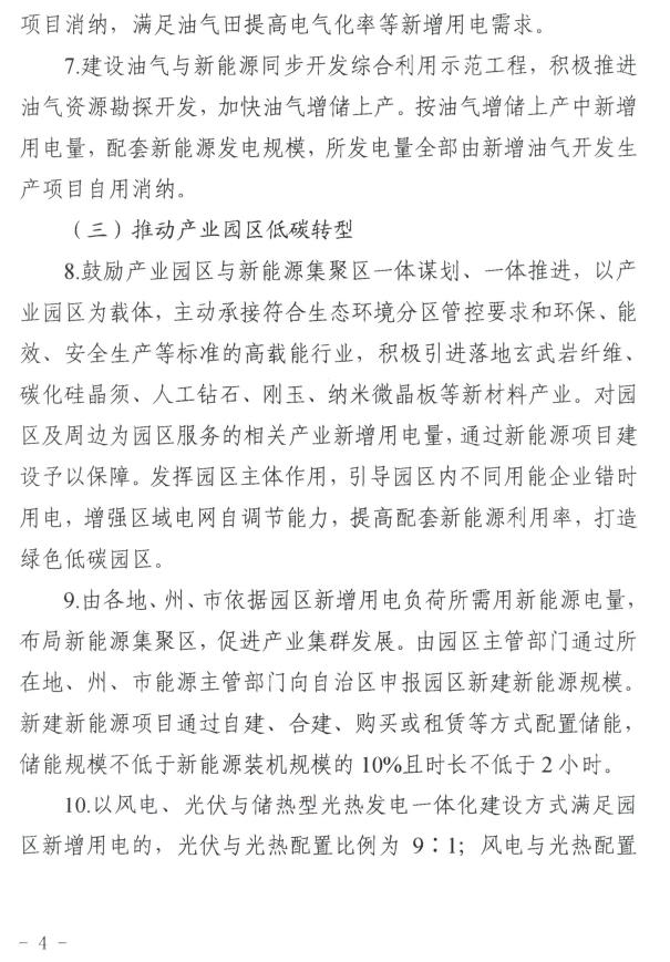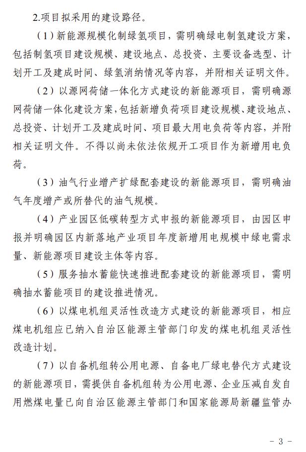 1月30日,新(xin)疆(jiang)維(wei)吾爾自治(zhi)區阿克(ke)蘇地區行政公(gong)署發布《關于地區新(xin)能源產業項目(mu)落地相關政策》,文(wen)件(jian)指出,市場化新(xin)能(neng)源項目(mu)須(xu)根據(ju)擬落地(di)(di)縣(市(shi))新(xin)增用(yong)電負荷及是否具(ju)備與新(xin)建項目(mu)相匹配的電網接(jie)入、項目(mu)用(yong)地(di)(di)等條(tiao)件,確定項目(mu)落地(di)(di)情況。 在新(xin)能(neng)(neng)源(yuan)項(xiang)目(mu)落地(di)路徑方面,文件(jian)明確(que),以(yi)園(yuan)(yuan)區(qu)(qu)(qu)低碳轉型(xing)路徑落地(di)的,由(you)園(yuan)(yuan)區(qu)(qu)(qu)申(shen)報并明確(que)園(yuan)(yuan)區(qu)(qu)(qu)內(nei)新(xin)落地(di)產(chan)業項(xiang)目(mu)年度新(xin)增(zeng)用電(dian)規模中綠電(dian)需求(qiu)量(liang)(liang)、新(xin)能(neng)(neng)源(yuan)項(xiang)目(mu)建設主(zhu)體(ti)等(deng)內(nei)容,新(xin)能(neng)(neng)源(yuan)項(xiang)目(mu)所(suo)發電(dian)量(liang)(liang)全(quan)部由(you)新(xin)增(zeng)負(fu)荷項(xiang)目(mu)進行消(xiao)納。需要強調的事(shi)項(xiang):儲能(neng)(neng)配置規模10%、2小時以(yi)上(shang);新(xin)能(neng)(neng)源(yuan)所(suo)生(sheng)產(chan)電(dian)量(liang)(liang)全(quan)部由(you)園(yuan)(yuan)區(qu)(qu)(qu)新(xin)增(zeng)負(fu)荷消(xiao)納,負(fu)荷退(tui)出(chu)后園(yuan)(yuan)區(qu)(qu)(qu)應(ying)及時增(zeng)補等(deng)量(liang)(liang)新(xin)負(fu)荷保障新(xin)能(neng)(neng)源(yuan)正(zheng)常生(sheng)產(chan)。 以新(xin)(xin)能源規(gui)模化(hua)制氫(qing)路(lu)徑(jing)落地的(de),通過光伏(fu)發電(dian)(dian)電(dian)(dian)解水制氫(qing),所發電(dian)(dian)量由制氫(qing)項目(mu)消納(na);制1萬噸氫(qing)氣(qi)需配置規(gui)模15萬千瓦(wa)光伏(fu)。需要(yao)強調(diao)的(de)事項:1.氫(qing)生產項目(mu)與新(xin)(xin)能源項目(mu)為(wei)同一(yi)主體;2.電(dian)(dian)網消納(na)部(bu)分(fen)按20%、2小(xiao)時配套儲能(電(dian)(dian)網消納(na)部(bu)分(fen)為(wei)獎勵(li)部(bu)分(fen),未按政策要(yao)求(qiu)建成的(de)光伏(fu)氫(qing)項目(mu)不給予上網光伏(fu)規(gui)模獎勵(li));3.項目(mu)生產的(de)綠(lv)氫(qing)須(xu)考慮(lv)下游(you)應用場(chang)景(jing),形成產業鏈閉環。 以共享儲(chu)(chu)能(neng)路徑落地的,通(tong)過谷時在公(gong)網(wang)上充電,峰時向公(gong)網(wang)送電,獲得(de)電價(jia)差(cha)。需要強調的事(shi)項:共享儲(chu)(chu)能(neng)項目不配置新能(neng)源(yuan)裝機規(gui)模;儲(chu)(chu)能(neng)規(gui)模不小(xiao)(xiao)于(yu)5萬千瓦/20千瓦時(4小(xiao)(xiao)時);獨(du)立儲(chu)(chu)能(neng)容量電價(jia)補(bu)償(chang)不含租賃部分(fen)容量。 其他路徑(jing)落地(di)的,抽(chou)水蓄能(neng)(neng)路徑(jing)分批申報(bao)配套新能(neng)(neng)源規(gui)模,需(xu)配套建(jian)設(she)申報(bao)規(gui)模20%且小(xiao)不(bu)于2小(xiao)時的儲(chu)能(neng)(neng);在抽(chou)水蓄能(neng)(neng)項目建(jian)成時一(yi)次申報(bao)新能(neng)(neng)源規(gui)模的,無(wu)需(xu)配置儲(chu)能(neng)(neng)。建(jian)設(she)抽(chou)水蓄能(neng)(neng)項目需(xu)根據地(di)區地(di)質水文(wen)條件科學規(gui)劃,項目業主公開招(zhao)投(tou)標確定(ding)。油(you)氣行(xing)(xing)業增產擴綠、煤(mei)電機(ji)組(zu)靈活改(gai)造、自備(bei)電廠轉公用電源、自備(bei)電廠綠電替代、發電企(qi)業建(jian)設(she)配套送出工程路徑(jing),一(yi)般由投(tou)產運行(xing)(xing)企(qi)業自行(xing)(xing)申報(bao)實施,招(zhao)商合作空間小(xiao)。 全文(wen)如下: 關于地區新能源產業項目落(luo)地相關政(zheng)策 根(gen)據(ju)自治區(qu)發(fa)(fa)改(gai)(gai)委《關于加快推進(jin)新(xin)(xin)能源(yuan)(yuan)及關聯(lian)產業協同發(fa)(fa)展的(de)(de)通知》(新(xin)(xin)發(fa)(fa)改(gai)(gai)規〔2023〕2號)、關于印發(fa)(fa)《新(xin)(xin)能源(yuan)(yuan)項(xiang)目(mu)申報程序及要(yao)求》的(de)(de)通知等文件要(yao)求,市場(chang)化新(xin)(xin)能源(yuan)(yuan)項(xiang)目(mu)須根(gen)據(ju)擬落(luo)地(di)縣(xian)(市)新(xin)(xin)增用電負荷及是(shi)否(fou)具備與新(xin)(xin)建(jian)項(xiang)目(mu)相匹配的(de)(de)電網接入、項(xiang)目(mu)用地(di)等條件,確(que)定項(xiang)目(mu)落(luo)地(di)情況(kuang)。 一、新能源項目落(luo)地條(tiao)件(jian) (一)具備新(xin)能(neng)源(yuan)項(xiang)(xiang)目(mu)引(yin)進條件。各縣(市)根(gen)(gen)據(ju)已建成新(xin)能(neng)源(yuan)項(xiang)(xiang)目(mu)、在建項(xiang)(xiang)目(mu)、新(xin)布局項(xiang)(xiang)目(mu)情況(kuang)和220KV及以下電(dian)網接入(ru)點(dian)、接入(ru)容量,排除生(sheng)態紅線等限制性因素,形成縣(市)適宜新(xin)能(neng)源(yuan)項(xiang)(xiang)目(mu)開發“一張圖”,根(gen)(gen)據(ju)當地開發條件招(zhao)引(yin)新(xin)能(neng)源(yuan)項(xiang)(xiang)目(mu)。 (二)具備項目(mu)(mu)承(cheng)接“標(biao)準地(di)”。各縣(xian)(市)根據現有“標(biao)準地(di)”情況,確定擬引進(jin)新能源(yuan)項目(mu)(mu)建(jian)設(she)規模(mo)。在(zai)現行技術條件下,承(cheng)接1GW光伏發電項目(mu)(mu)需要3萬畝左(zuo)右(you)“標(biao)準地(di)”。 (三(san))具(ju)備新增(zeng)用(yong)(yong)電(dian)(dian)負荷消納端(duan)。各縣(市(shi))根據(ju)新建(jian)(jian)用(yong)(yong)電(dian)(dian)項(xiang)目用(yong)(yong)電(dian)(dian)量(新增(zeng)負荷)申請新能源項(xiang)目規模。計劃引(yin)進的市(shi)場化新能源項(xiang)目,須明確新建(jian)(jian)用(yong)(yong)電(dian)(dian)項(xiang)目的建(jian)(jian)設(she)規模、建(jian)(jian)