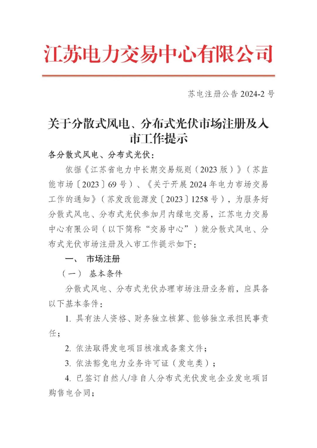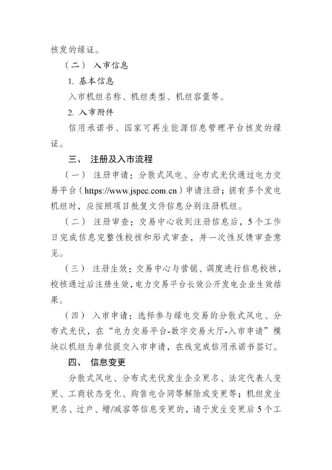 日前,江蘇電力交易中心發布關于分散式風電、分布式光伏市場注冊及入市工作提示。分散式風電、分布式光伏辦理市場注冊業務前,應具備以下基本條件: 1.具有法人資格、財務獨立核算、能夠獨立承擔民事責任;2.依法取得發電項目核準或各案文件;3.依法豁免電力業務許可證(發電類);4.已簽訂自然人/非自人分布式光伏發電企業發電項目購售電合同;5.已簽訂新能源場站并網調度協議(僅指6千伏及以上并網的分布式電源);6.法律、法規規定的其他條件。