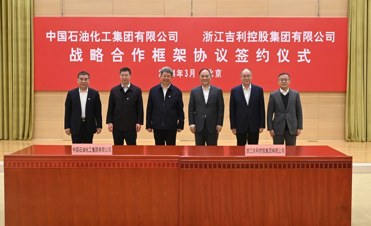3月9日,吉利控股集團與中國石油化工集團在北京簽署戰略合作框架協議。中國石化集團公司董事長、黨組書記馬永生會見了吉利控股集團董事長李書福、副董事長楊健一行,并共同見證簽約。根據協議,雙方將深化綠色甲醇在內的多領域合作,助力打造穩定可靠、競爭力強的現代化產業鏈體系,以新質生產力,共同推動中國能源企業和汽車產業轉型升級,為中國式現代化建設貢獻力量。