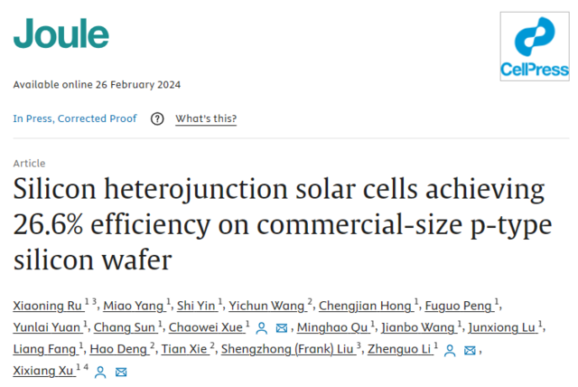 隆基徐希翔、李振國團隊在P型硅片上實現26.6%的異質結電池效率2024-03-13 13:19來源:gessey瀏覽數:231次