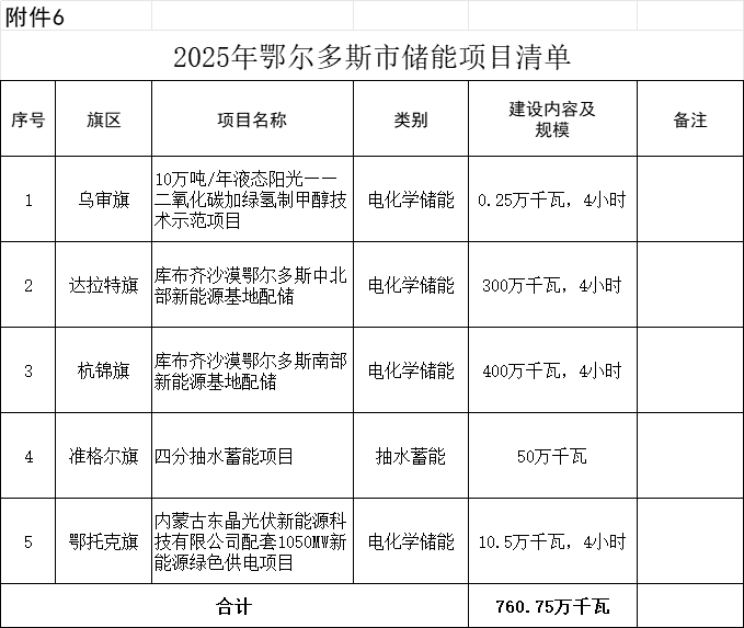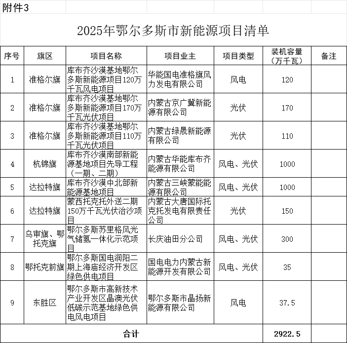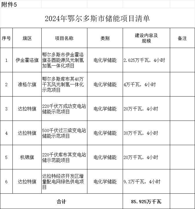 日前,鄂爾多斯市人民政府發布關于印發《鄂爾多斯市新能源發展行動方案(2024—2025年)》(以下簡稱《方案》)的通知。 《方案》明確,全市新能源項目并網規模逐年倍增,2024年并網總規模超2400萬千瓦,建成儲能200萬千瓦、綠氫產能規模11.8萬噸。2025年并網總規模超過5000萬千瓦,建成儲能600萬千瓦、綠氫產能規模20萬噸。 詳情如下: 鄂爾多斯市人民政府關于印發新能源發展行動方案(2024—2025年)的通知 各旗區人民政府,市人民政府各部門,各直屬單位,各大企事業單位: 《鄂爾多斯市新能源發展行動方案(2024—2025年)》已經市人民政府2023年第26次常務會議審議通過,現印發給你們,請結合實際,認真組織實施。 鄂爾多斯市人民政府 2024年2月1日 鄂爾多斯市新能源發展行動方案 (2024—2025年) 為深入貫徹落實習近平總書記關于內蒙古重要講話和重要指示批示精神,鄂爾多斯市依托豐富的新能源資源、沙漠治理的成功經驗和良好的產業基礎,統籌能源資源開發和生態保護,以生態治理、防沙治沙為切入點,以構建世界級能源產業為目標,實現全市新能源并網規模逐年倍增。根據實際,制定本方案。 一、發展基礎 (一)新能源可開發潛力巨大。我市擁有超4.33萬平方千米荒漠化土地,涵蓋庫布齊沙漠和毛烏素沙地大部,建設新能源基地潛力巨大。經測算,除已建、在建和已規劃新能源基地外,全市還有新能源開發潛力超2.4億千瓦,其中光伏可開發規模約2億千瓦、風電可開發規模約4000萬千瓦。若考慮光伏治沙助力生態治理修復的效果,在生態紅線內探索開展新能源+生態治理試點示范,庫布齊沙漠地區還具備開發1.4億千瓦新能源的潛力。 (二)水資源能夠滿足生態治理需求。我市地處西北缺水地區,全市水資源總量28.6億立方米,可利用量22.5億立方米,用水量16.9億立方米。全市剩余水資源可利用量能夠滿足新能源基地開發建設、生態治理及新能源制氫用水需求。 (三)具備豐富的防沙治沙經驗。全市積極探索新能源產業與沙漠生態治理、現代農牧業有機結合,創造形成了具有庫布齊特色的光伏治沙模式。蒙西基地庫布齊200萬千瓦光伏治沙項目已并網發電,是全國單體規模最大的光伏治沙基地項目。 (四)火電支撐電源充足、新能源裝機快速增加。截至2023年底,全市電力總裝機4599萬千瓦。其中火電裝機3559萬千瓦、占總裝機的77.4%,可再生能源裝機1040萬千瓦、占總裝機的22.6%。近年來,全市加快推動新能源產業發展,正逐步成為國家千萬千瓦級大型風電光伏基地之一,先后有5個項目納入國家“沙戈荒”大基地清單,總規模達3400萬千瓦,均規劃在“十四五”期間投產。 (五)已形成較為堅強的外送和本地電網。我市已建成較為堅強的骨干電網和輸配網絡,形成以500千伏變電站為中心,以220千伏為主的輻射狀供電網架結構,具備支撐較大規模新能源接入的基礎條件;已建成上海廟至山東特高壓直流、蒙西至天津南(及蒙西至晉中)特高壓交流2回“點對網”特高壓外送通道,合計設計輸電能力1800萬千瓦;推動蒙西至京津冀直流輸電通道和庫布齊至上海直流輸電通道建設。 (六)產業基礎雄厚,消納條件良好。我市作為國家4個現代煤化工產業示范區之一,是國內門類最全、規模最大的現代煤化工試驗示范項目集中區,已形成煤制油氣、煤制甲醇烯烴、煤制乙二醇、煤基新材料等多條產業鏈,年產能近2000萬噸。近年來,全市不斷聚焦新能源裝備制造產業,著力推動“風光氫儲車”五大產業全產業鏈發展。截至2023年底,已形成風電裝備5GW、單晶拉棒25GW、硅片23GW、光伏組件11.5GW、動力及儲能電池10.5GWh、氫燃料電池系統超萬套、新能源汽車4萬輛的生產能力。 二、行動目標 全市新能源項目并網規模逐年倍增,2024年并網總規模超2400萬千瓦,建成儲能200萬千瓦、綠氫產能規模11.8萬噸。2025年并網總規模超過5000萬千瓦,建成儲能600萬千瓦、綠氫產能規模20萬噸。 (一)建成外送與自用并舉的新能源大基地。建成新能源項目5000萬千瓦以上,其中外送新能源基地3430萬千瓦、就地消納新能源基地1500萬千瓦。 (二)建成堅強靈活可靠的電力支撐體系。新增1條鄂爾多斯市至中東部負荷中心的外送通道。實施本地電網補強工程,建成田字形500千伏主干網絡。加快新型儲能建設,裝機規模達到600萬千瓦(儲能時長4小時及以上)。 (三)實現綠色能源替代和綠色產業轉型“雙升級”。建成零碳示范園區1至2個,低碳示范園區2至4個。建成20萬噸/年化工綠氫替代工程、520公里級純氫輸送管網工程。 (四)實現庫布齊沙漠和毛烏素沙地治理效果“雙提升”。庫布齊沙漠新能源治沙面積達150萬畝以上,完成毛烏素沙地治理,全市風沙危害與水土流失基本得到控制。 三、主要任務 (一)穩步提升新能源自用規模 1.推動跨地區合作新能源消納項目建設。對新能源、用電負荷涉及其它省、直轄市和盟市的項目,由合作地所在旗區與涉及的省、直轄市和盟市制定長期合作方案,并在方案簽訂前報市人民政府審定。加快制定鄂爾多斯市新能源項目建設跨區域合作實施意見,針對我市境內新能源、用電負荷分屬不同旗區的市場化新能源項目,提出“園中園”“共管”“托管”“孵化”4種合作模式,同時在用地、用能、資金、機制方面給予政策保障,實現生態價值、稅收、能耗指標、科技成果和產業價值分享。(責任單位:各旗區人民政府,市能源局